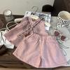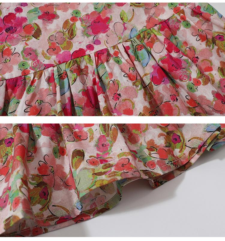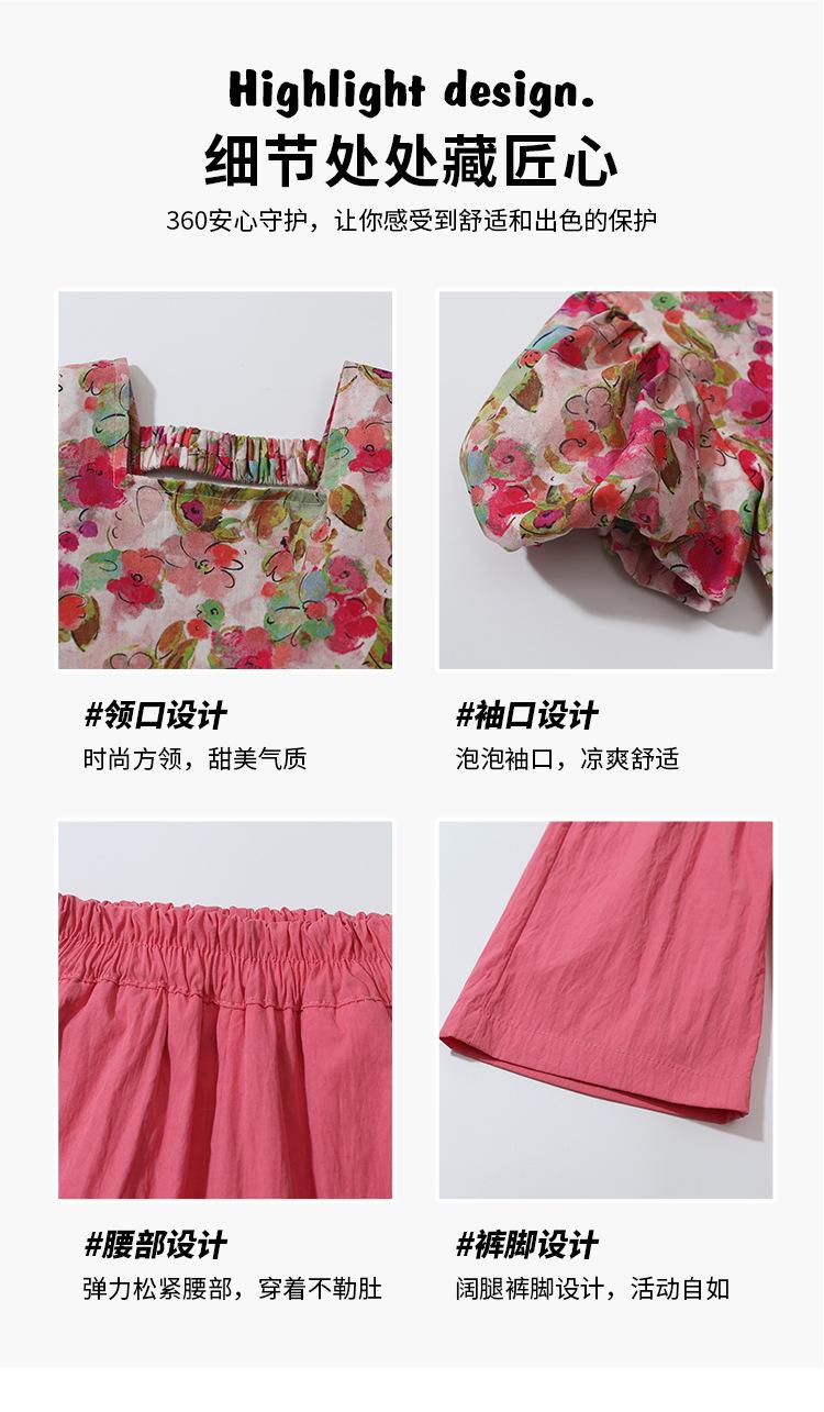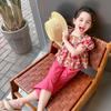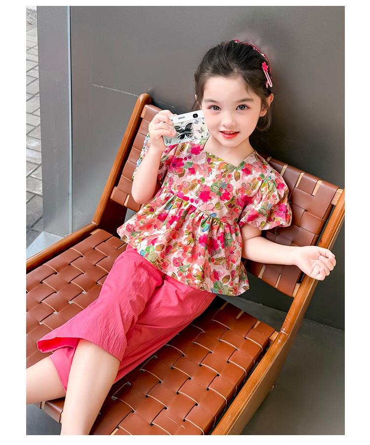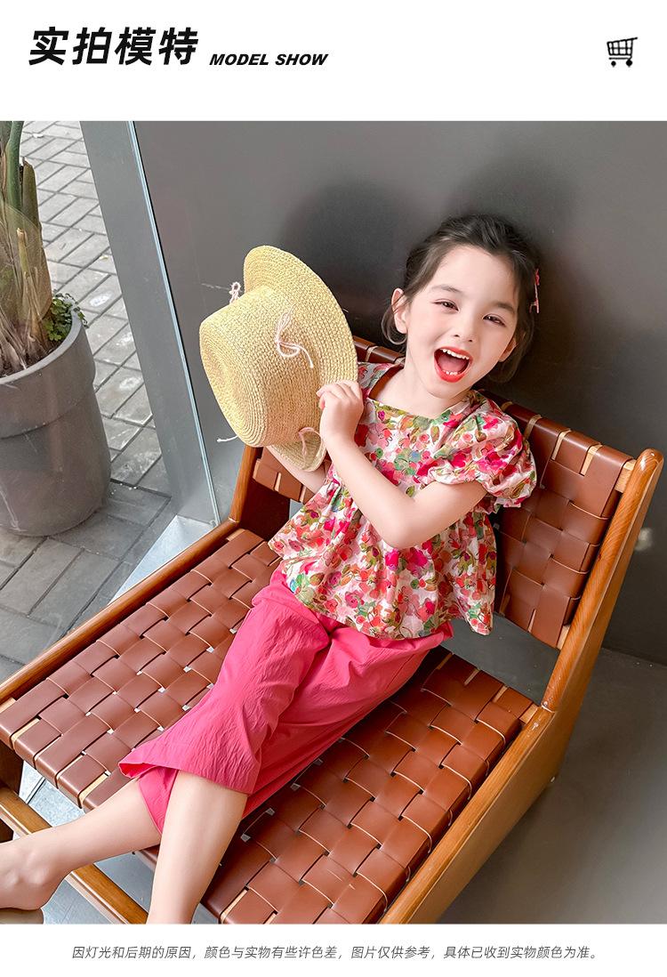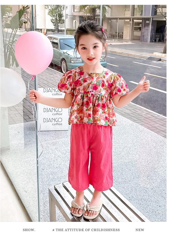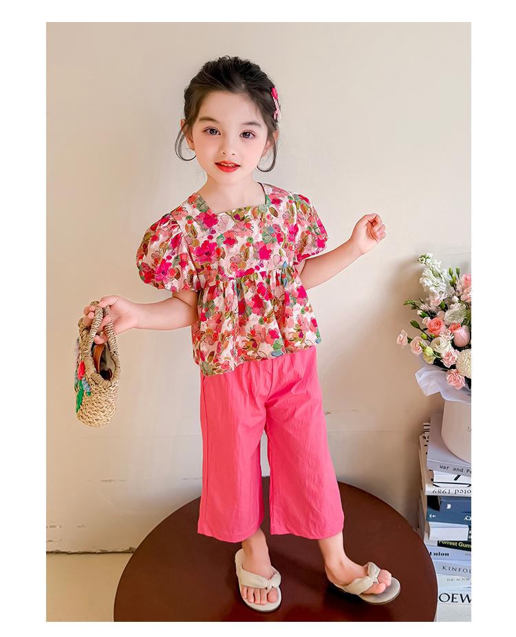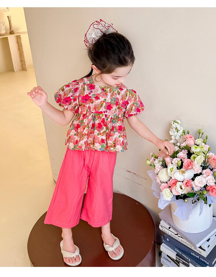 Traje de Verano para Niñas 2025 Nuevo Niña Pequeña Moda Coreana Camisa de Muñeca Floral Moderna Pantalones de Pierna Ancha Conjunto Casual de Dos Piezas
