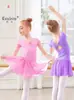 Ropa de Danza para Niñas, Ropa de Práctica de Verano para Niñas, Mangas Cortas Volantes, Falda Tutú de Ballet, Falda de Ropa de Práctica para Niñas Pequeñas de Danza China