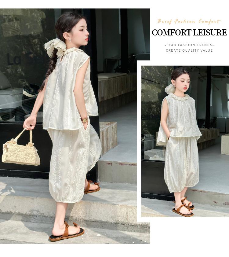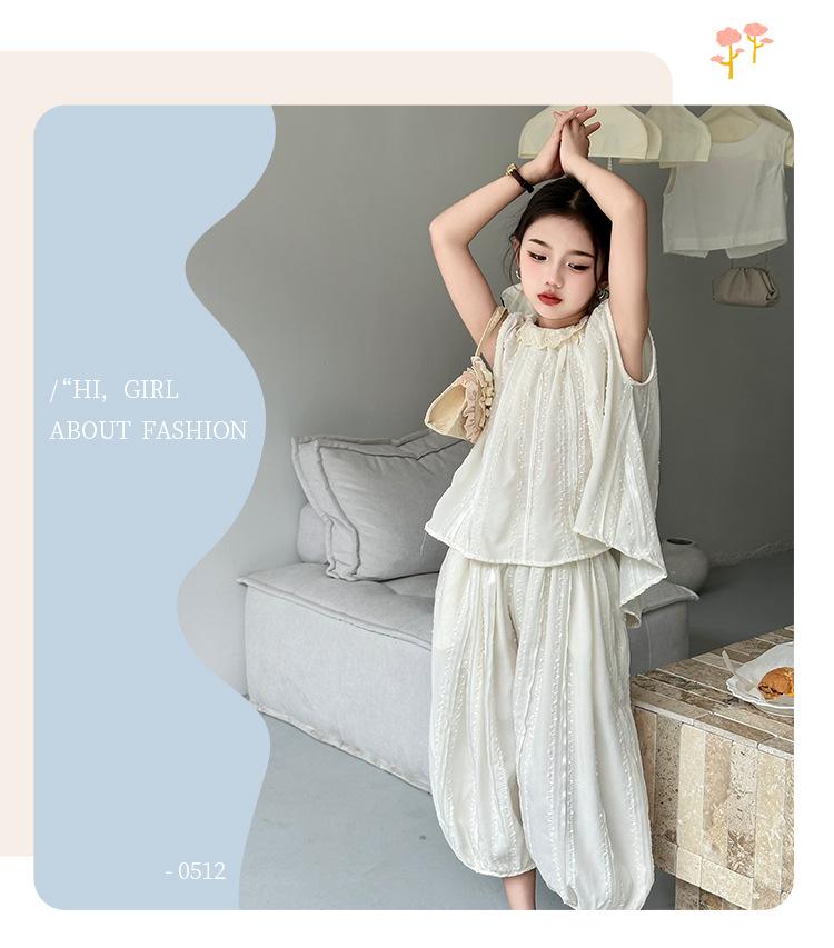 Traje de Verano para Niñas 2025 Nueva Moda Niña a la Moda Verano Sin Mangas Pantalones Casuales para Niños Conjunto de Dos Piezas Moderno