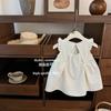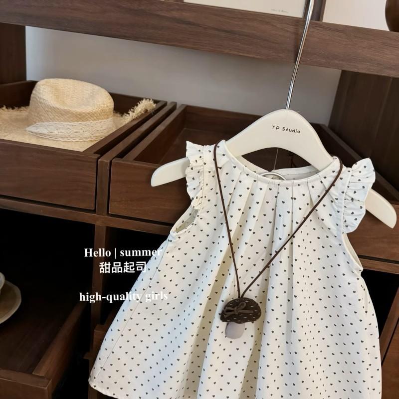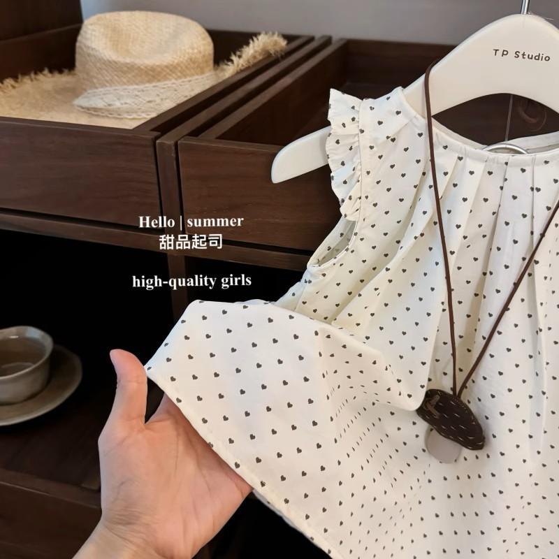 2025 Ropa Infantil Coreana Linda Bebé Niña Verano Nuevo Estilo Lunares Manga Volante Chaleco Vestido de Princesa