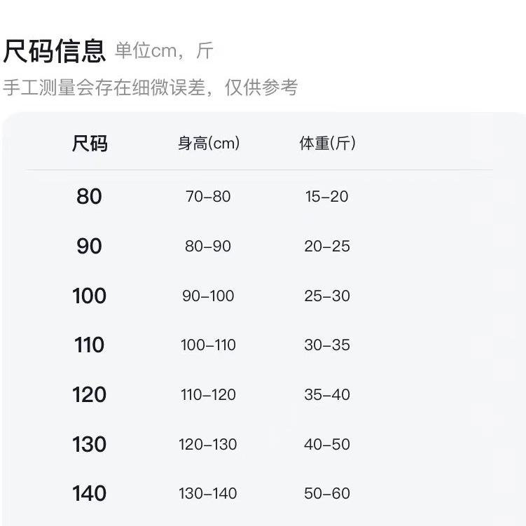 Children (3~8 years old, 100~140cm)