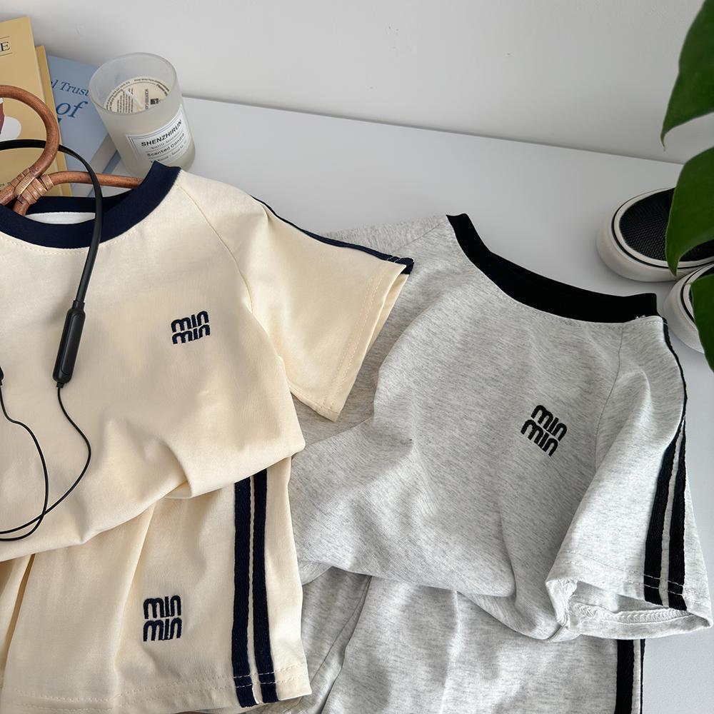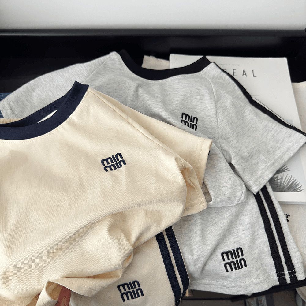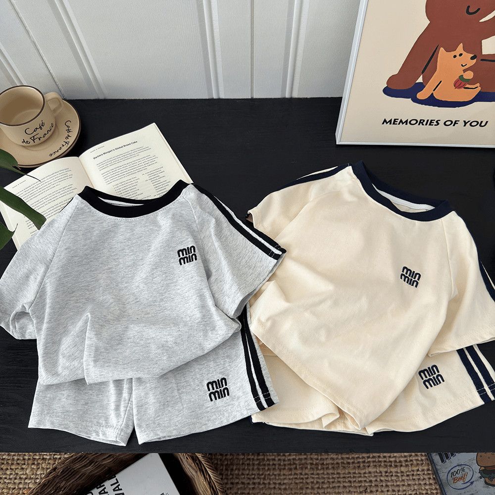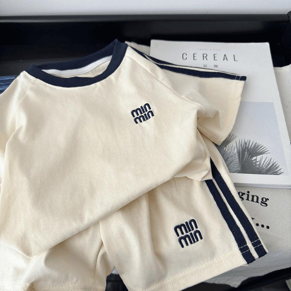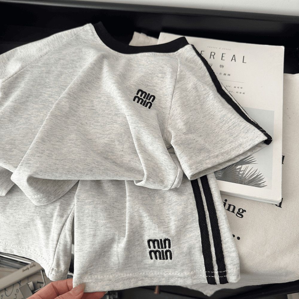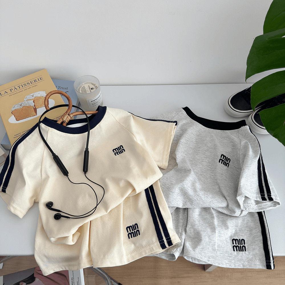 Verano Nueva Camiseta Infantil Estilo Coreano Traje de Manga Corta para Niños y Niñas Conjunto de Dos Piezas Casual Holgado para Niños