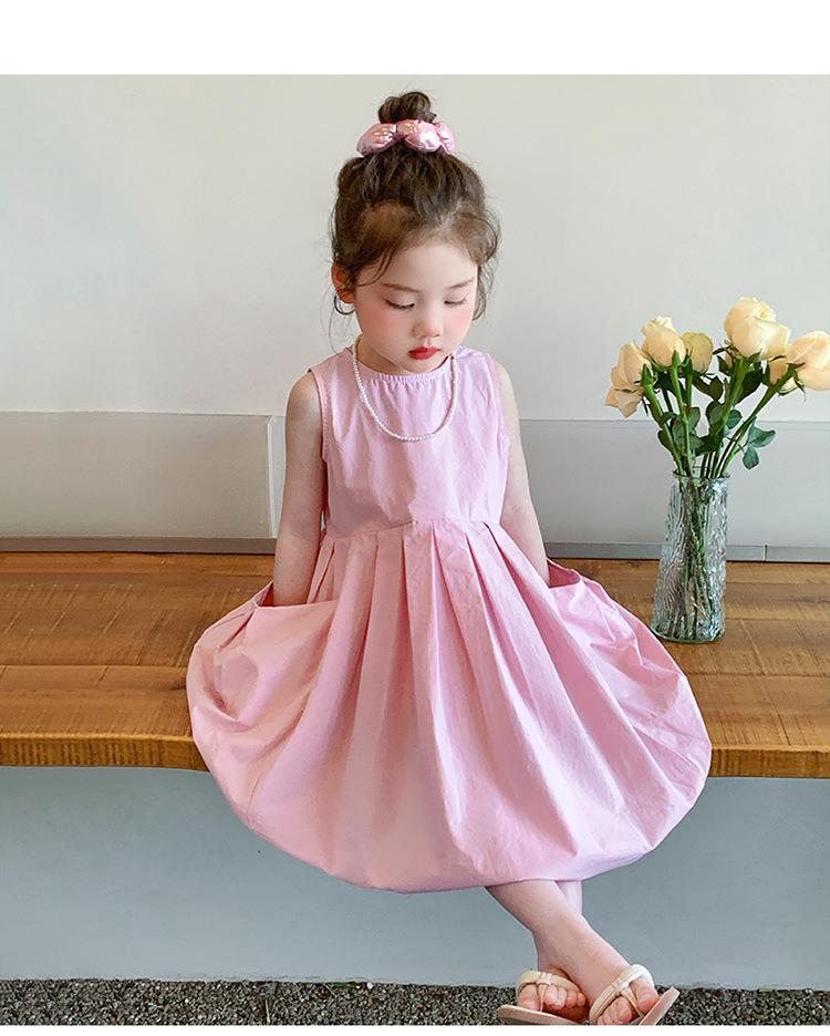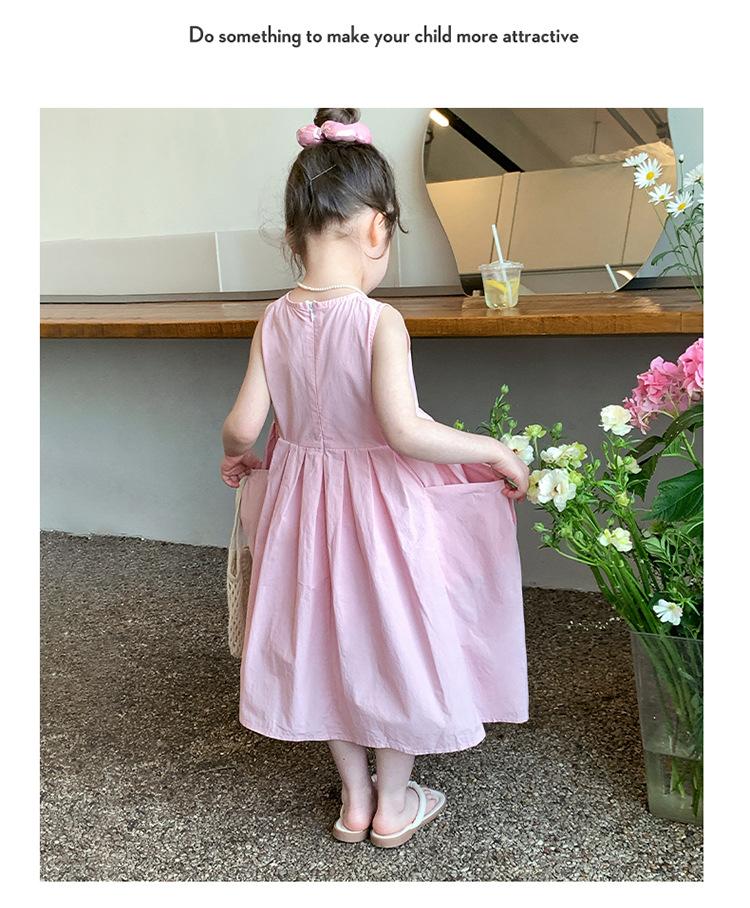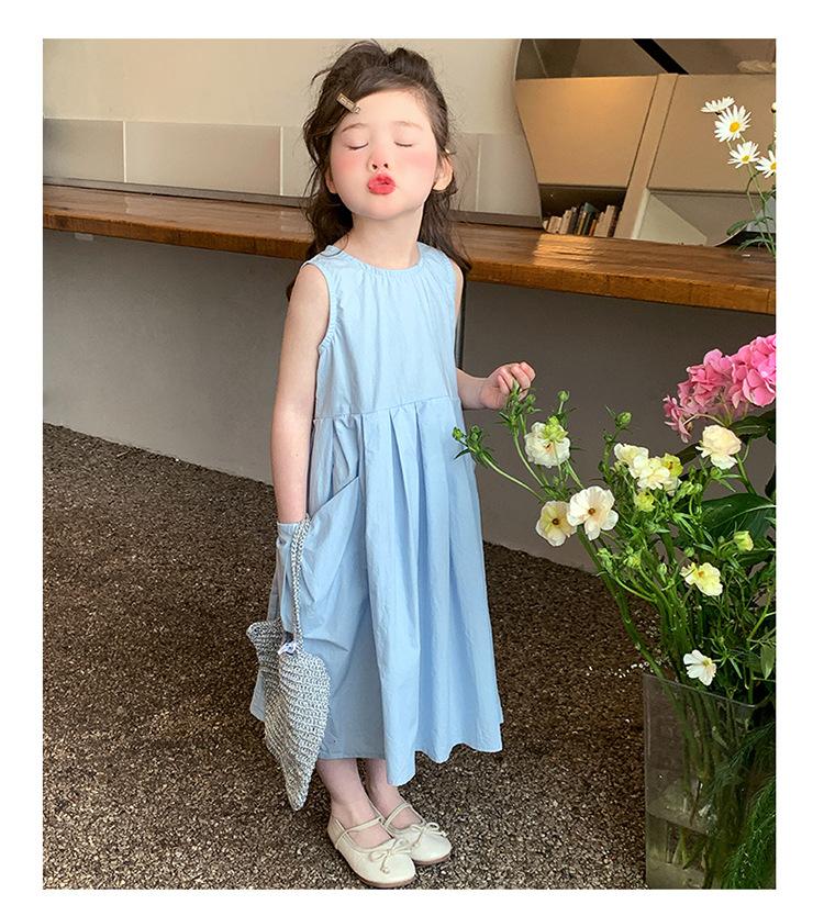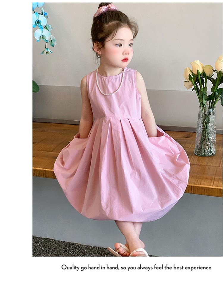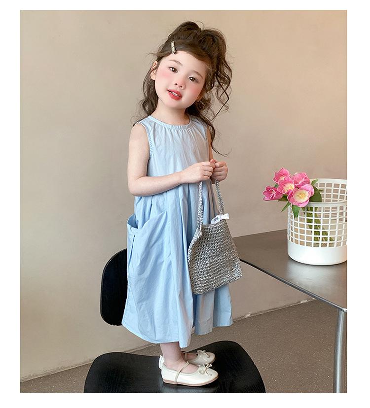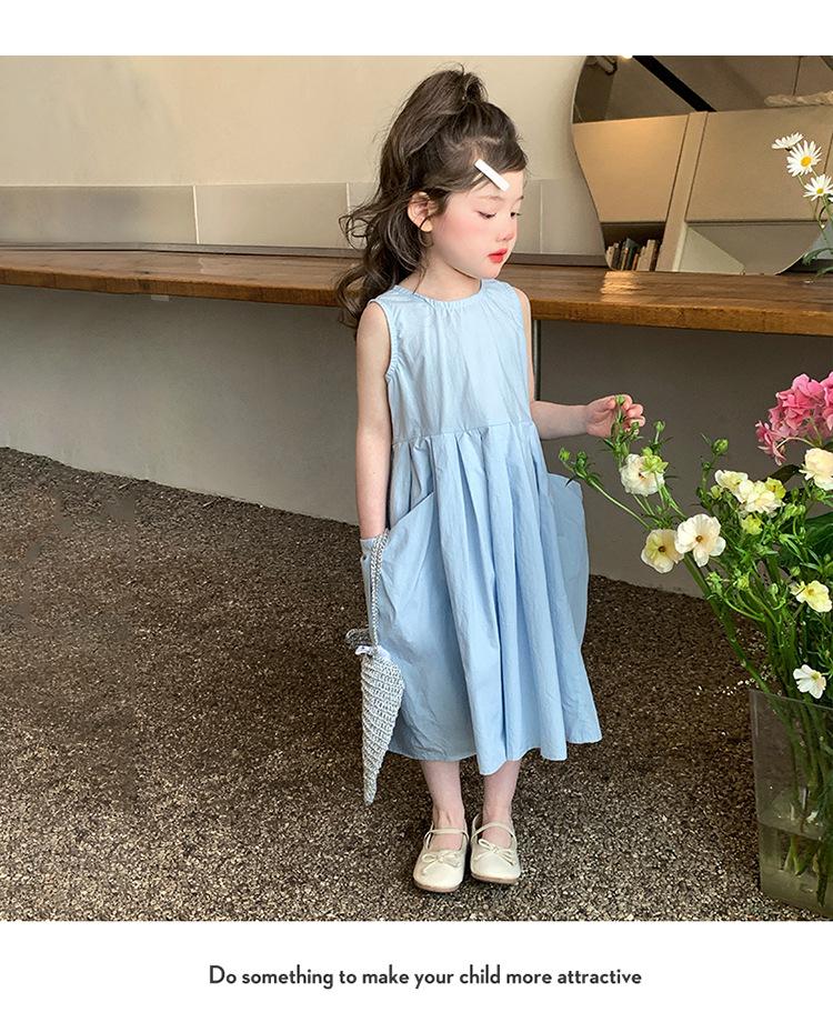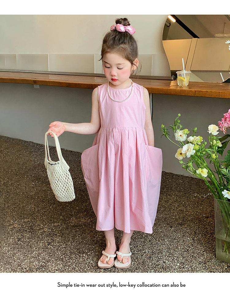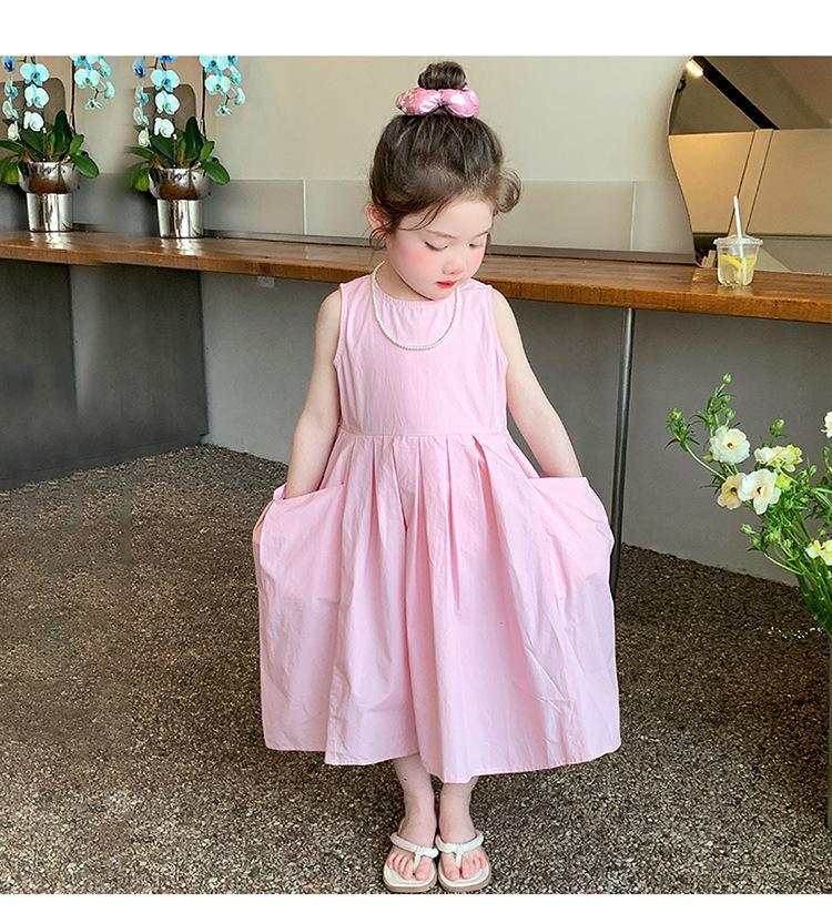 Vestido de niña de color sólido con bolsillo grande 2025 Verano Nueva Moda Vestido de princesa elegante para niña Vestido de verano para niños