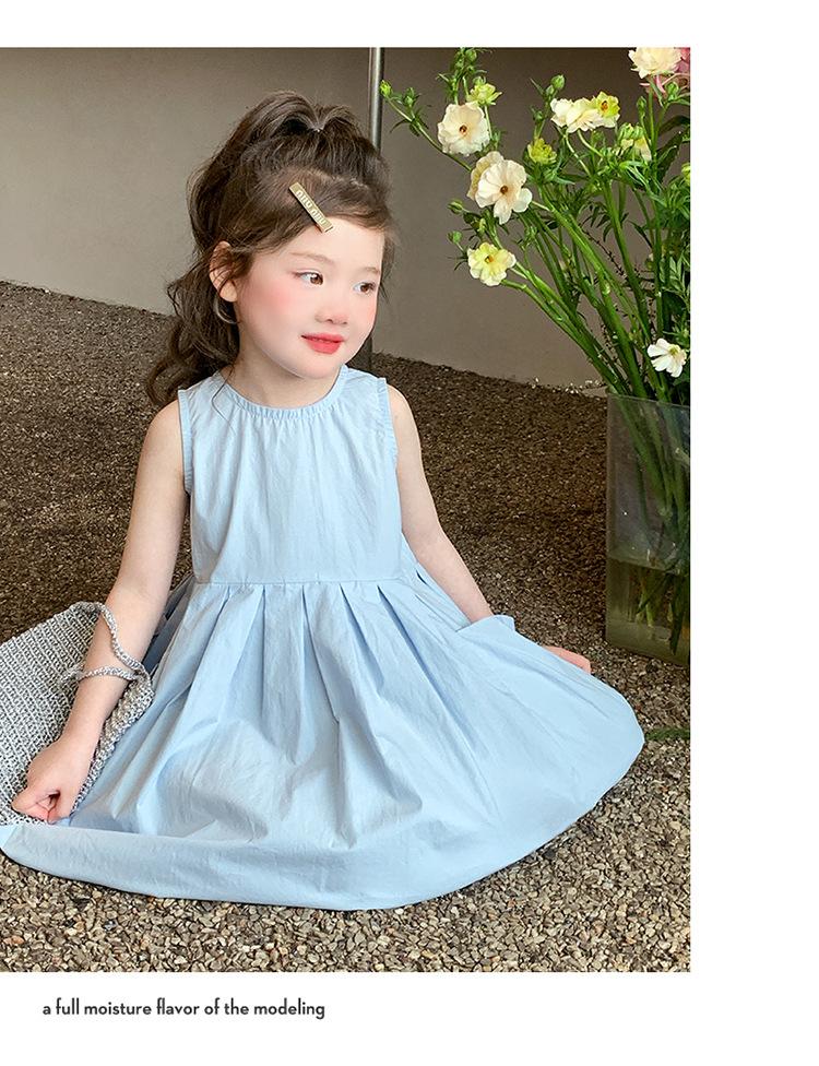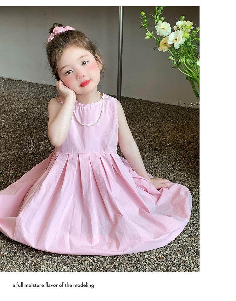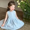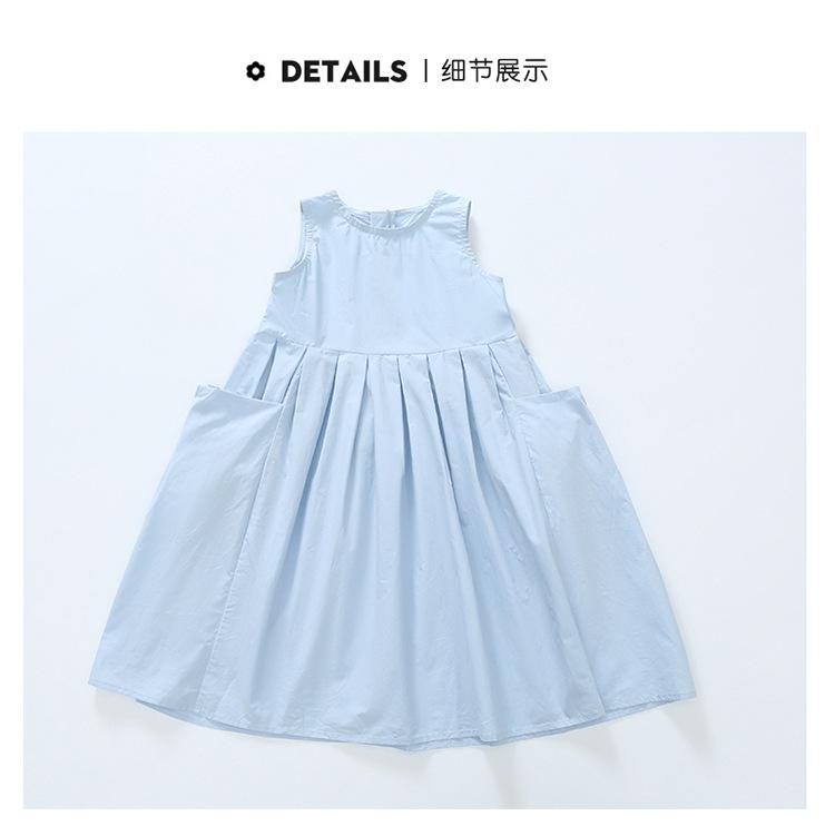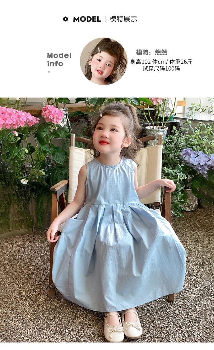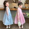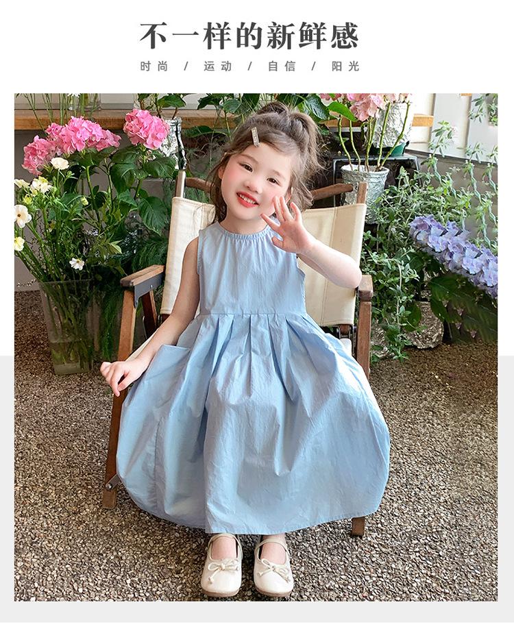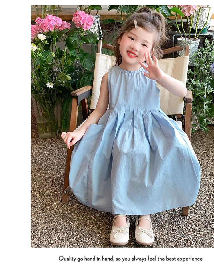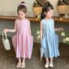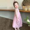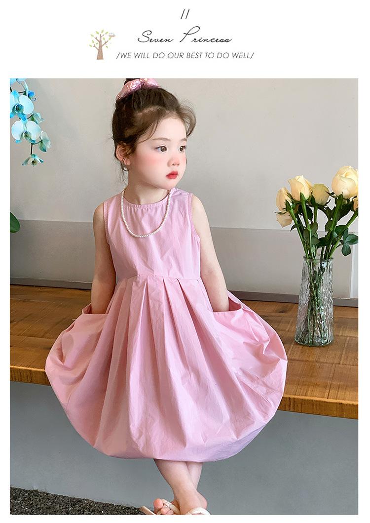 Vestido de niña de color sólido con bolsillo grande 2025 Verano Nueva Moda Vestido de princesa elegante para niña Vestido de verano para niños