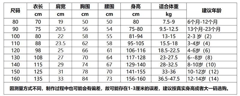 100cm, 110cm, 120cm, 130cm, 140cm, 150cm