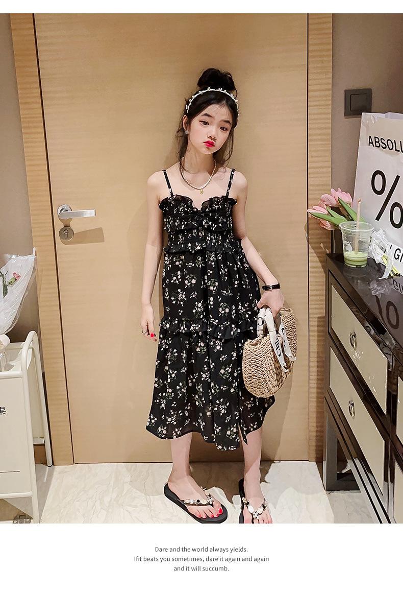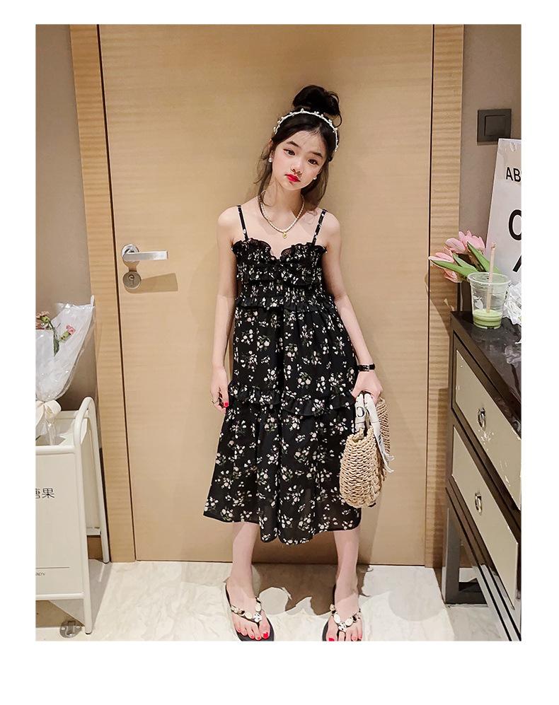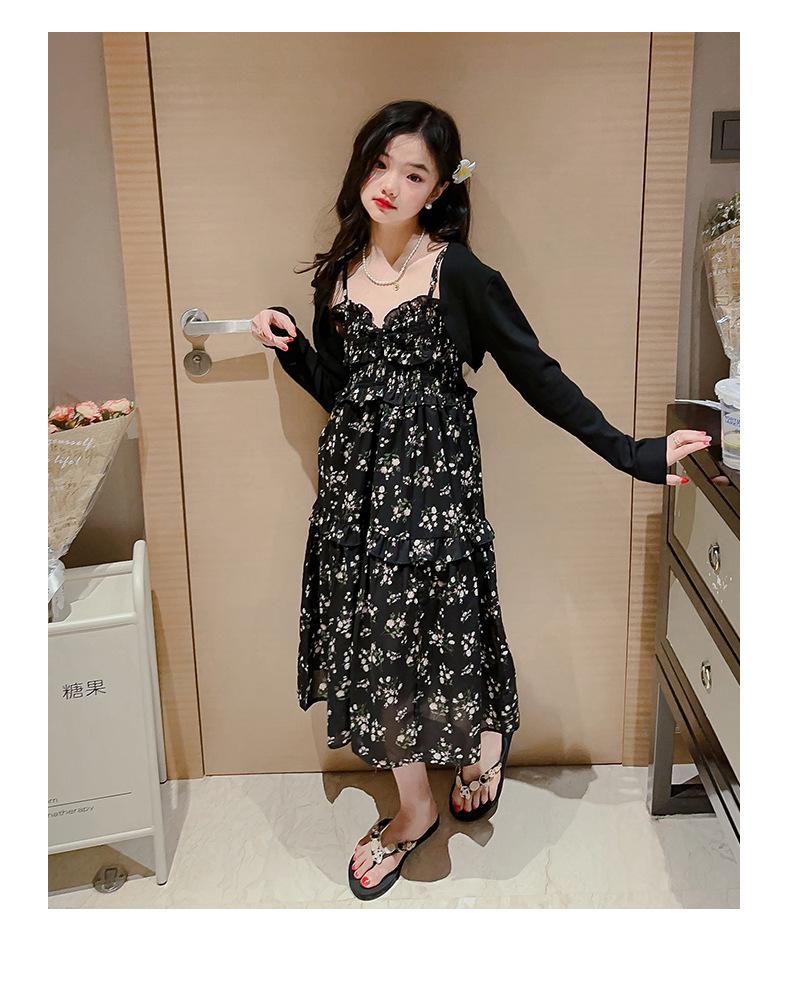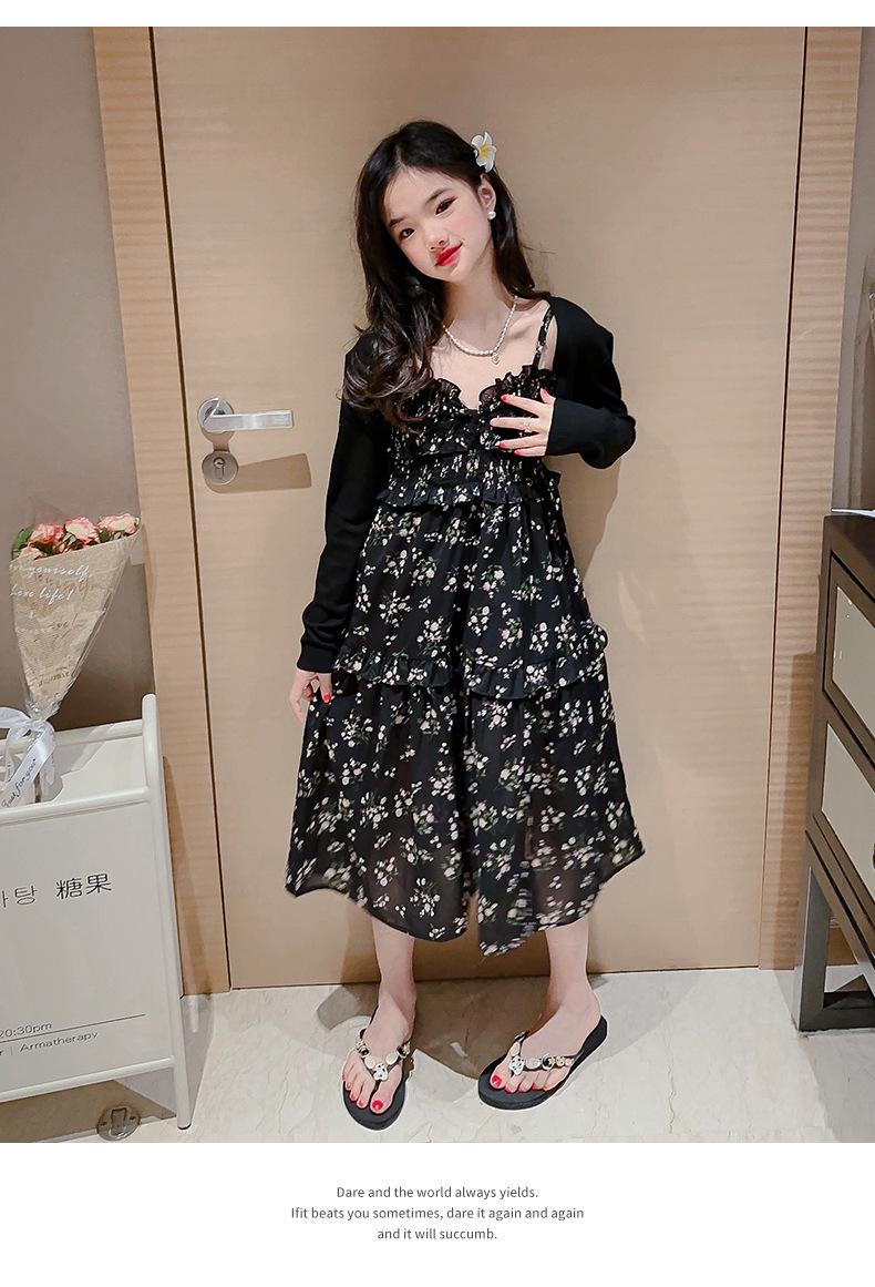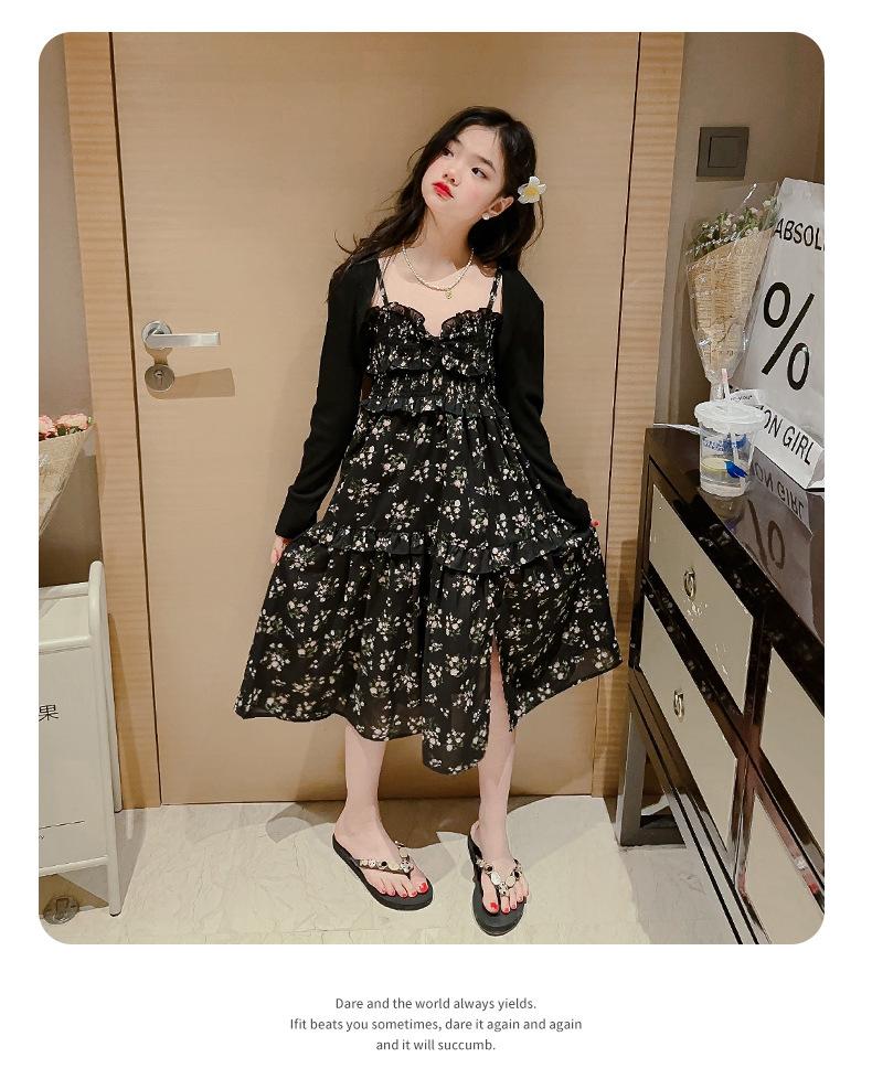Traje de Vestido de Verano para Niñas 2024 Nuevo Estilo Abrigo Chal Estilo Occidental Verano para Niños Falda Slip Floral de Dos Piezas Ropa para Niños