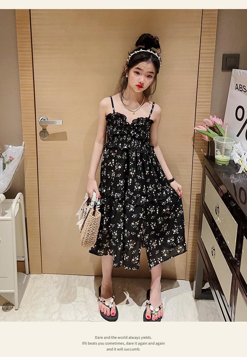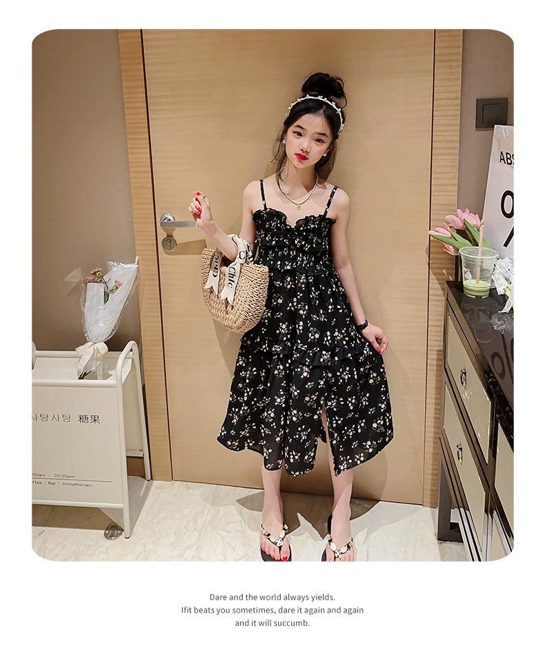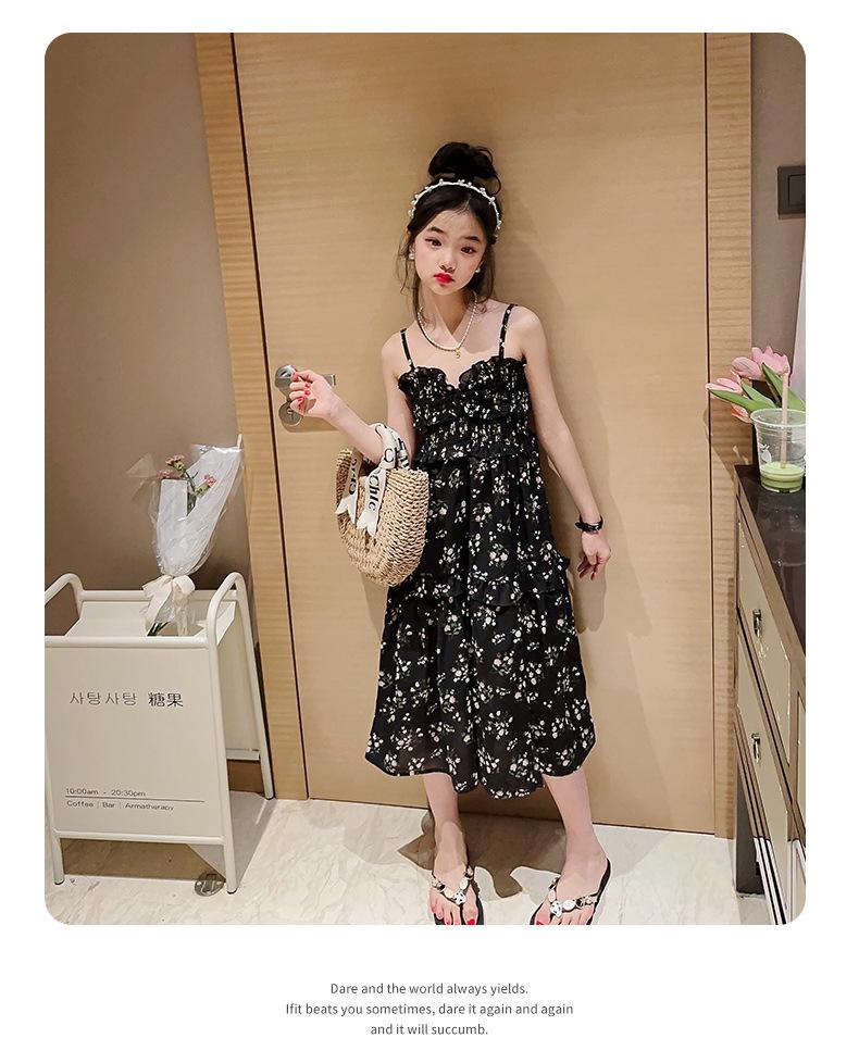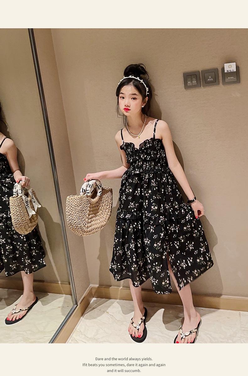 Traje de Vestido de Verano para Niñas 2024 Nuevo Estilo Abrigo Chal Estilo Occidental Verano para Niños Falda Slip Floral de Dos Piezas Ropa para Niños