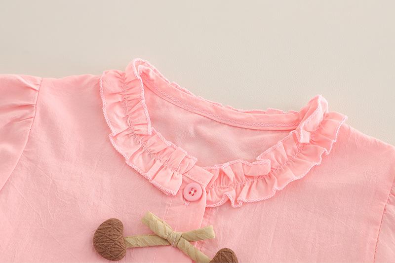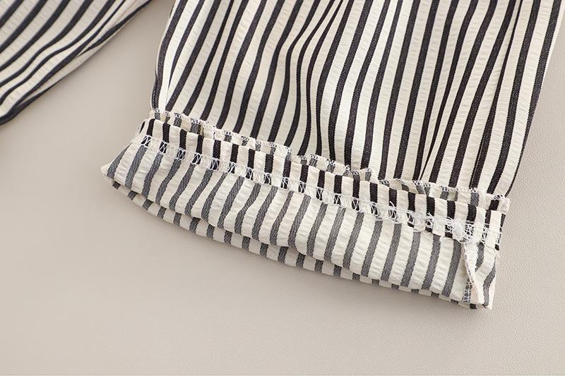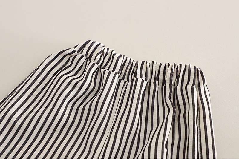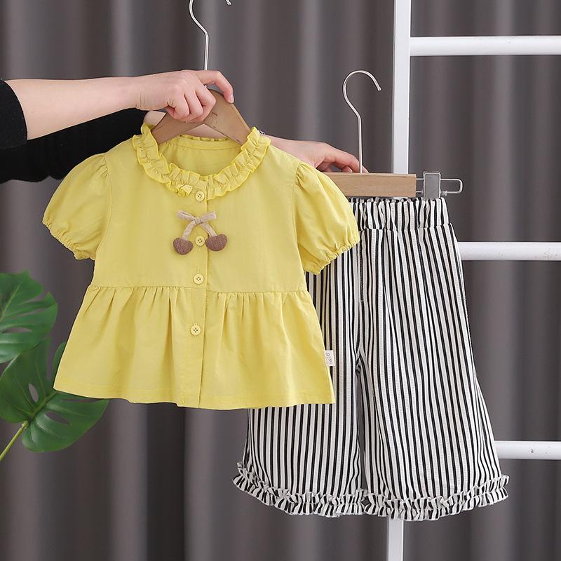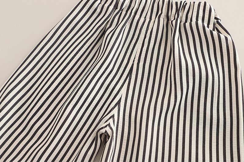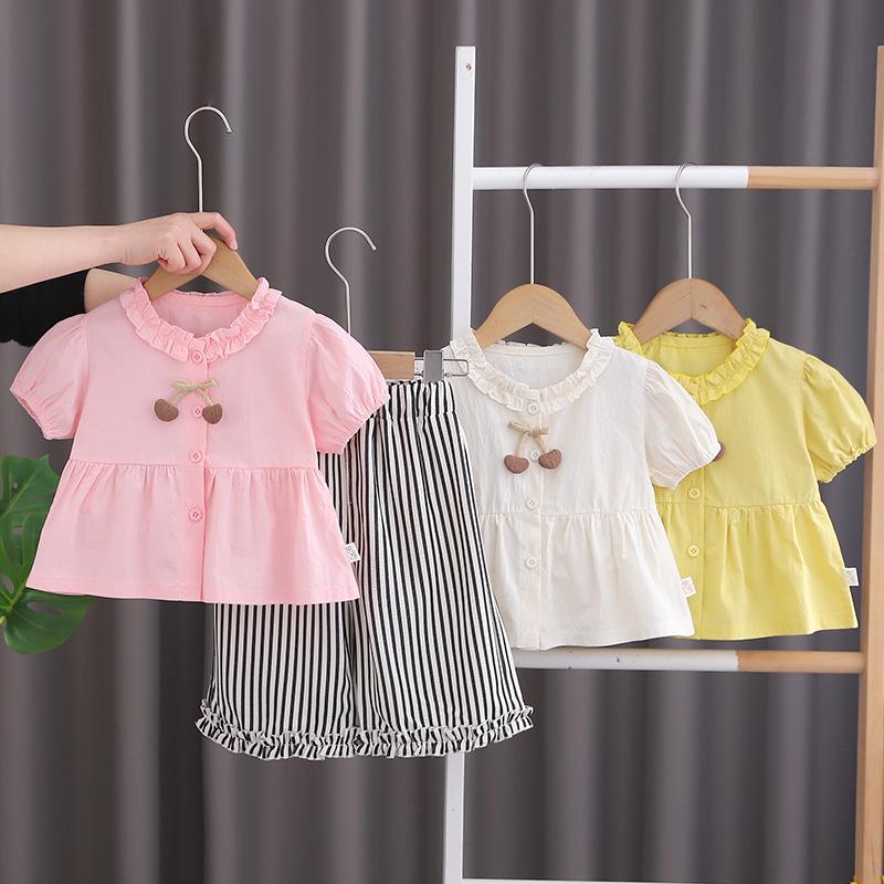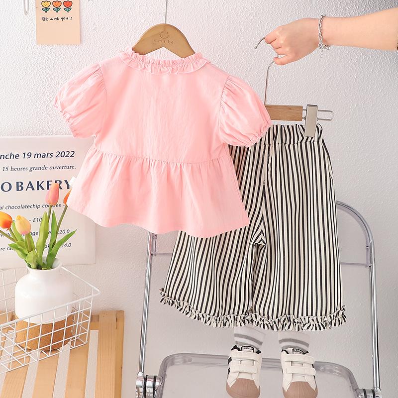 Vestido Delgado de Verano para Bebé Niña 2025 Nuevo Traje de Encaje con Corazón de Manga Corta para Niña Pantalones de Rayas Verticales a la Moda para Niña