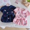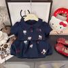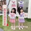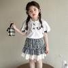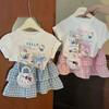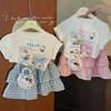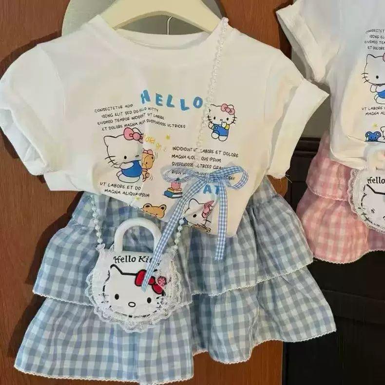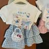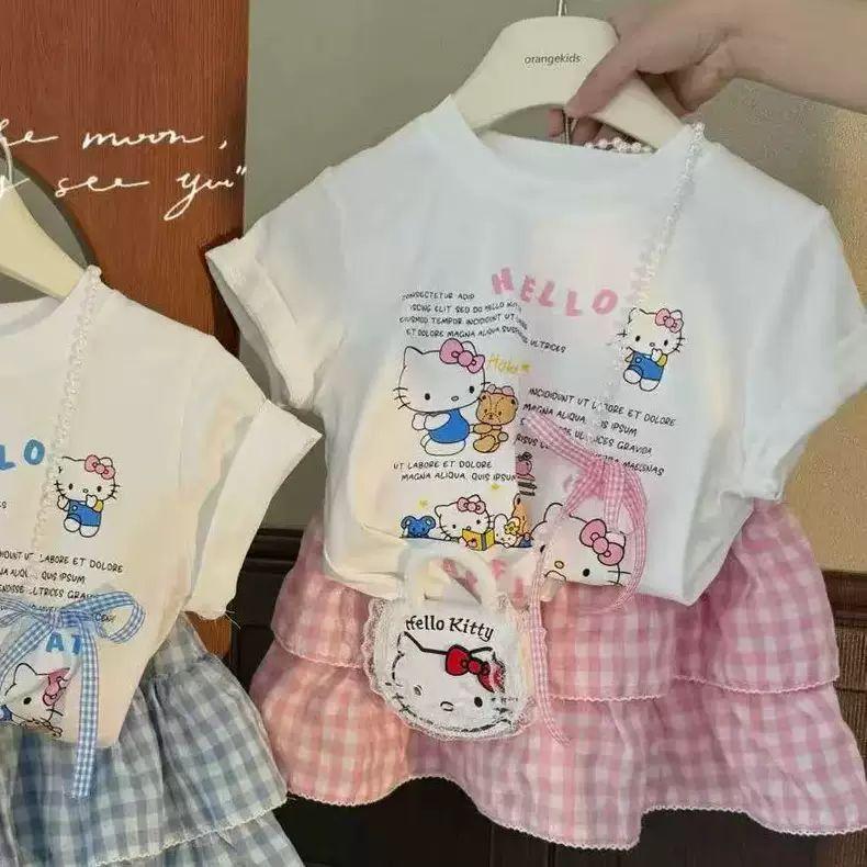 Niñas 2025 Verano Bebé Niña Dibujos Animados Kt Cat Camiseta de Manga Corta Pantalones a Cuadros Falda Estilo Coreano Estilo Occidental Princesa Conjunto de Dos Piezas