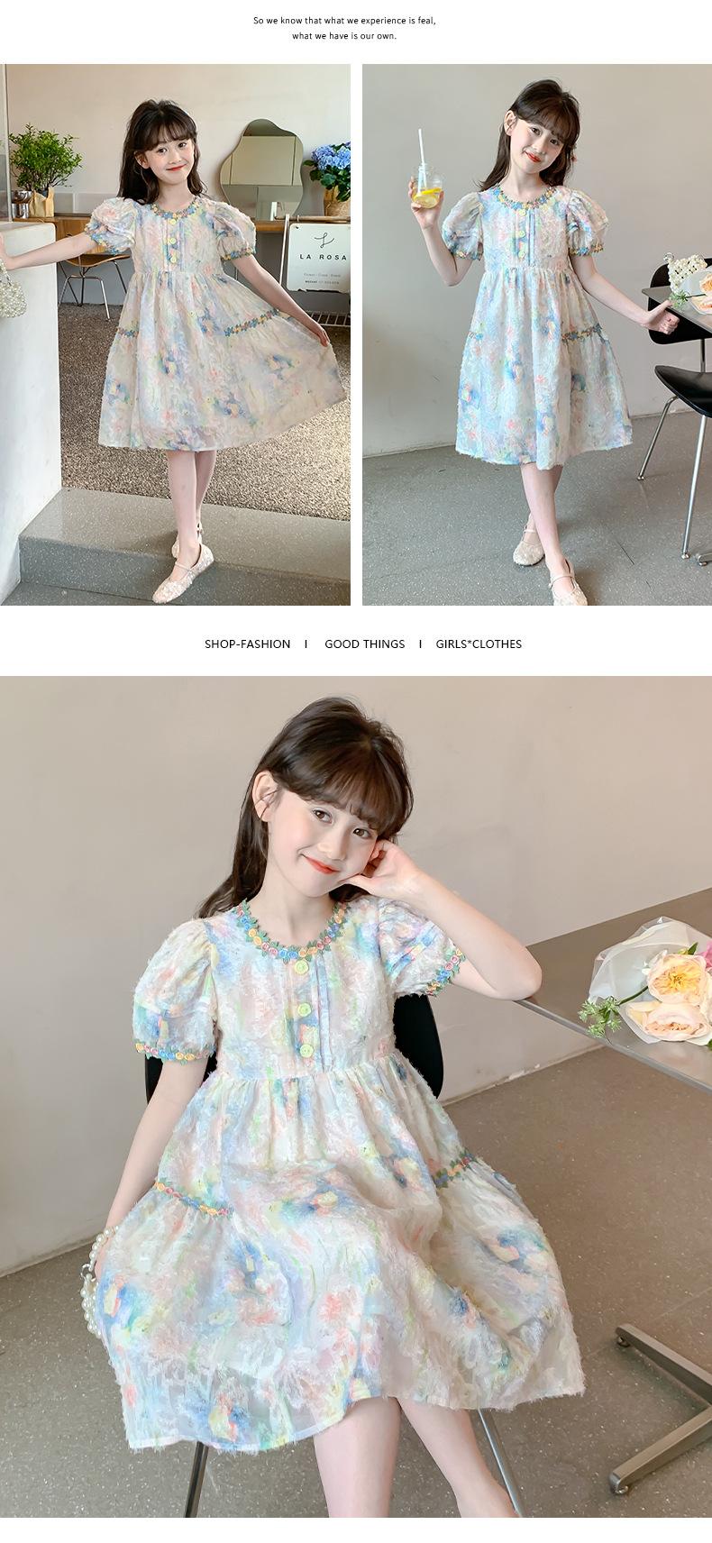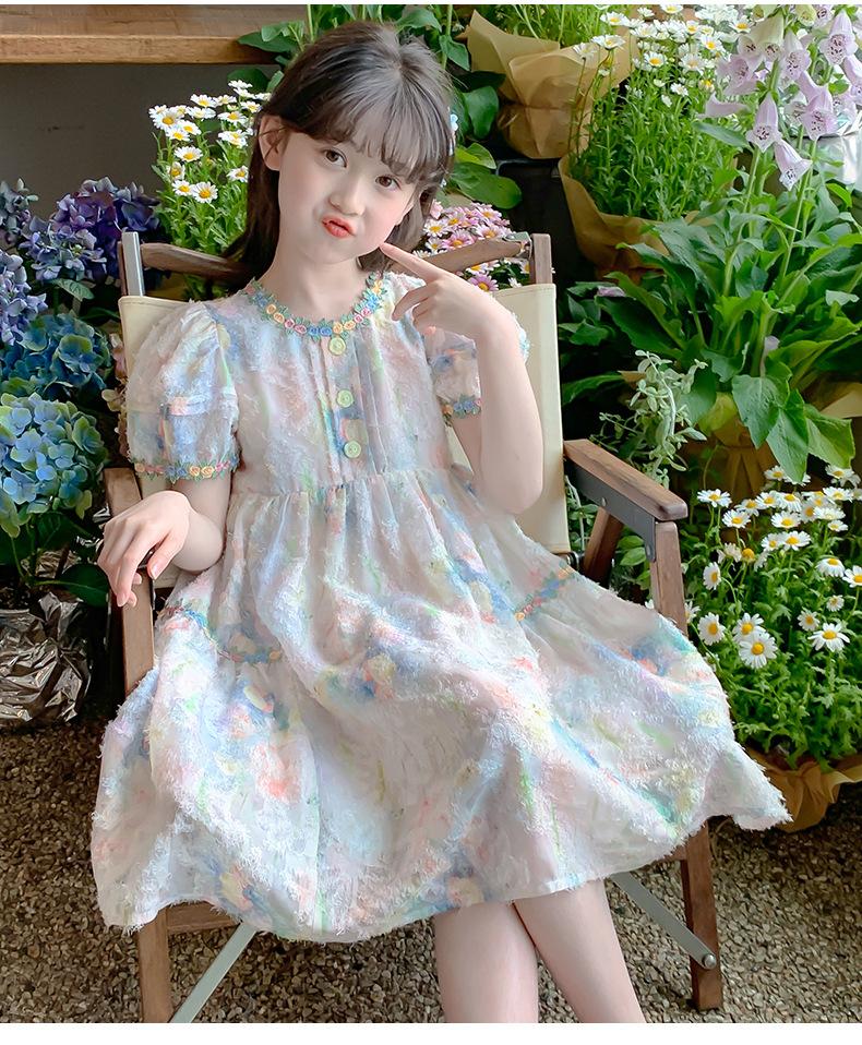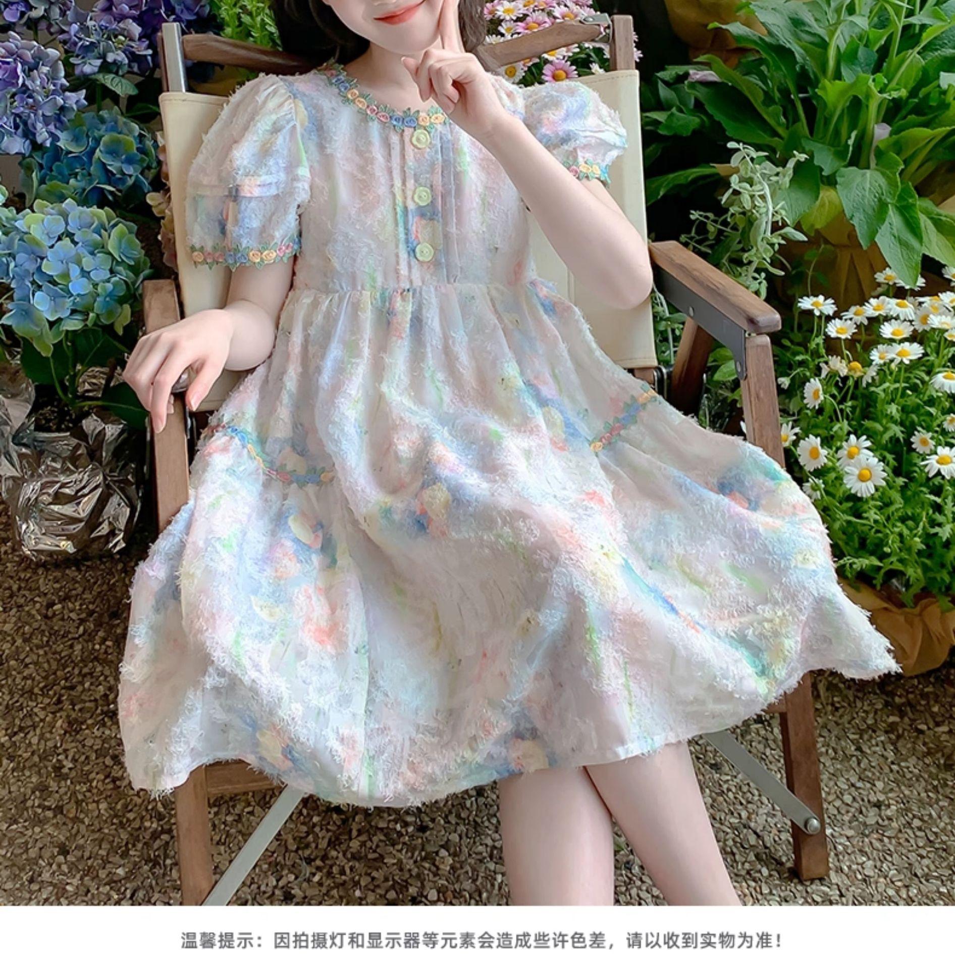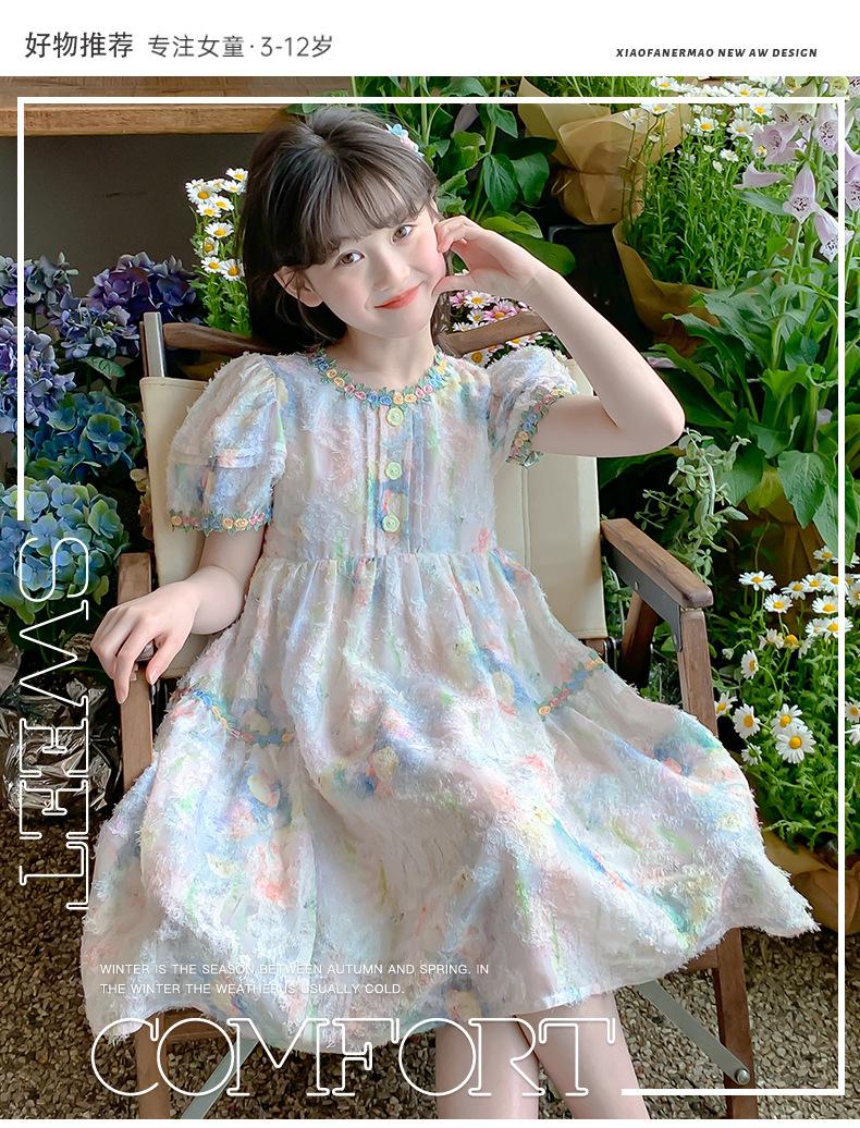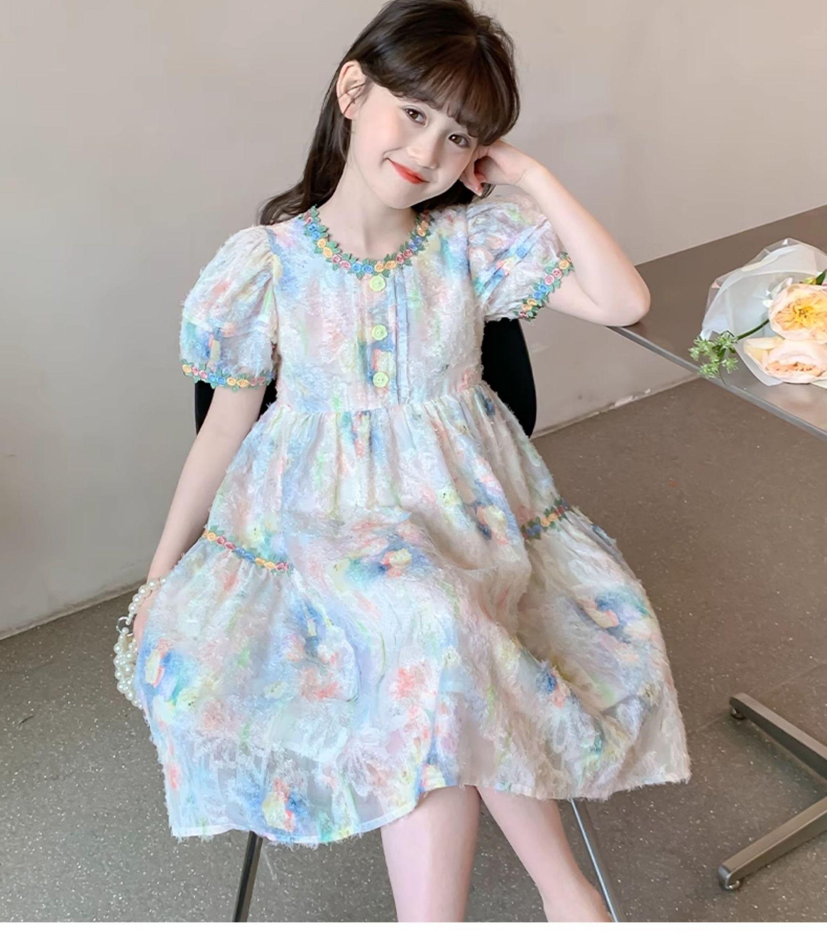 Vestido de niña Verano 2025 Verano Nuevo Vestido de Princesa para Niños Vestido Infantil Delgado de Estilo Occidental para Niños Grandes Moderno