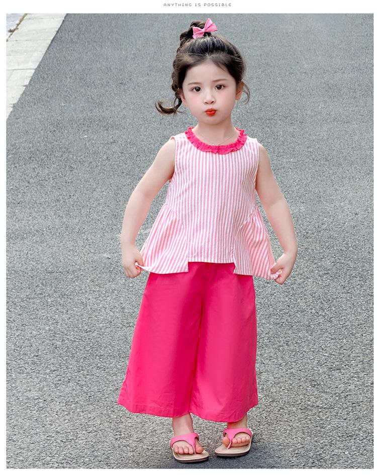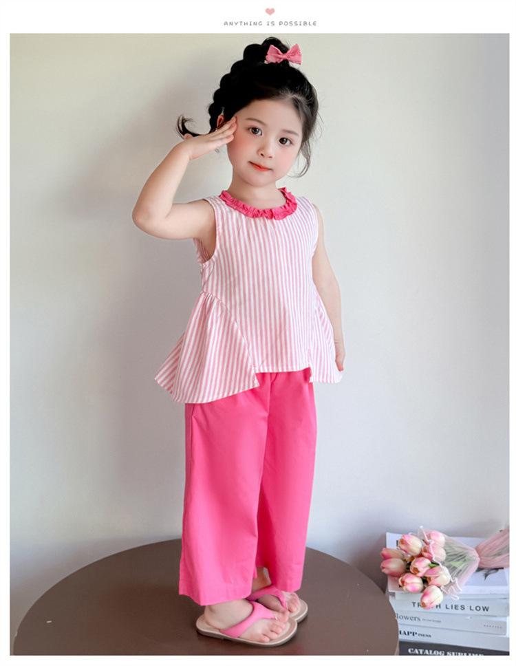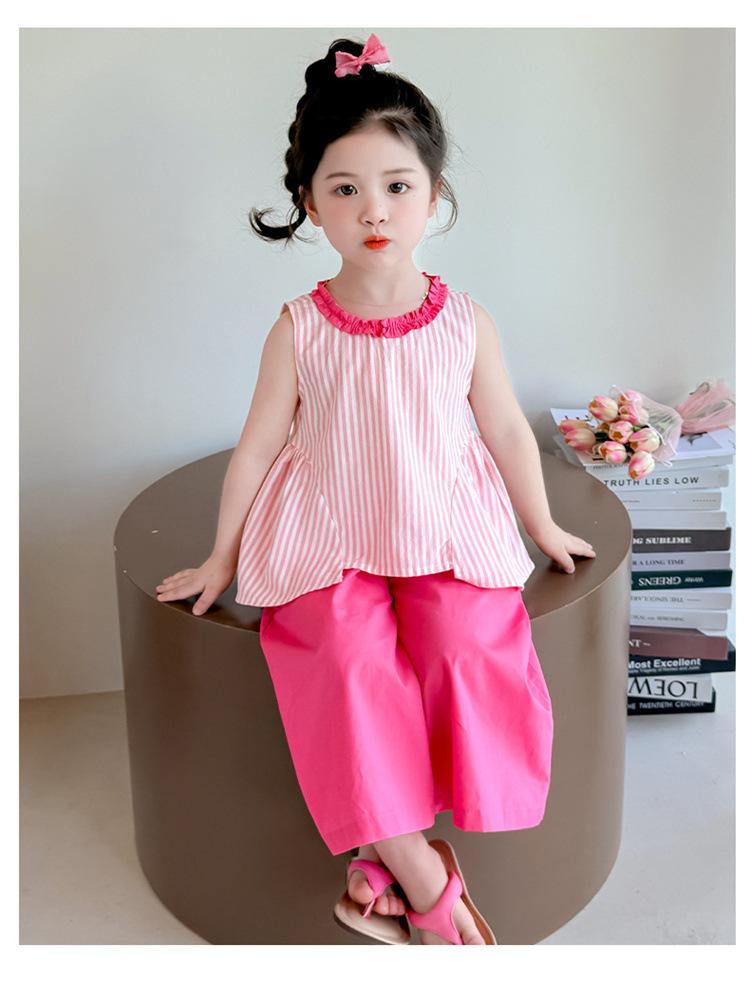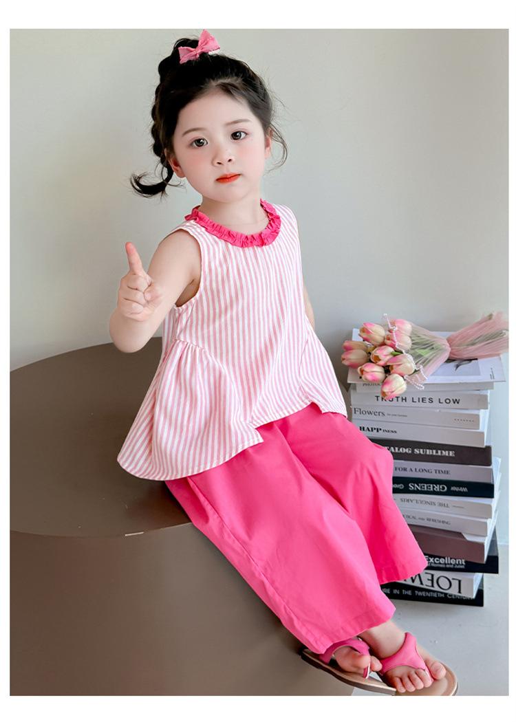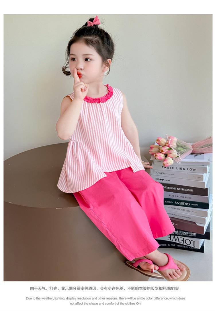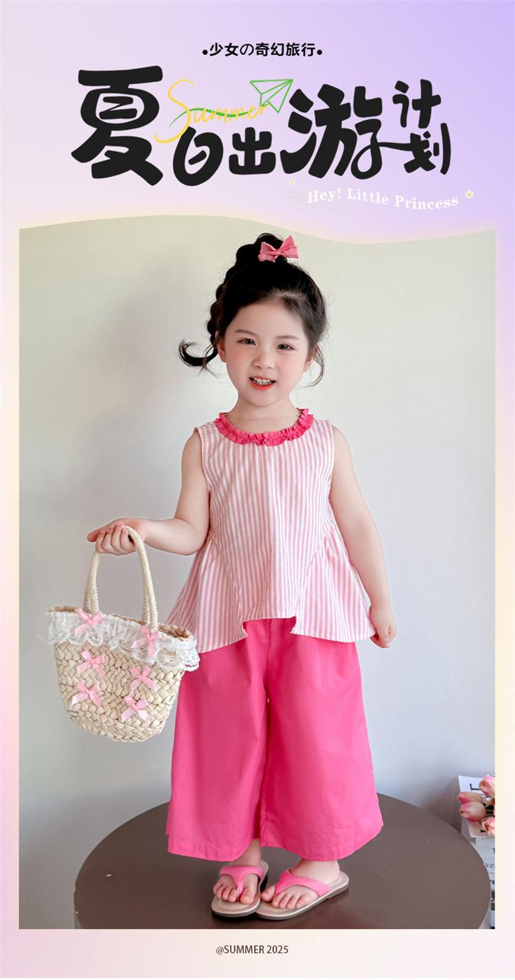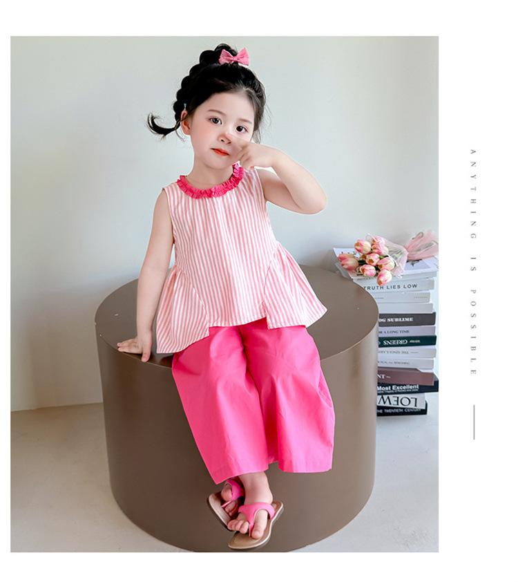 Pantalones de pierna ancha para niñas Traje a rayas 2025 Verano Nueva moda Niña Elegante Conjunto de dos piezas Vestido de verano para niños