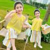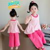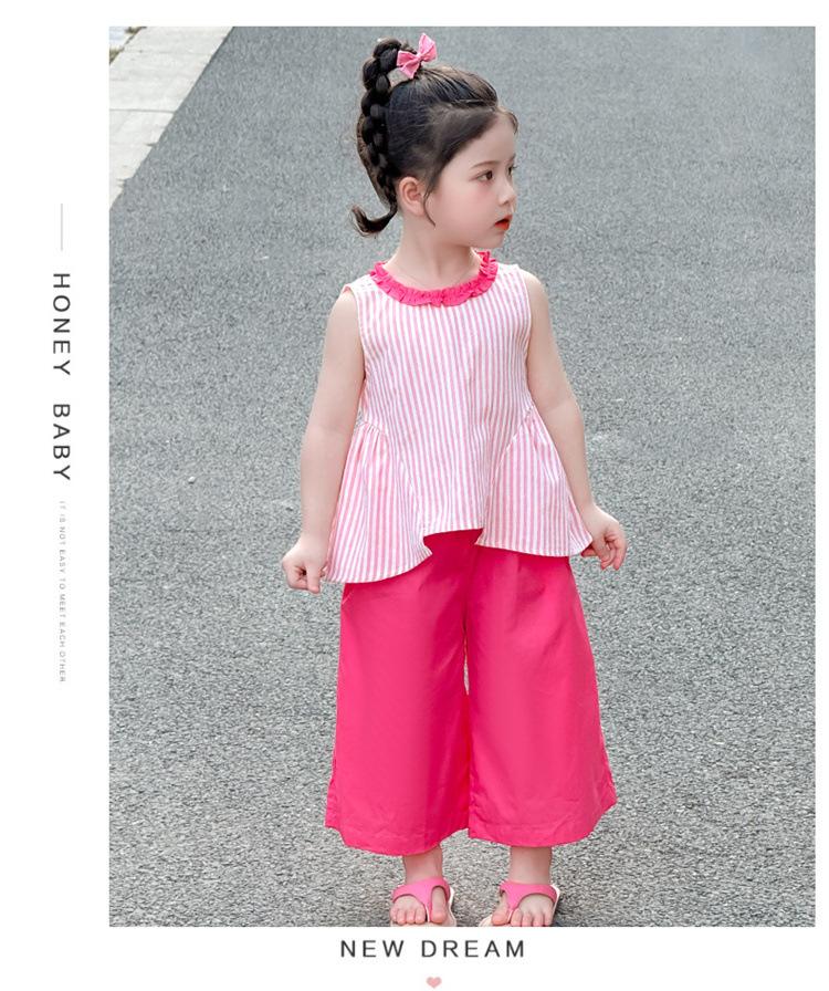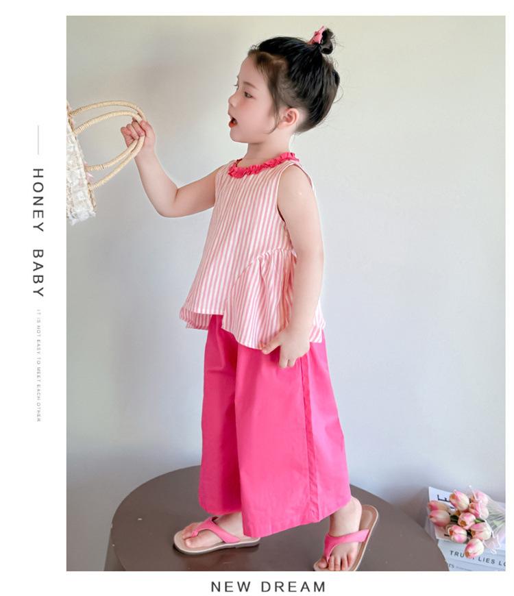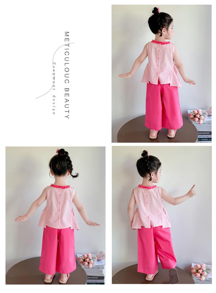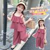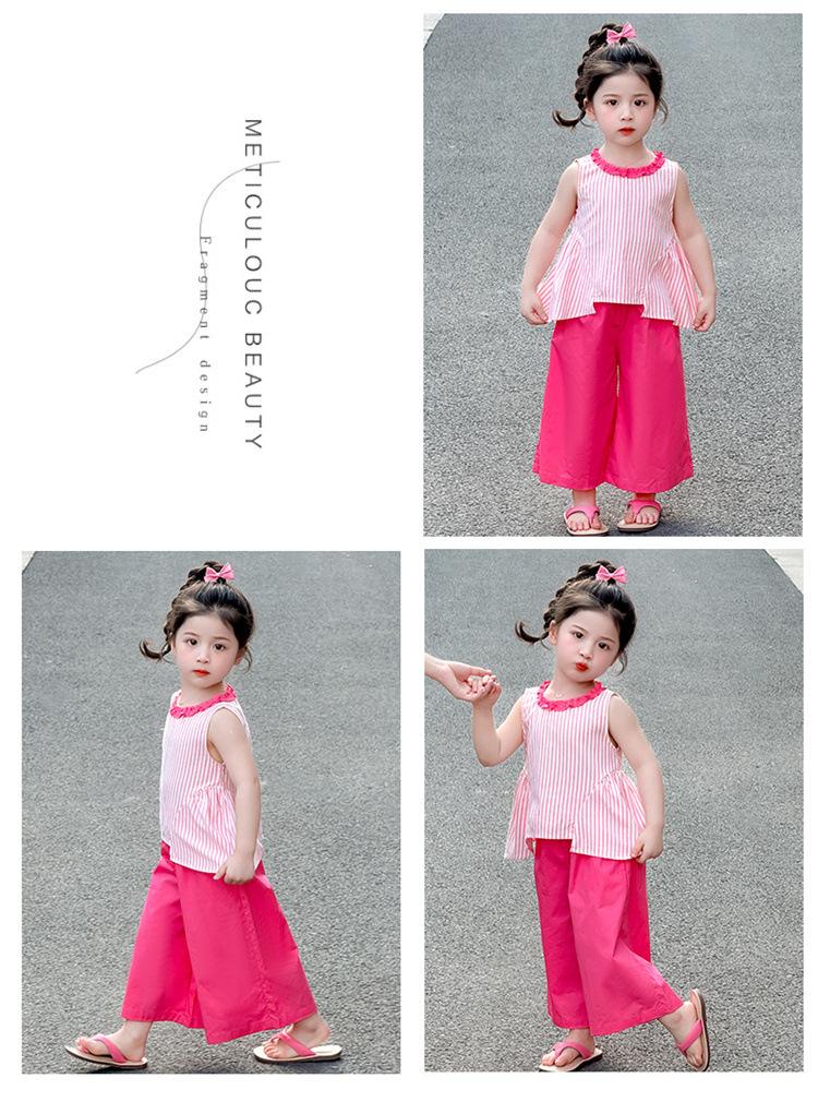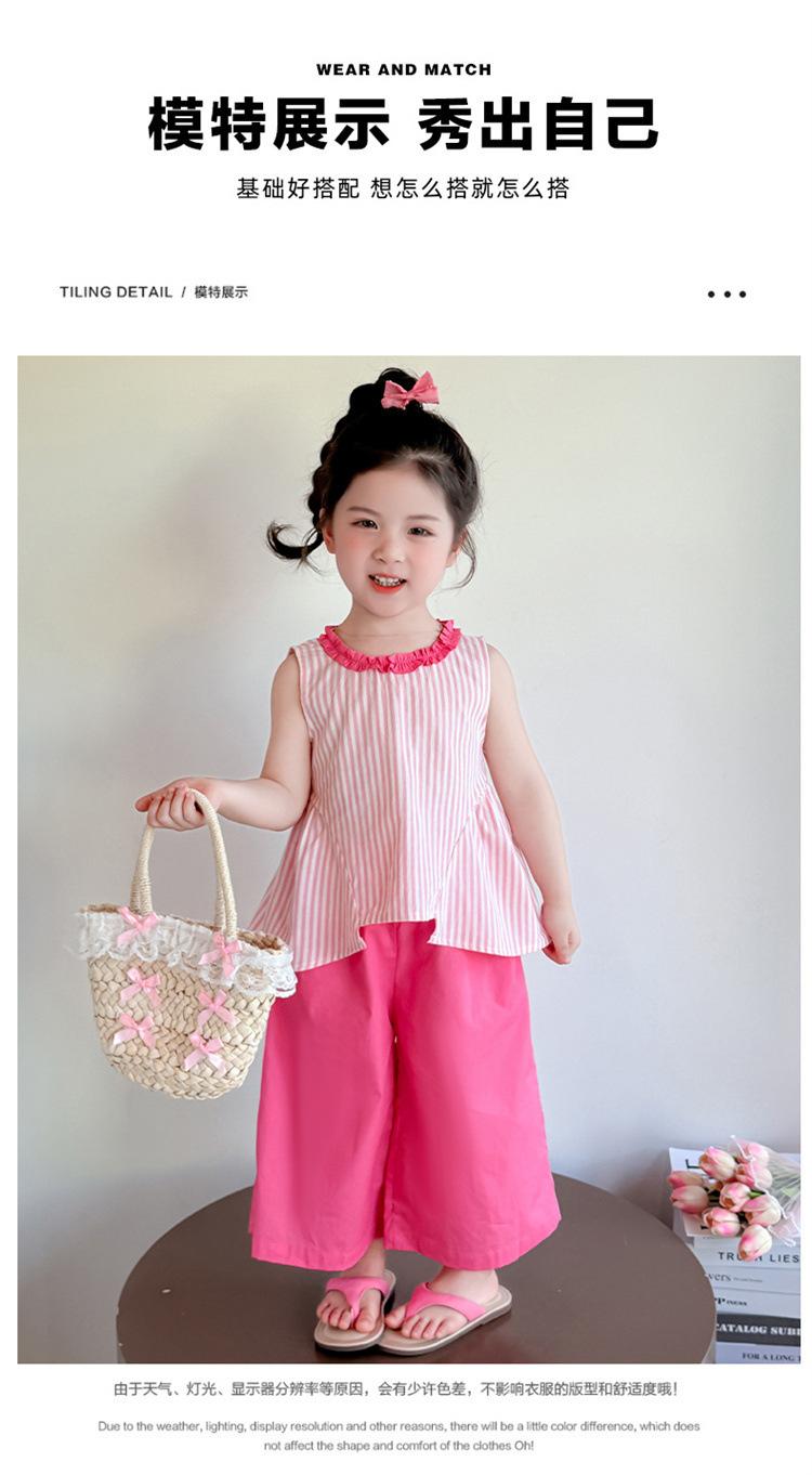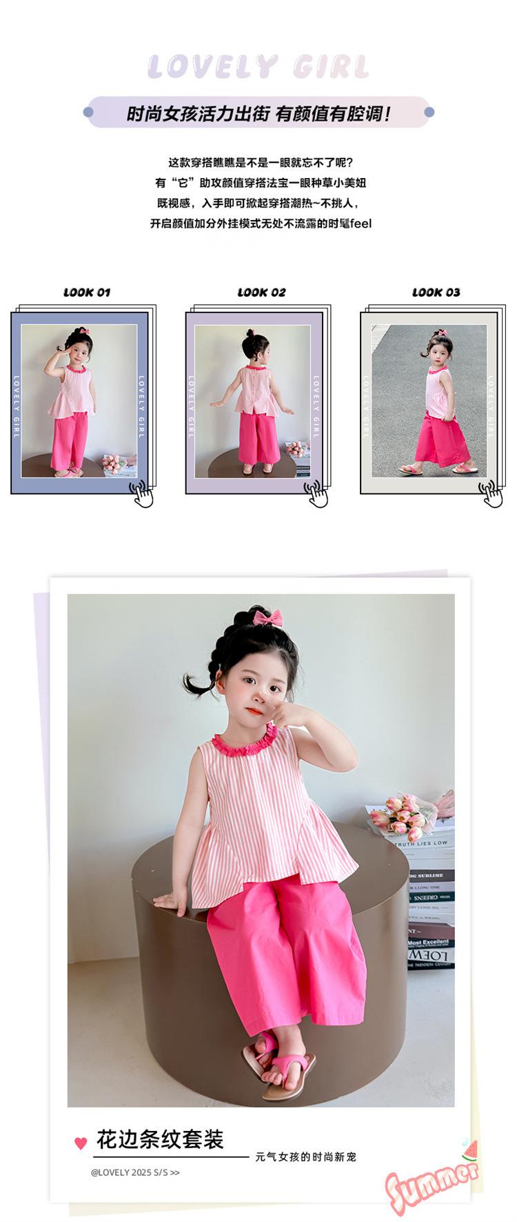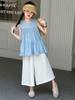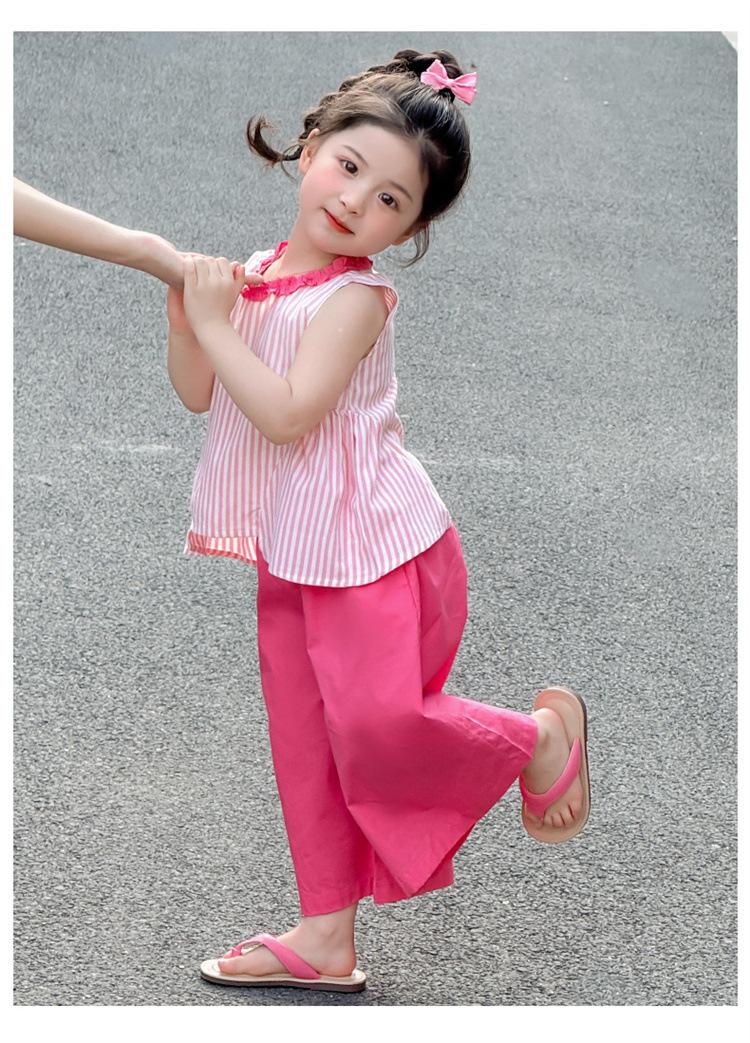 Pantalones de pierna ancha para niñas Traje a rayas 2025 Verano Nueva moda Niña Elegante Conjunto de dos piezas Vestido de verano para niños