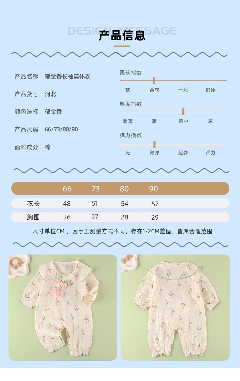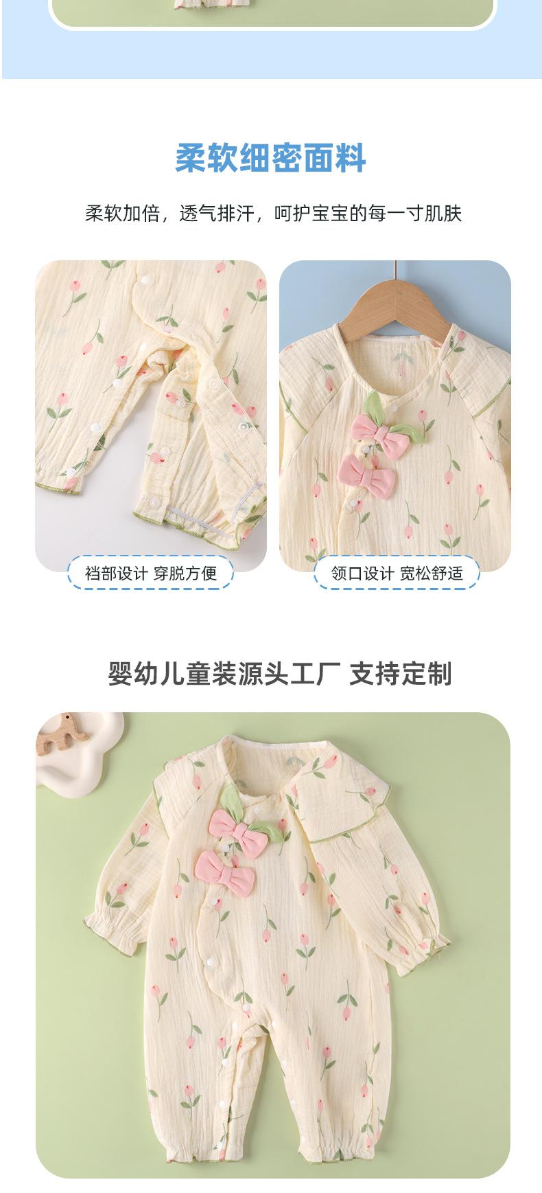 Mameluco de Verano para Bebé Ropa Infantil Anyang Delgado de Manga Larga Algodón Puro Transpirable Ropa para Bebé Niña Mono