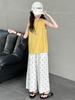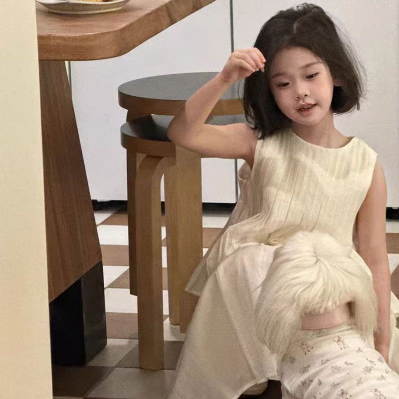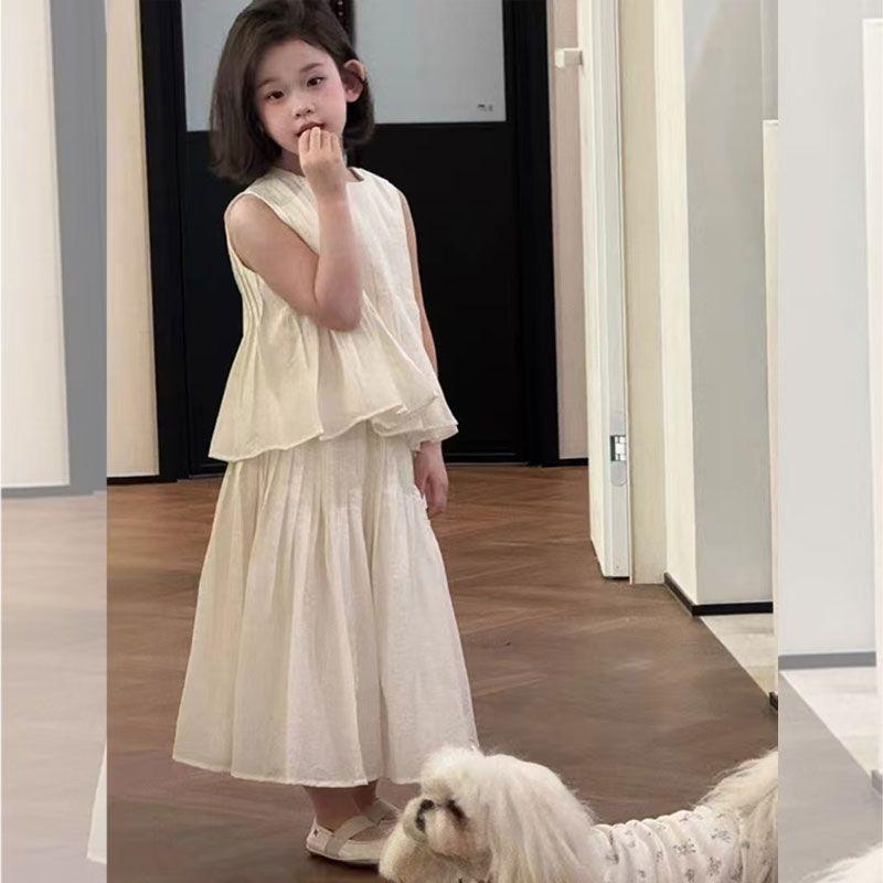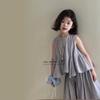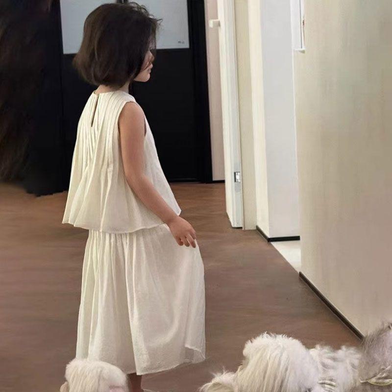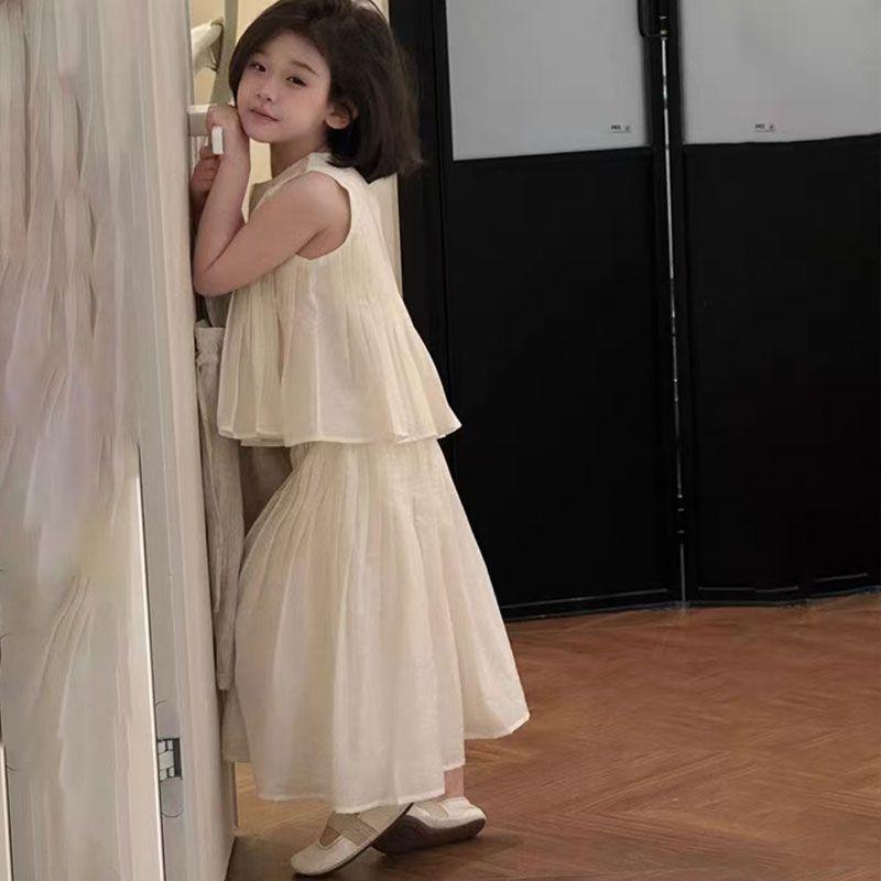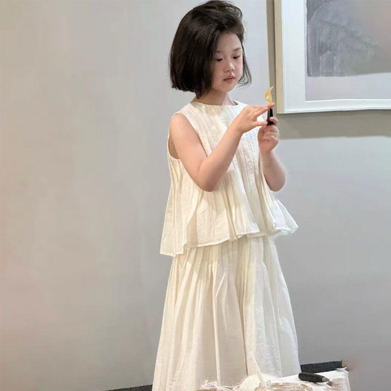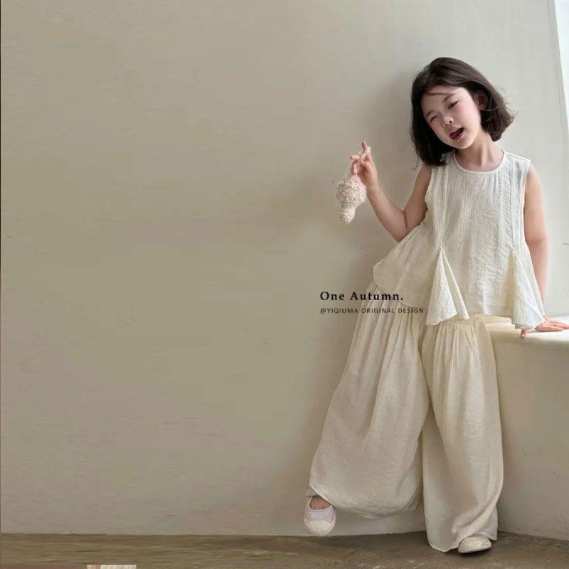 Traje de Chaleco Casual Simple de Verano Blanco para Niñas, Pantalones de Pierna Ancha de Verano Nuevos para Niños Grandes, Conjunto de Dos Piezas a la Moda