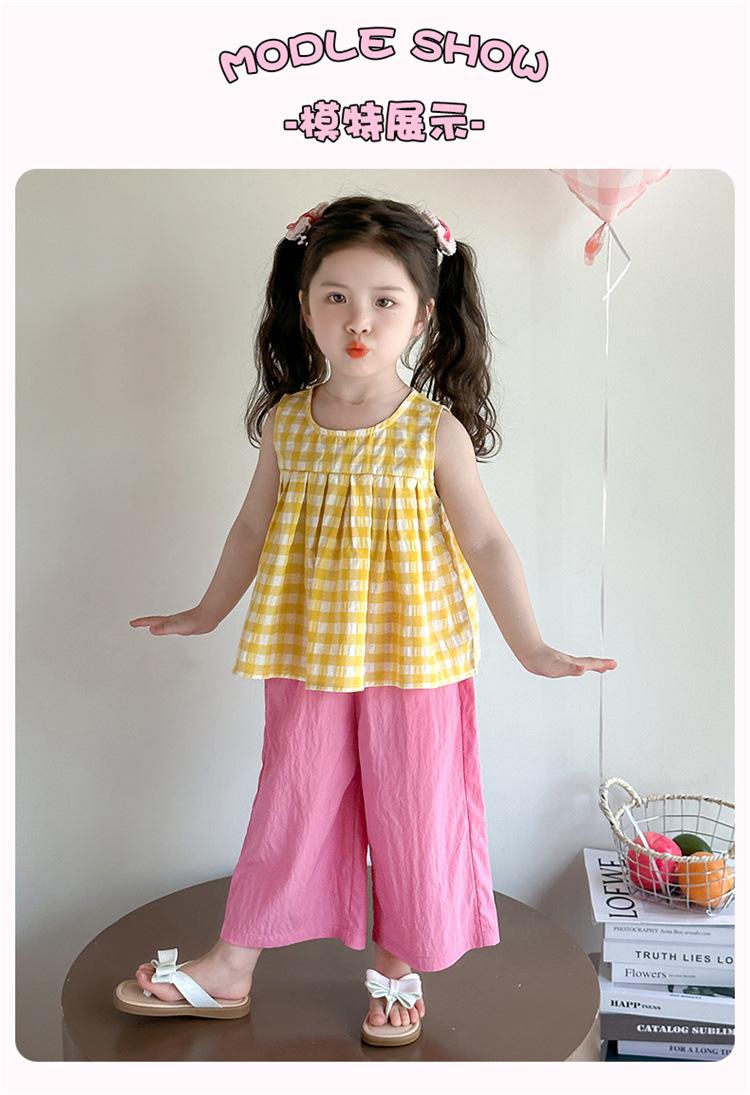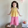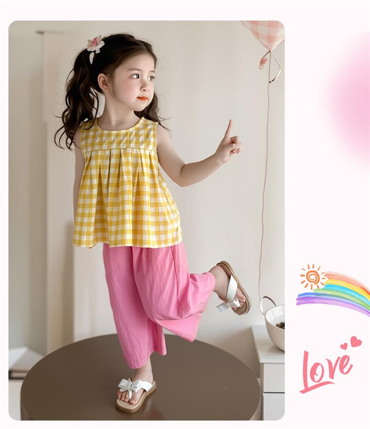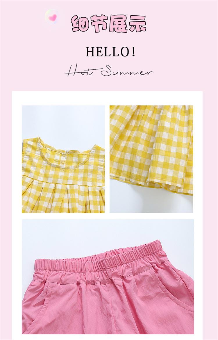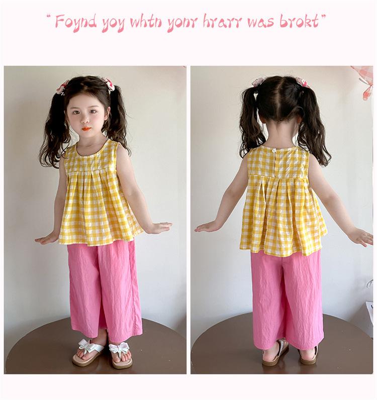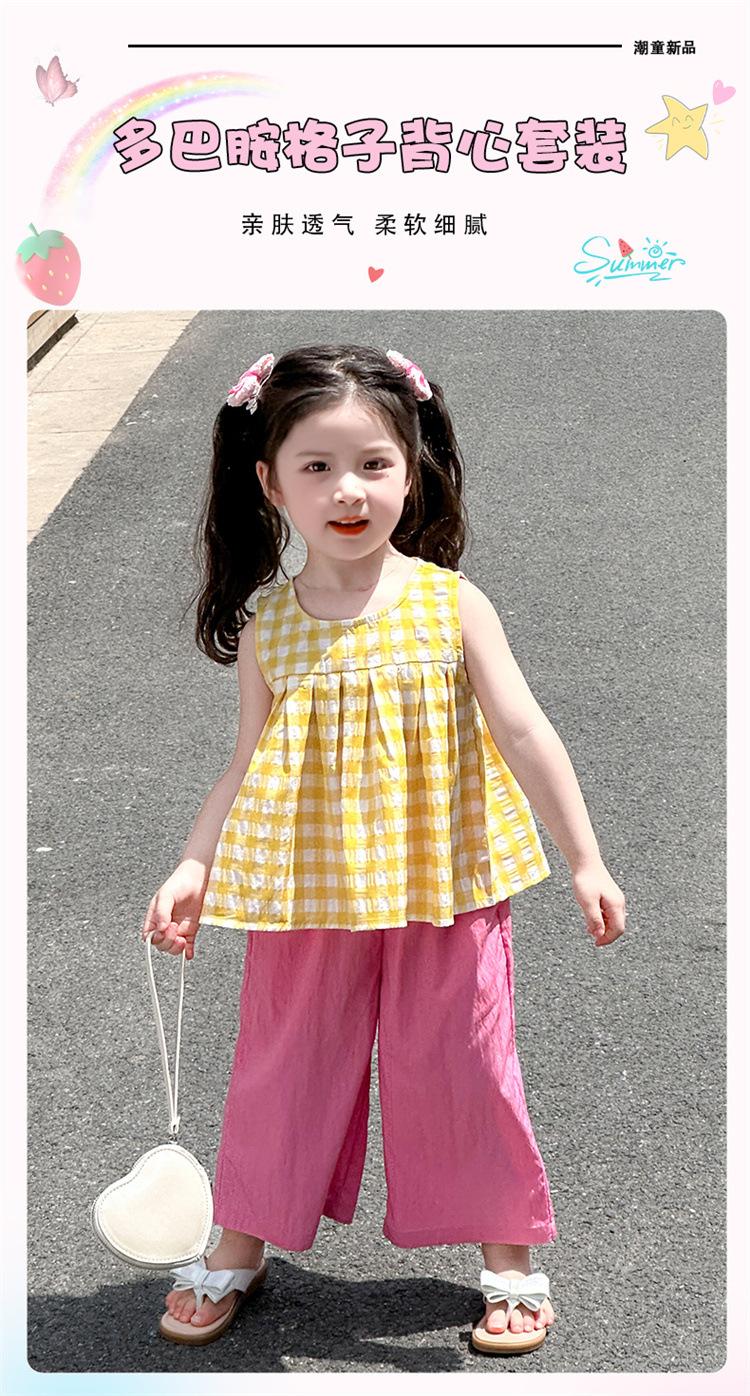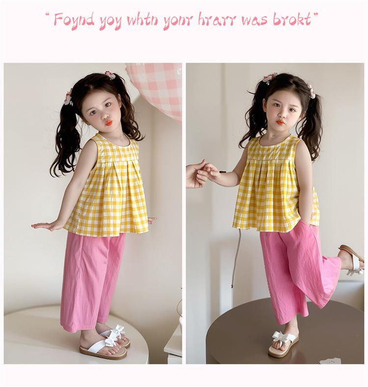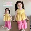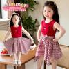 Traje de Cuadros para Niñas 2025 Verano Nueva Moda Conjunto de Dos Piezas Moderno para Niñitas Ropa para Niños Pequeños y Medianos Tendencia de Ropa de Verano