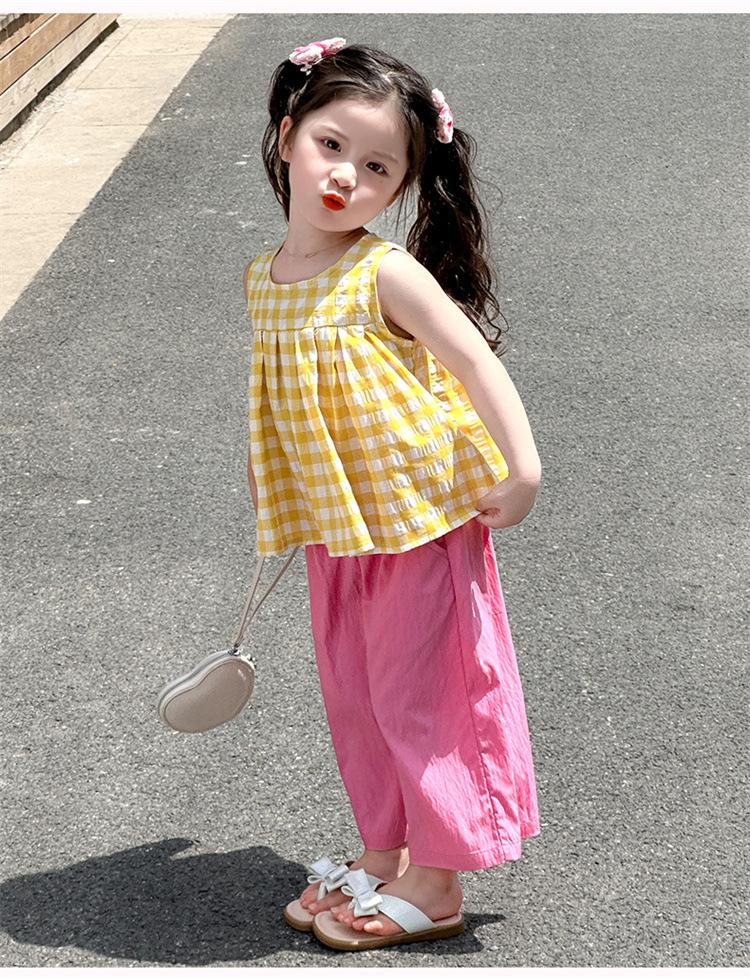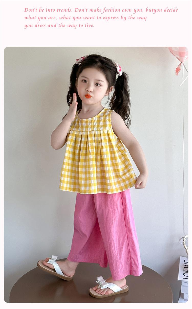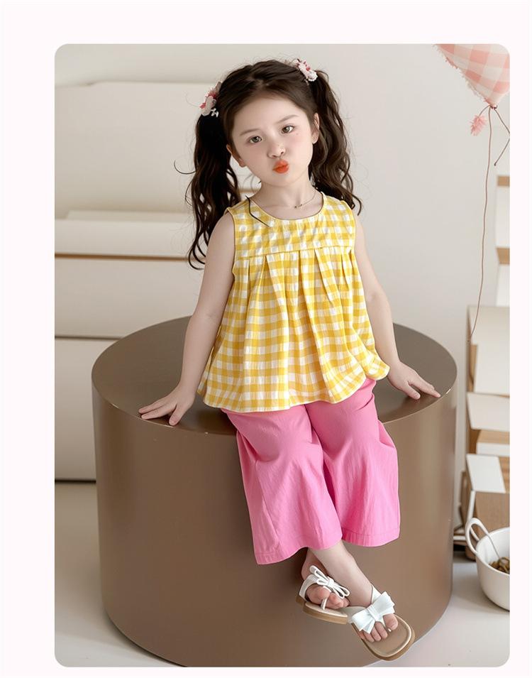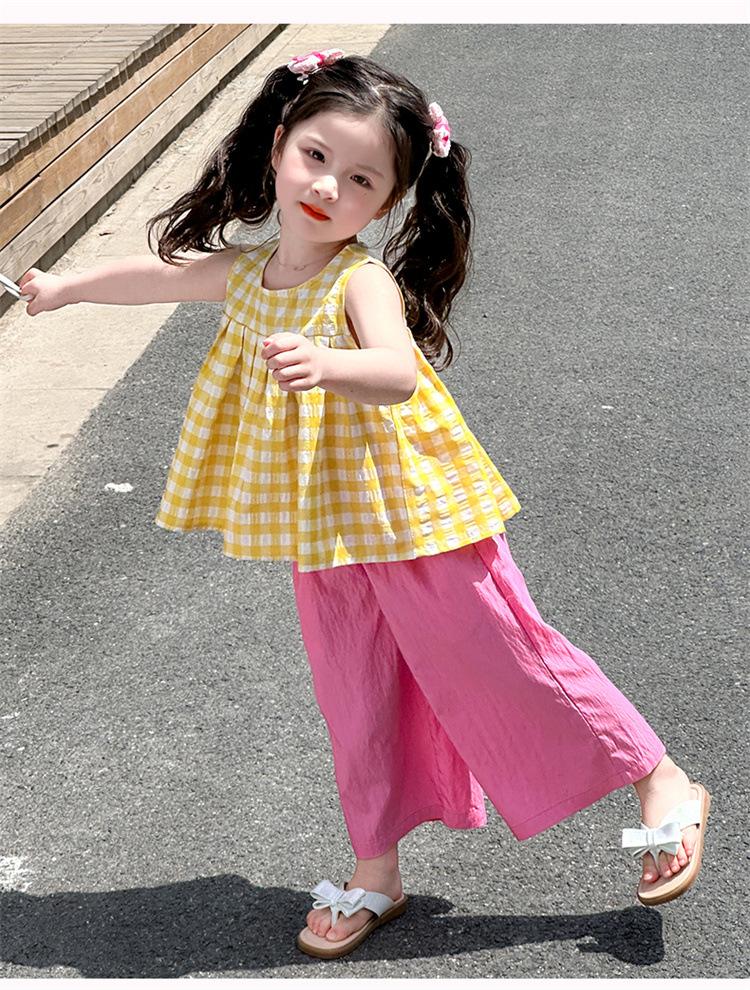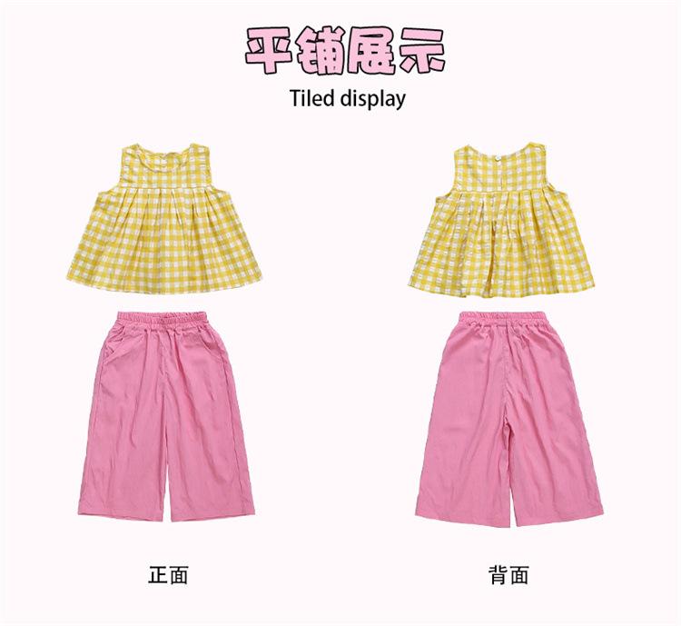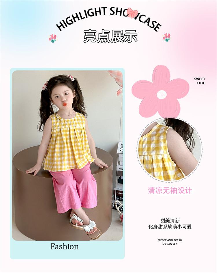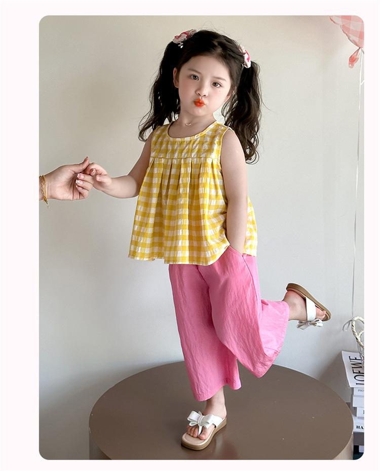Traje de Cuadros para Niñas 2025 Verano Nueva Moda Conjunto de Dos Piezas Moderno para Niñitas Ropa para Niños Pequeños y Medianos Tendencia de Ropa de Verano