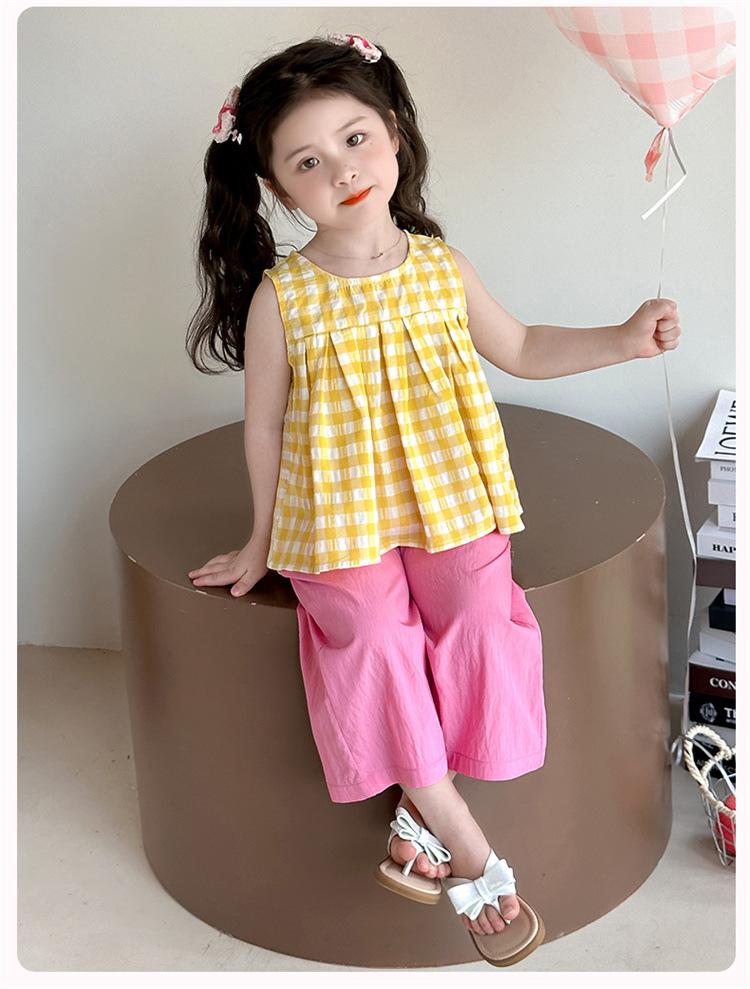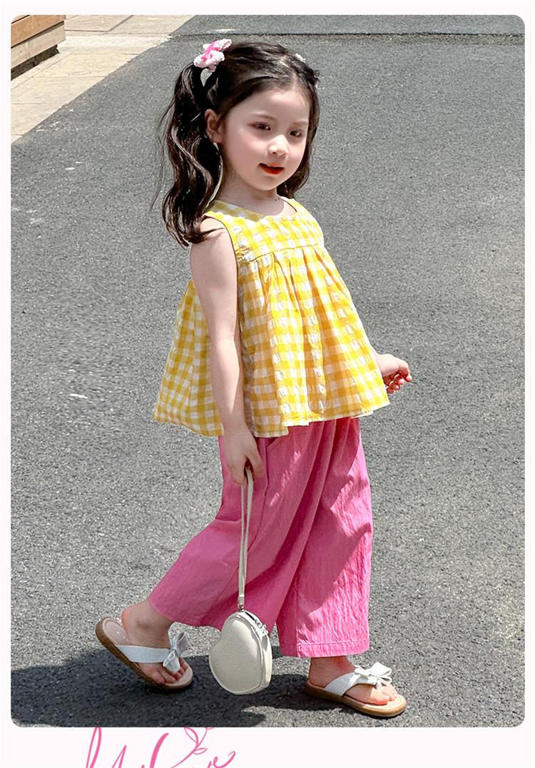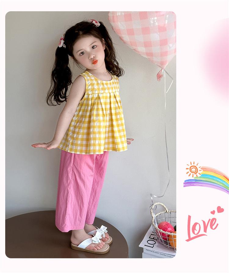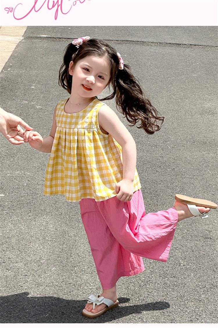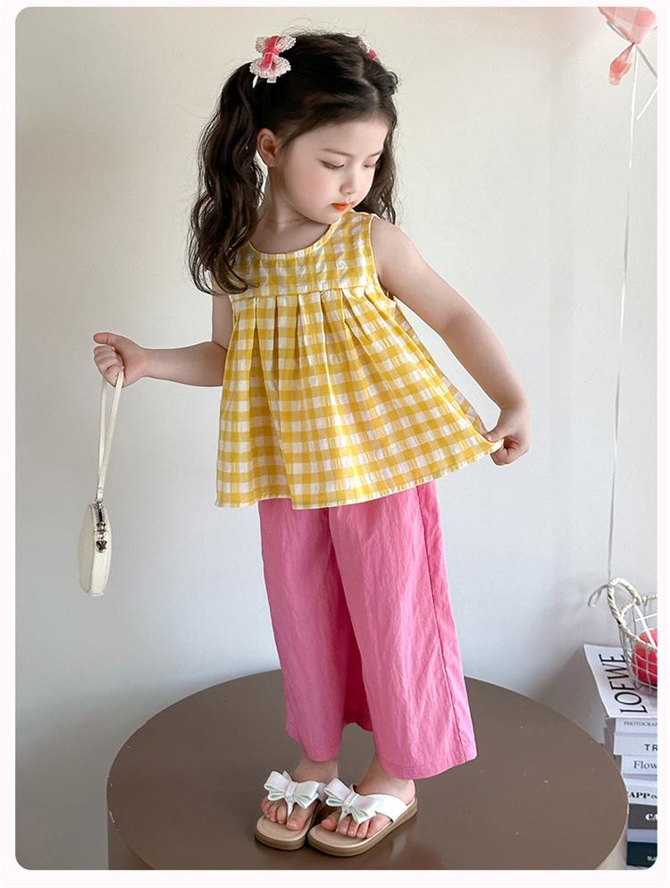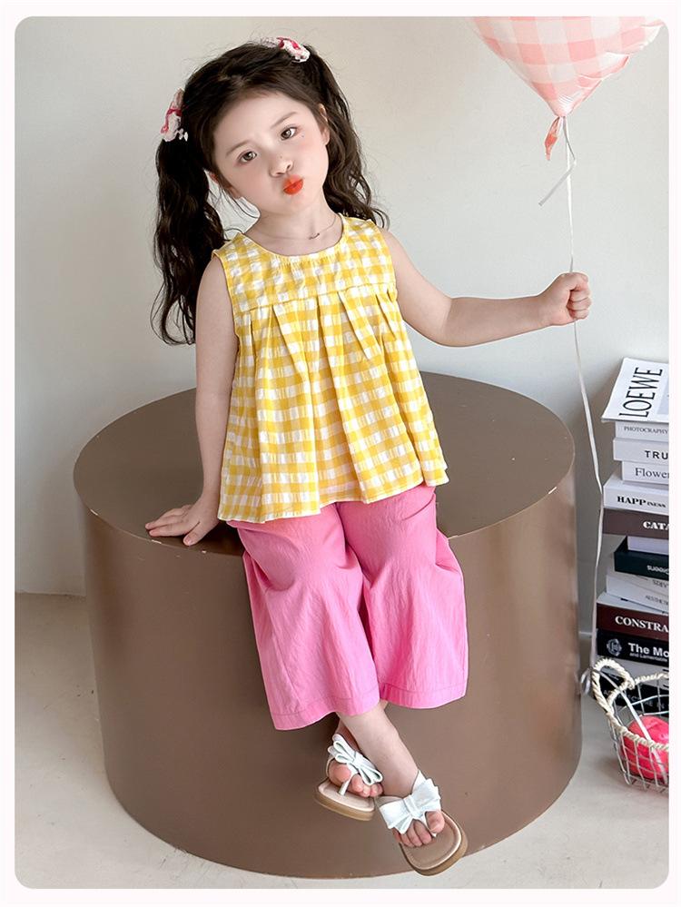 Traje de Cuadros para Niñas 2025 Verano Nueva Moda Conjunto de Dos Piezas Moderno para Niñitas Ropa para Niños Pequeños y Medianos Tendencia de Ropa de Verano