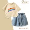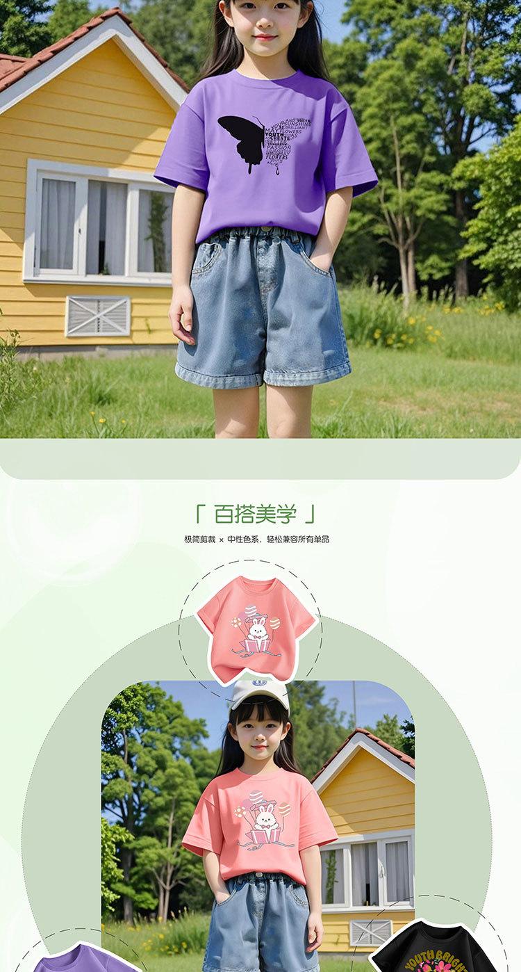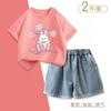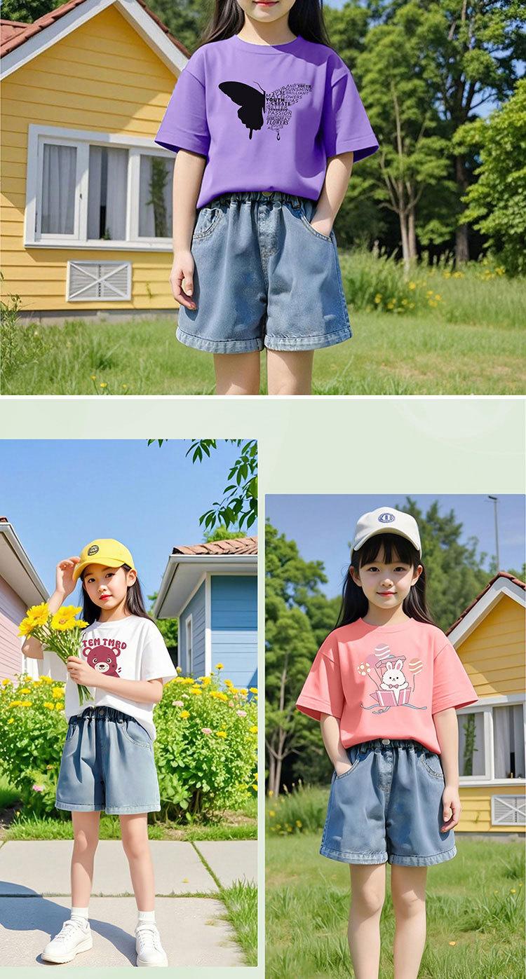 Ropa de Verano para Niñas 2025 Nuevo Estilo Coreano Estampado de Dibujos Animados Tops de Manga Corta para Niñas Versátil Traje de Culottes de Mezclilla
