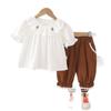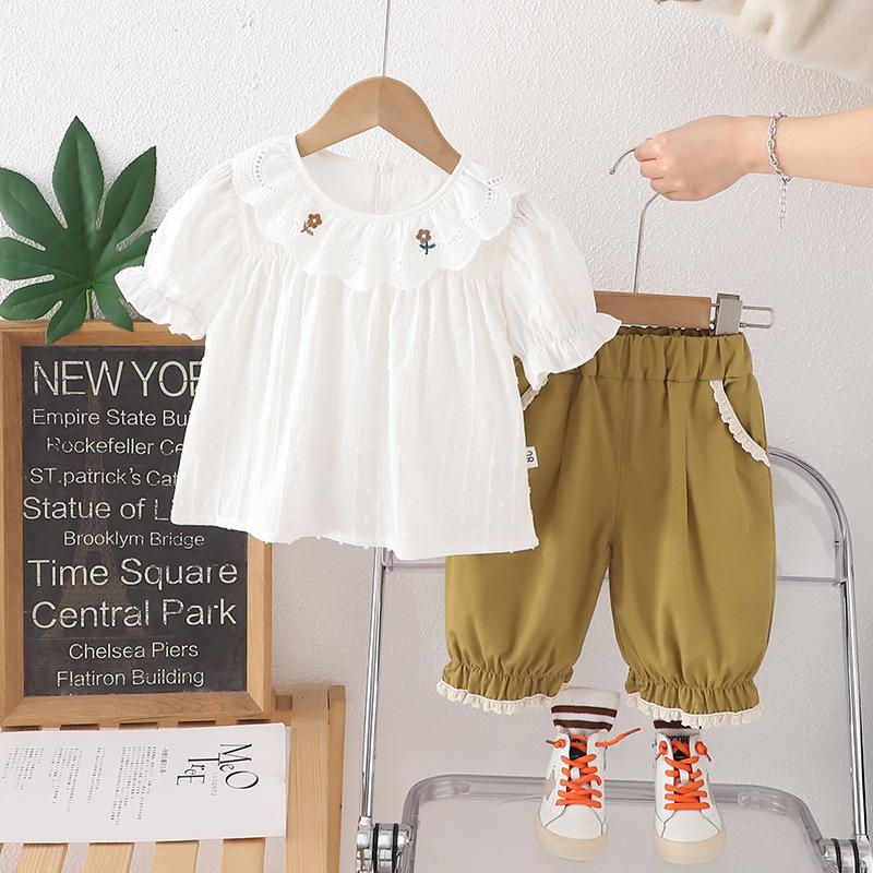 2025 Nuevo Traje de Verano para Niños de Manga Corta Top de Manga Corta con Cuello de Solapa y Flores Pequeñas Shorts Conjunto de Dos Piezas a la Moda