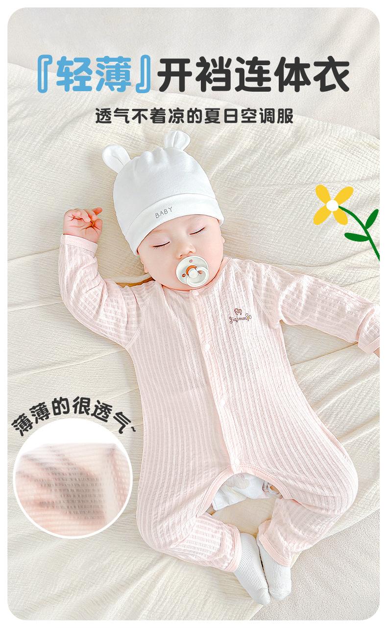 Mameluco de Bebé Verano Recién Nacido Algodón Puro Fino Manga Larga Ropa Abierta para Hombre y Mujer Pijama Acondicionado Ropa de Verano para Bebé