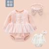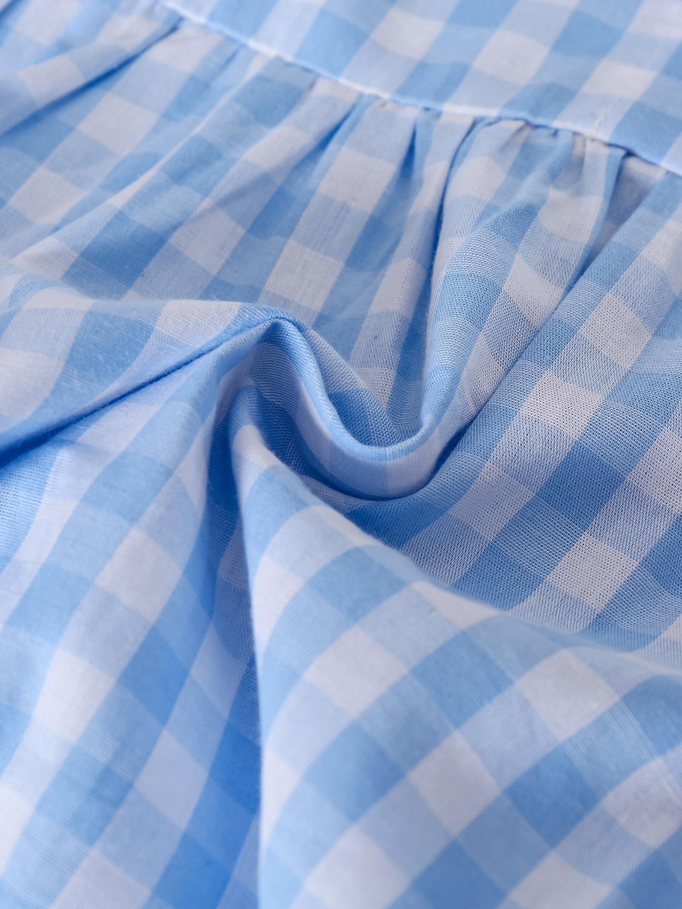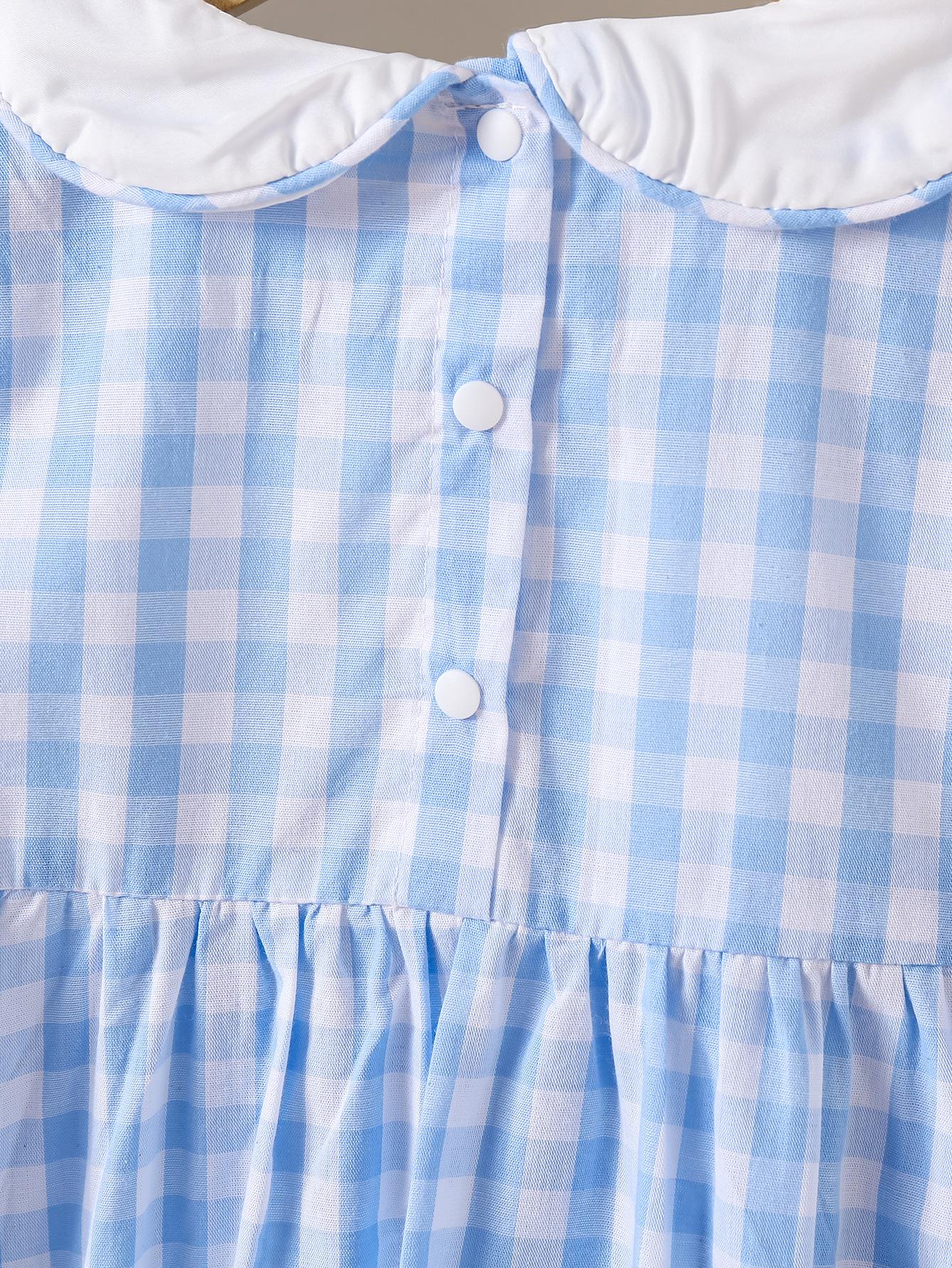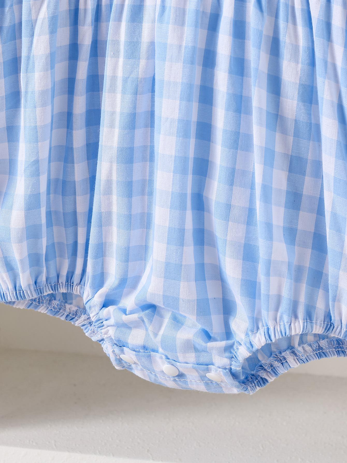 Nuevo Mameluco de Otoño para Niñas con Cuello de Muñeca Transfronterizo, Bordado de Manga Larga a Cuadros Azules, Mameluco Resistente