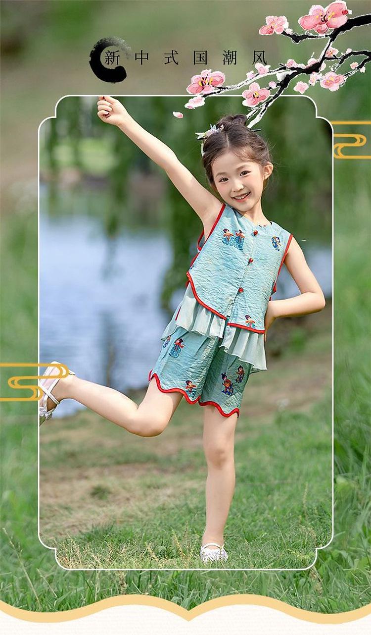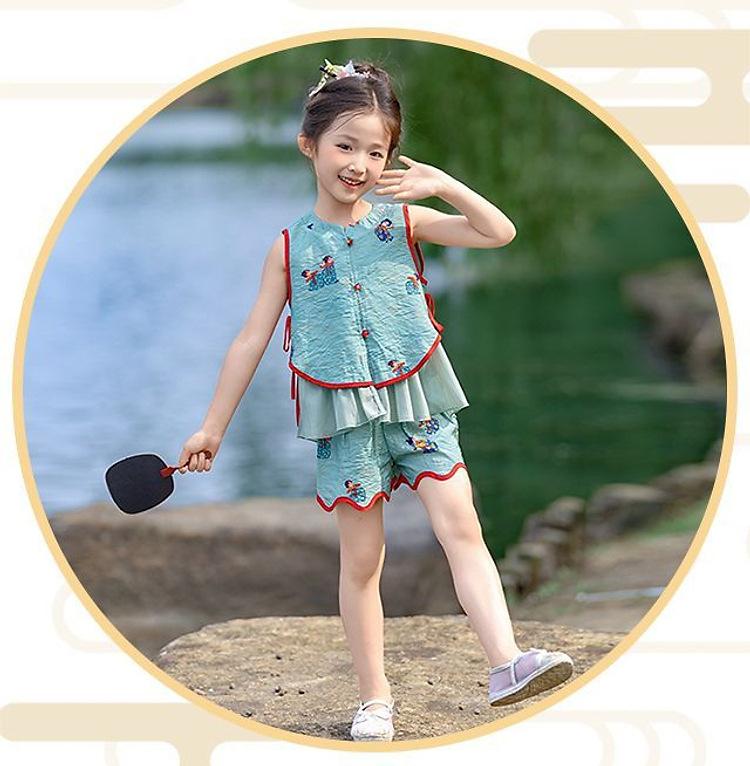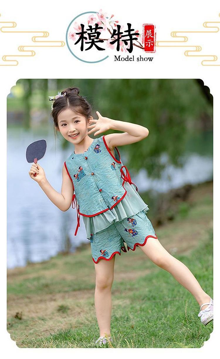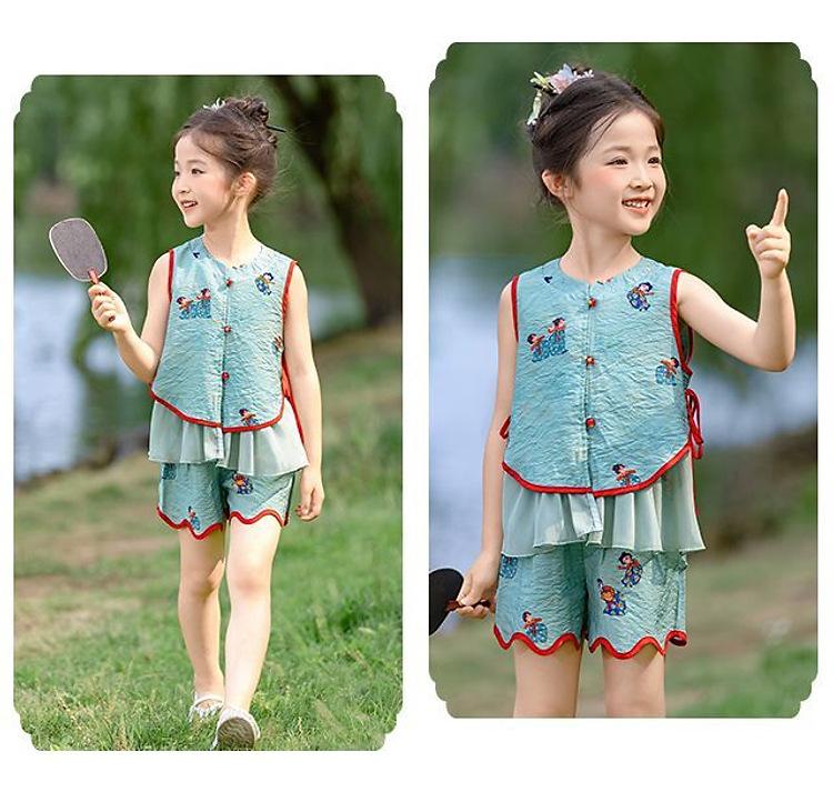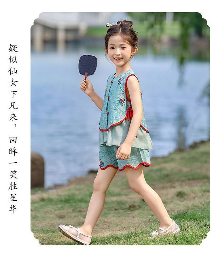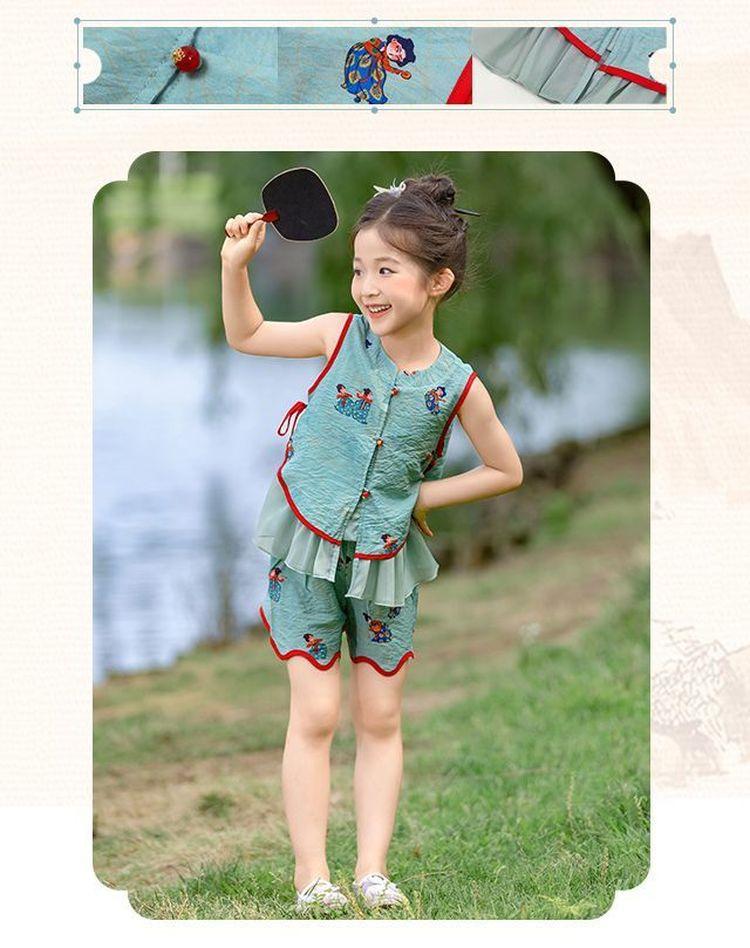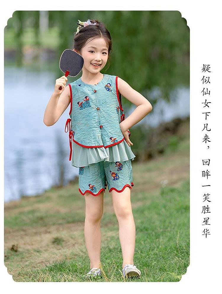 Hanfu Niña Elegante 2025 Verano Nuevo Estilo Chino Niña Bebé Cheongsam Traje Top Conjunto de Dos Piezas