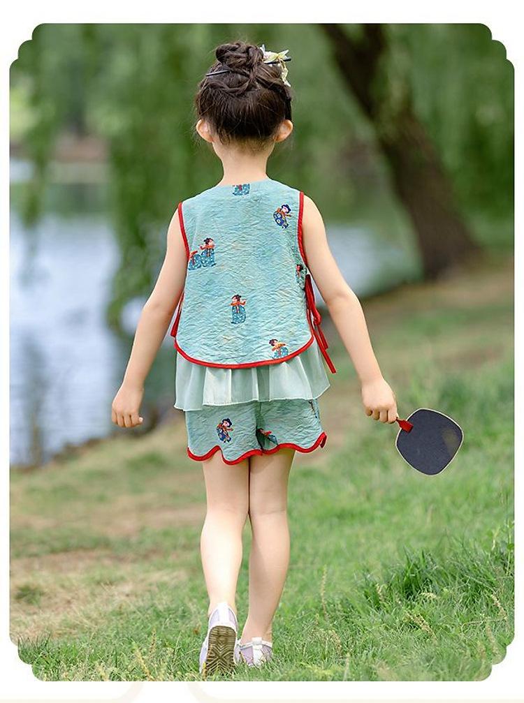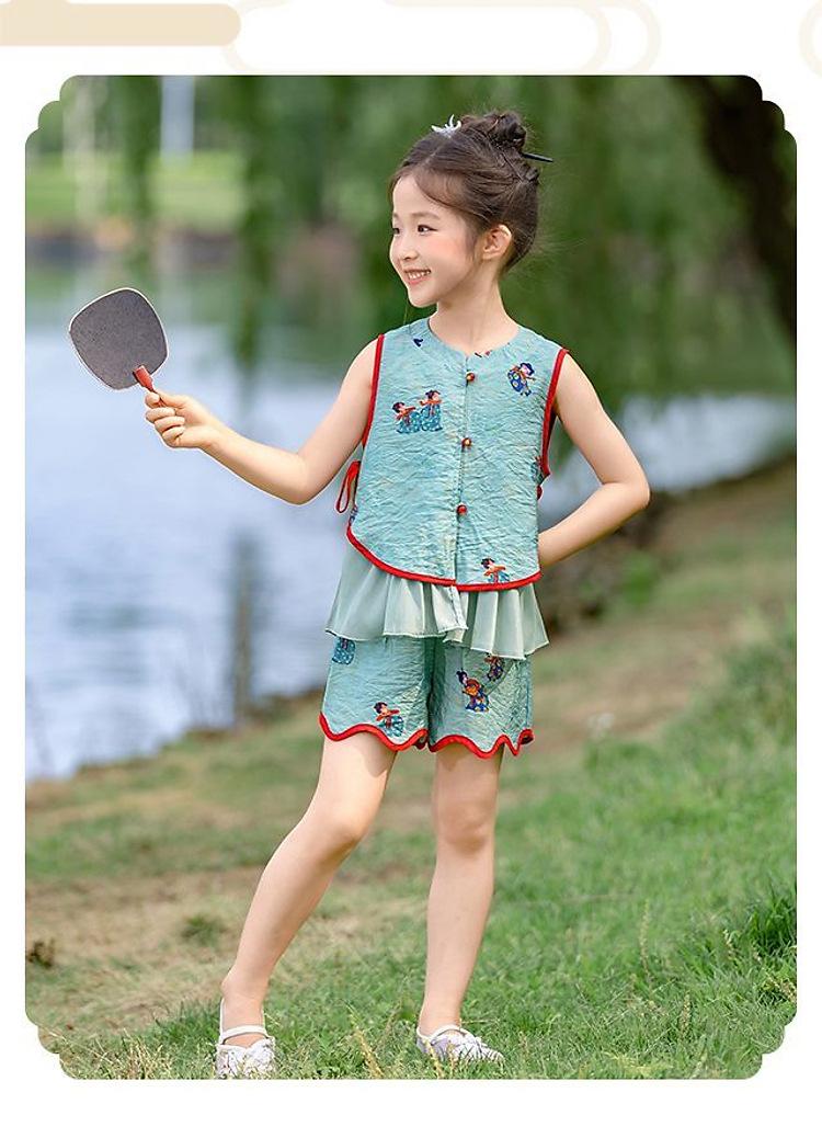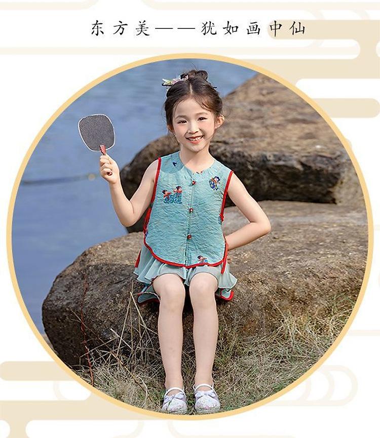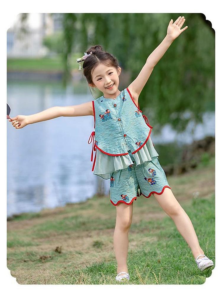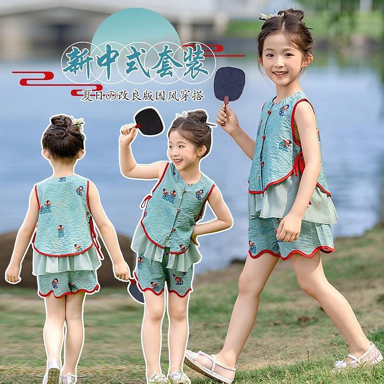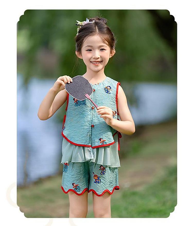 Hanfu Niña Elegante 2025 Verano Nuevo Estilo Chino Niña Bebé Cheongsam Traje Top Conjunto de Dos Piezas