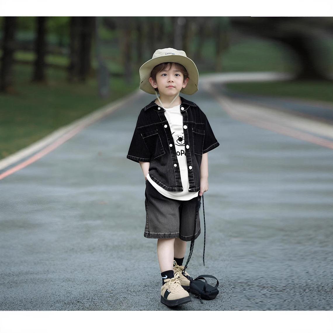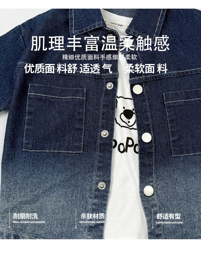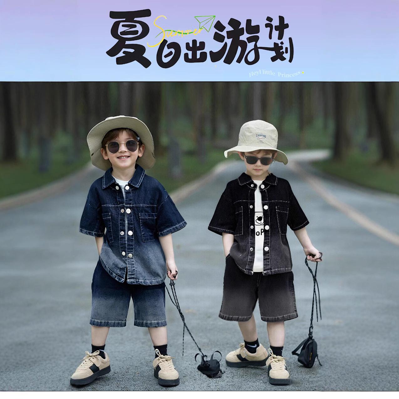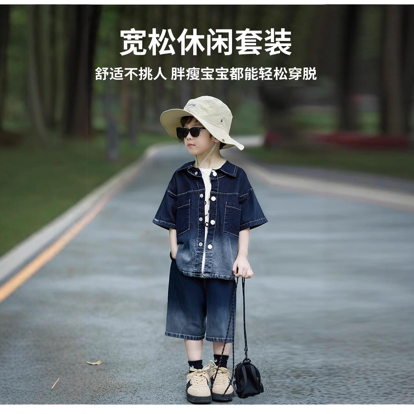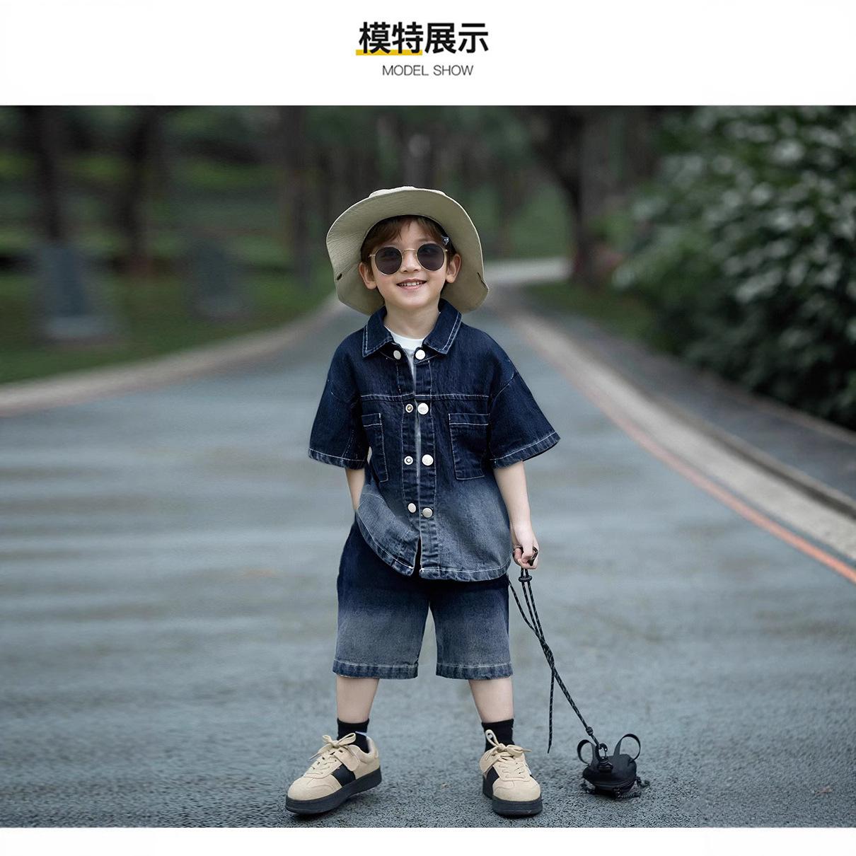 Compra Conjunto de Manga Corta para Niños Verano 2025 Degradado Retro Denim Industria Pesada Conjunto Handsome de Tres Piezas para Niños Venta al por Mayor para Niños Pequeños y Medianos al por mayor en Joom.pro