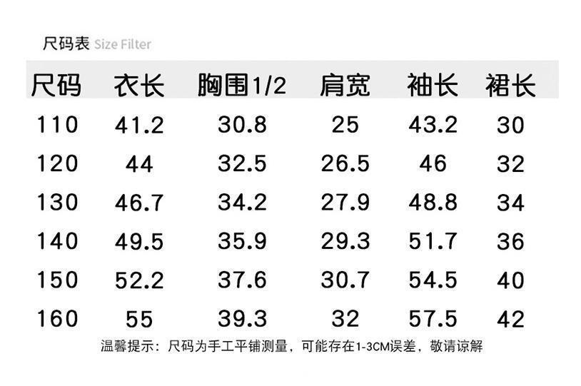 110cm, 120cm, 130cm, 140cm, 150cm, 160cm