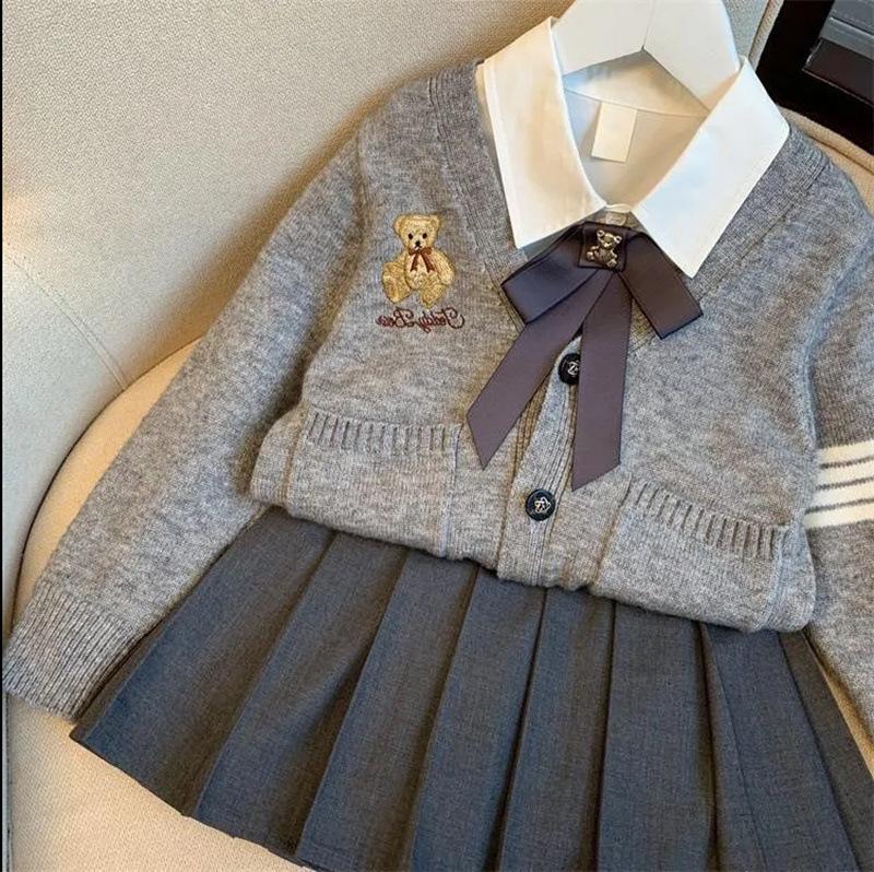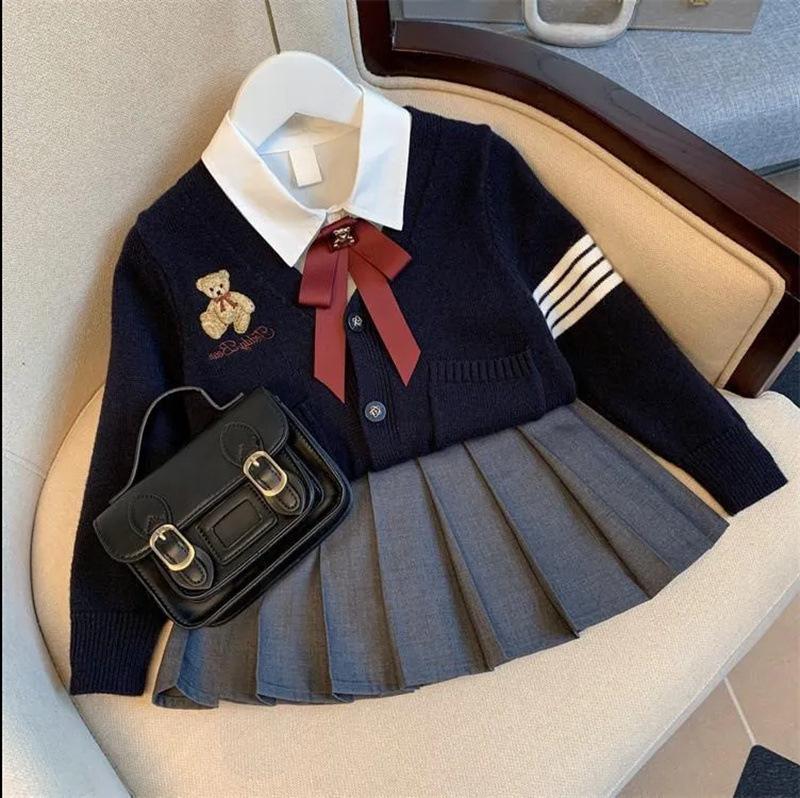 Traje de ropa de otoño para niña 2024 Nueva ropa para niños Estilo universitario Falda JK Uniforme de falda de otoño y primavera para niña