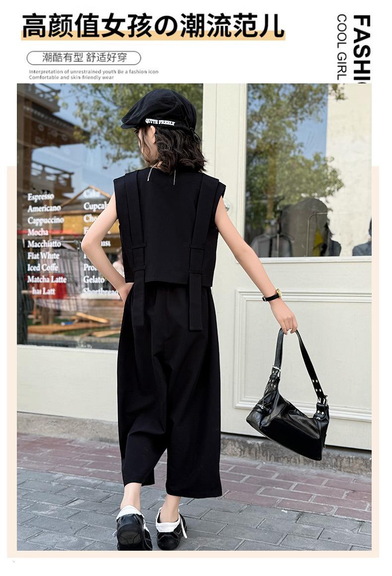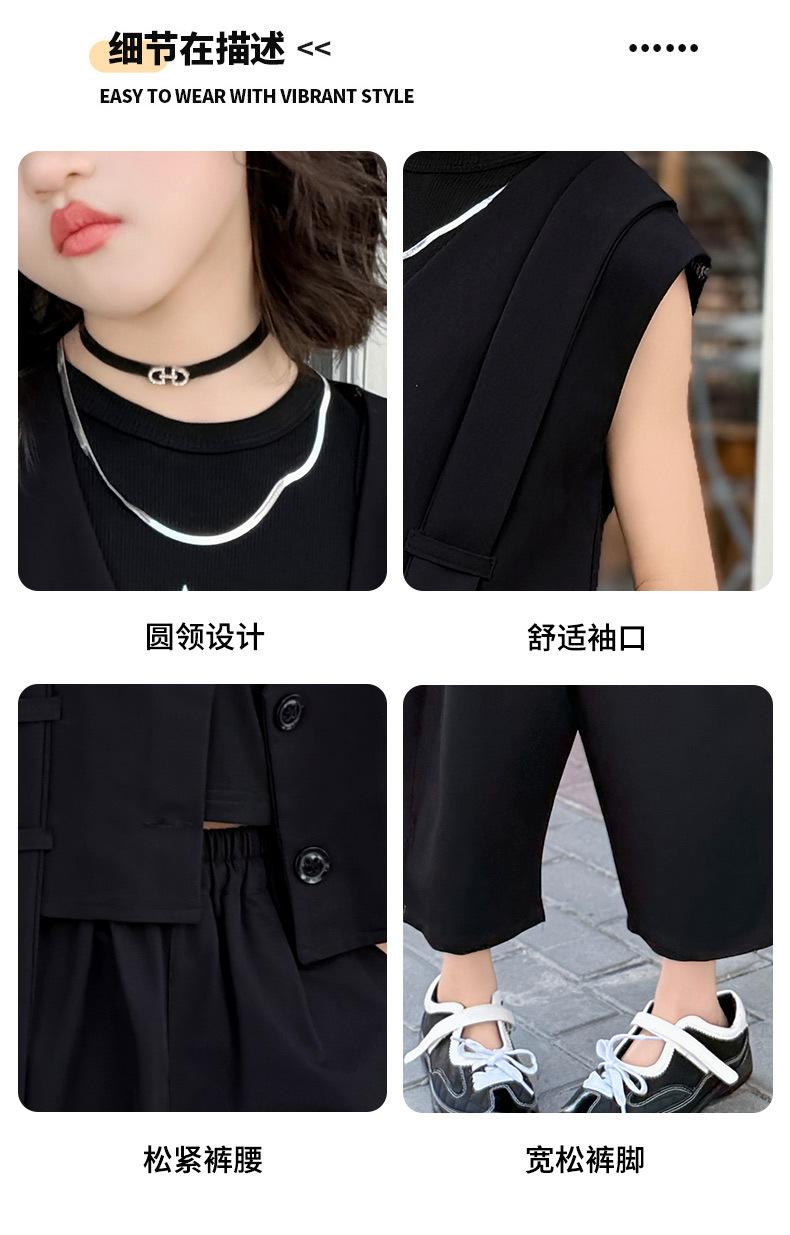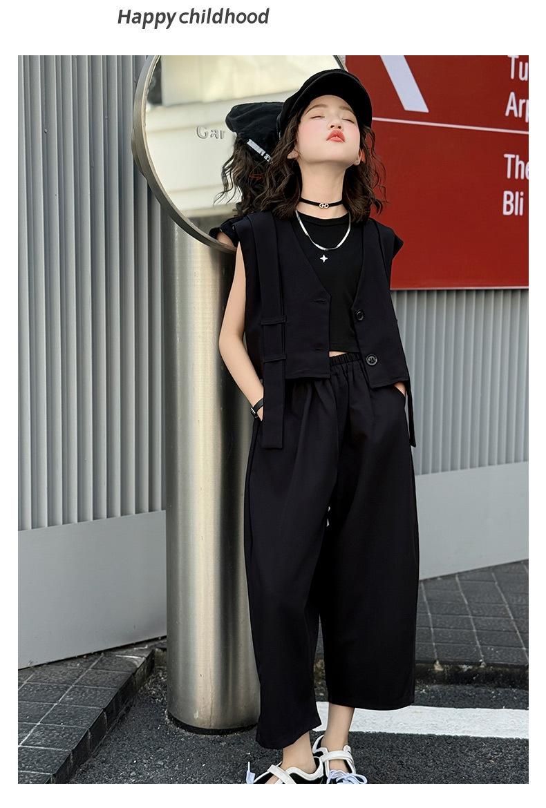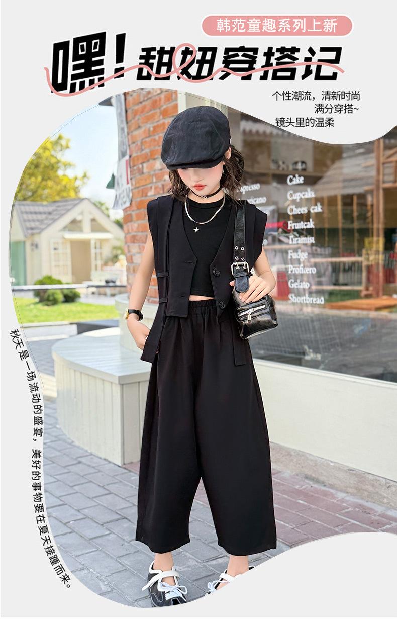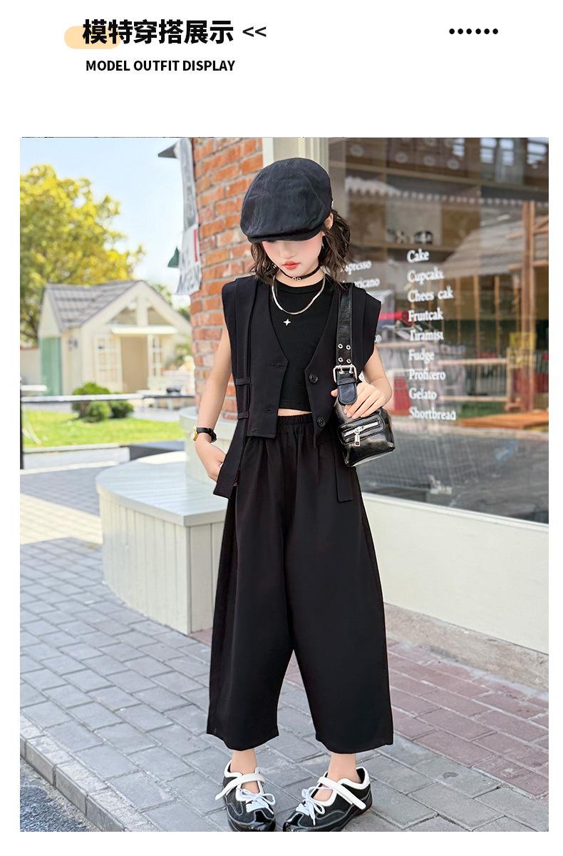 Traje de Verano para Niñas 2025 Nueva Moda Niña Estilo Coreano Estilo Infantil Mediano y Grande Traje Chaleco de Trabajo Tendencia Transfronteriza