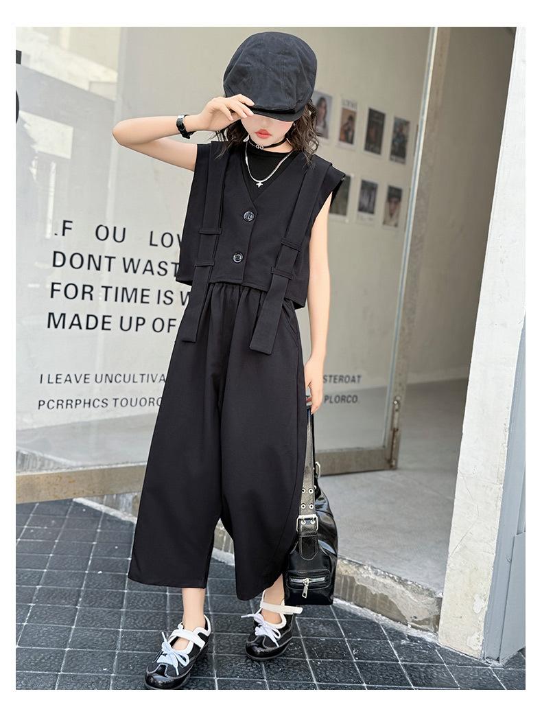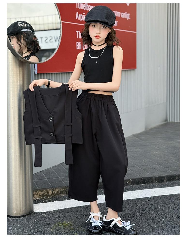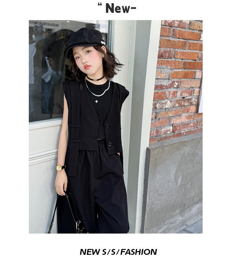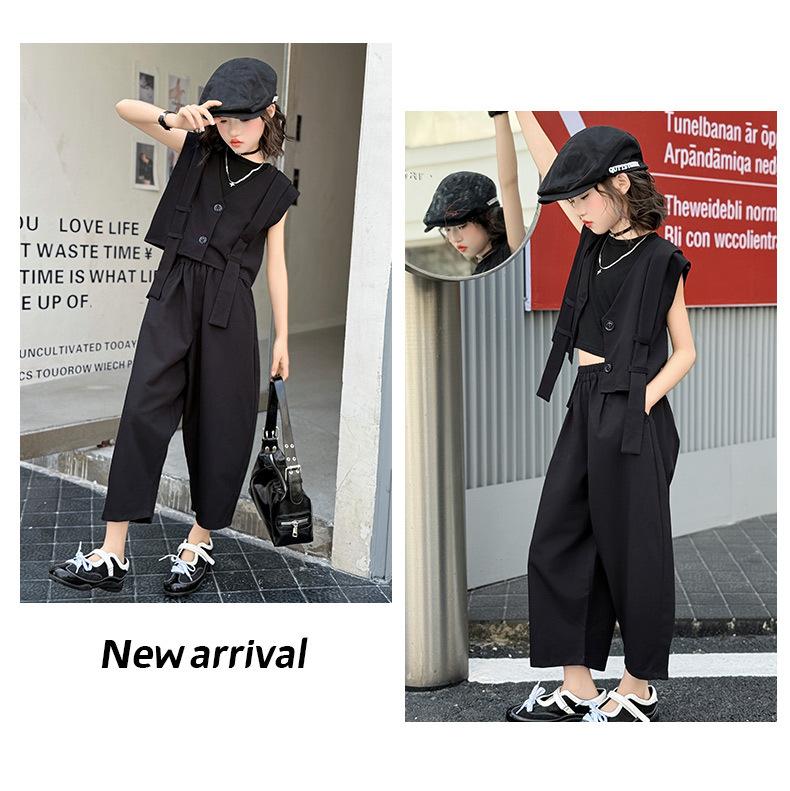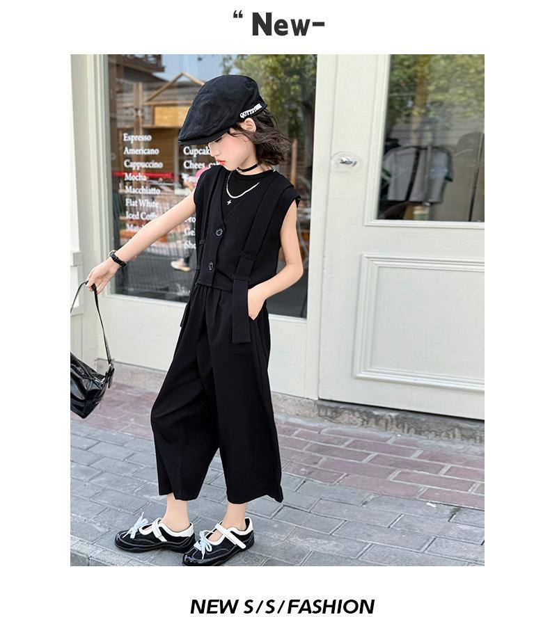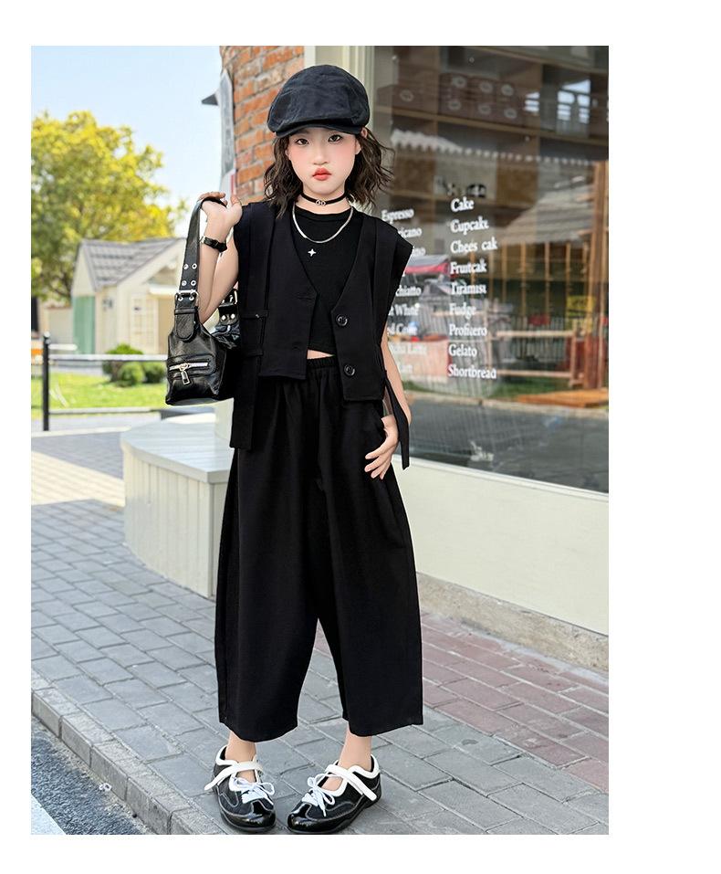 Traje de Verano para Niñas 2025 Nueva Moda Niña Estilo Coreano Estilo Infantil Mediano y Grande Traje Chaleco de Trabajo Tendencia Transfronteriza