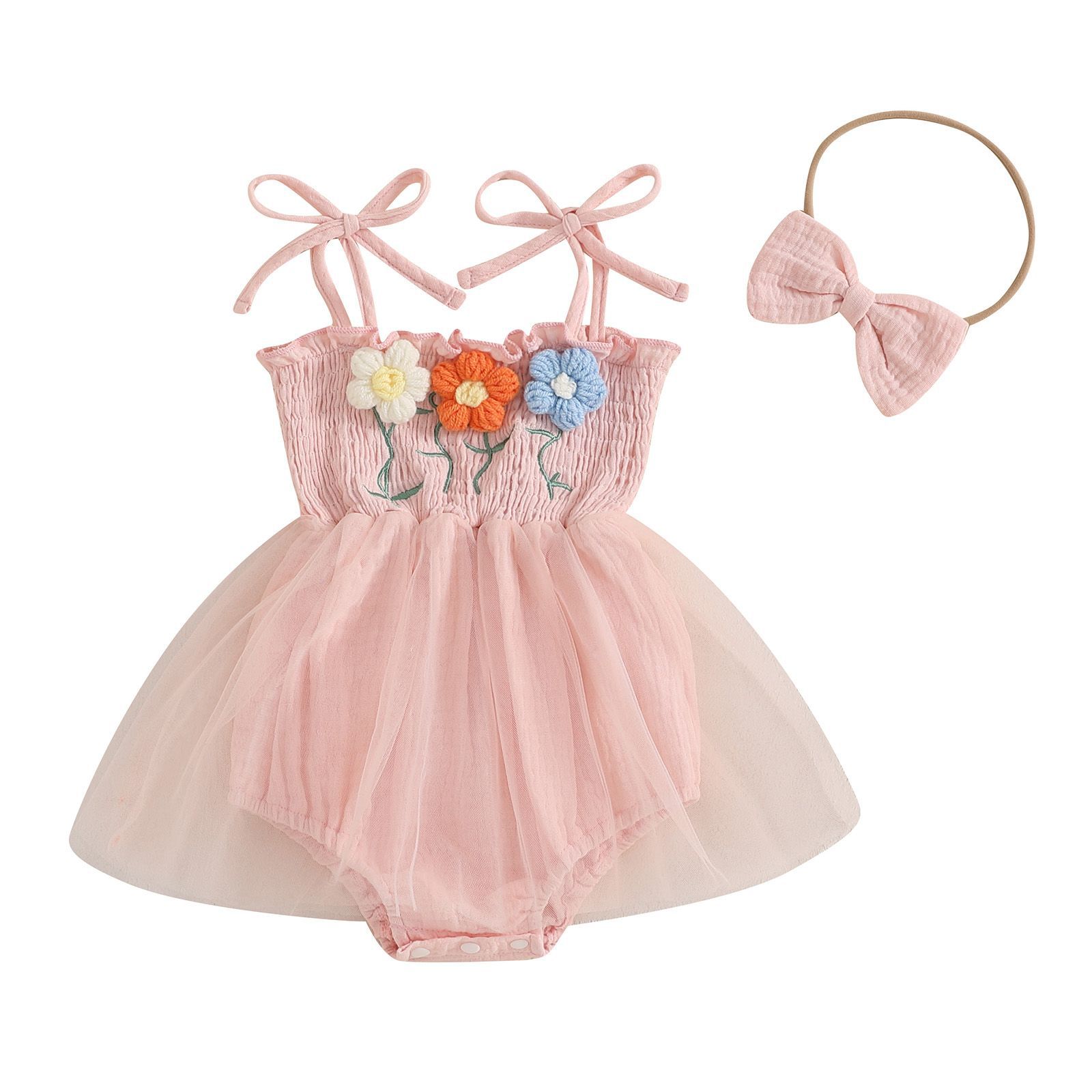 Ropa Delgada de Verano para Bebé Transfronteriza, Tirantes Dulces, Faldas de Malla, Ropa que Cubre el Trasero, Diademas con Lazo, Conjunto de Dos Piezas