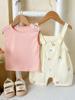 Ropa de Verano para Bebé Traje de Verano Lindo a Rayas sin Mangas para Bebé Niña Traje Delgado de Dos Piezas Estilo Coreano