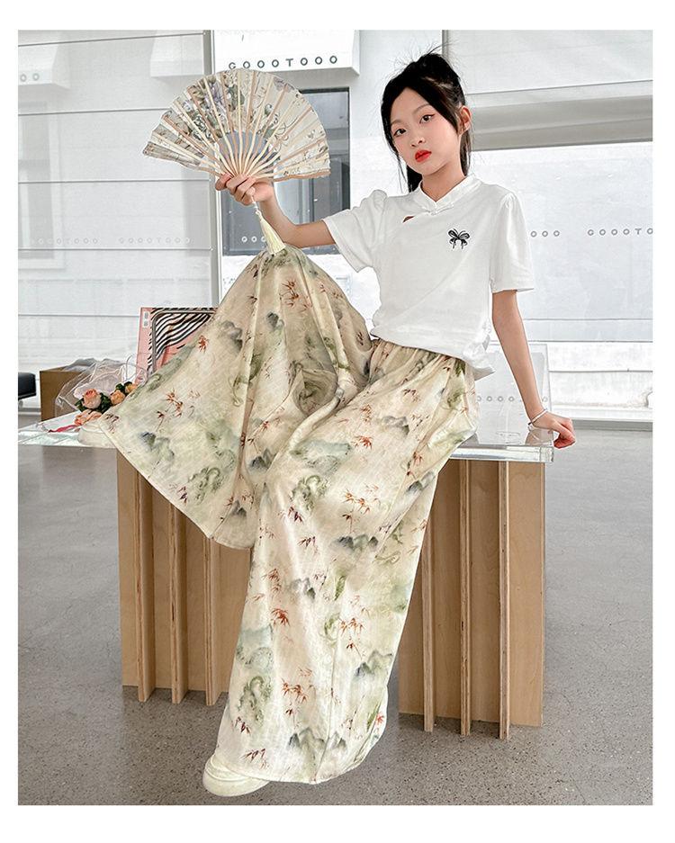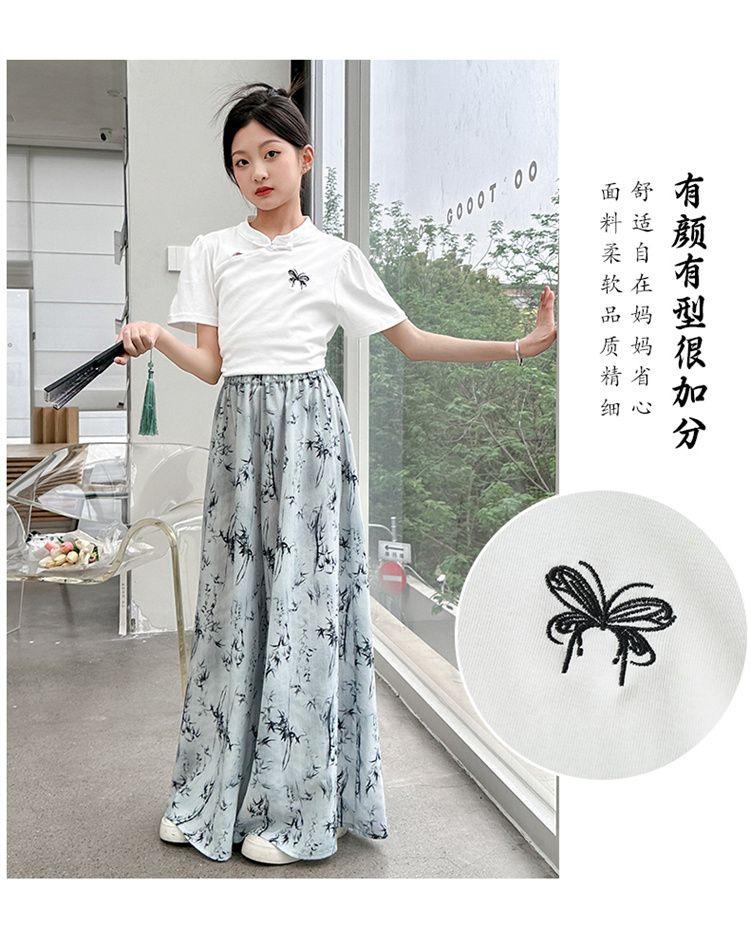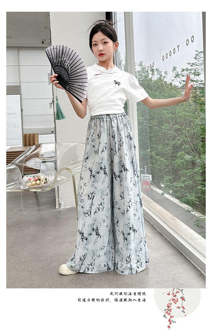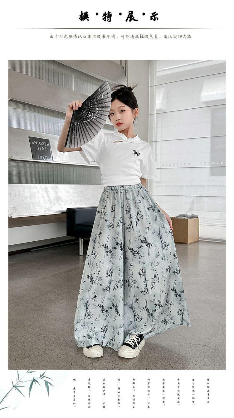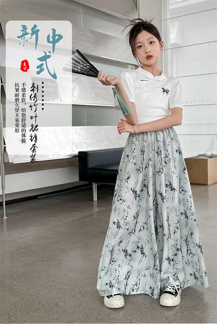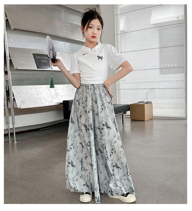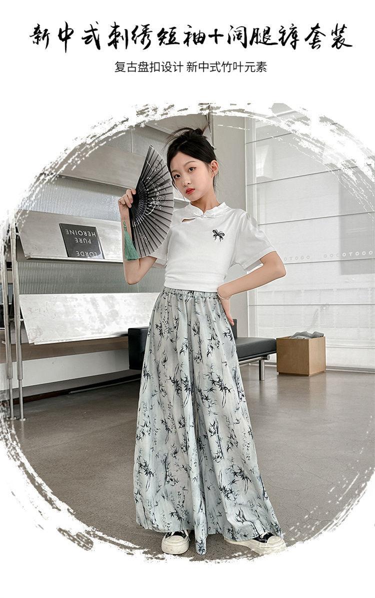 Traje de Culottes de estilo chino para niñas 2024 Conjunto de dos piezas de verano de nuevo estilo chino para niños grandes Moderno para combinar con todo