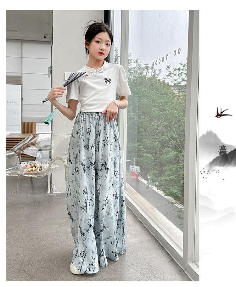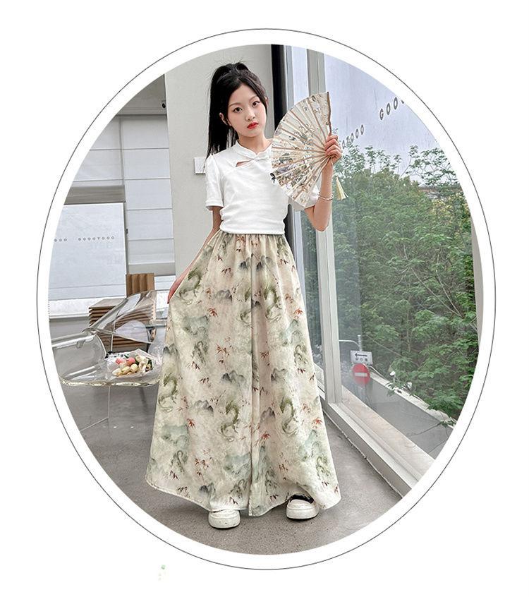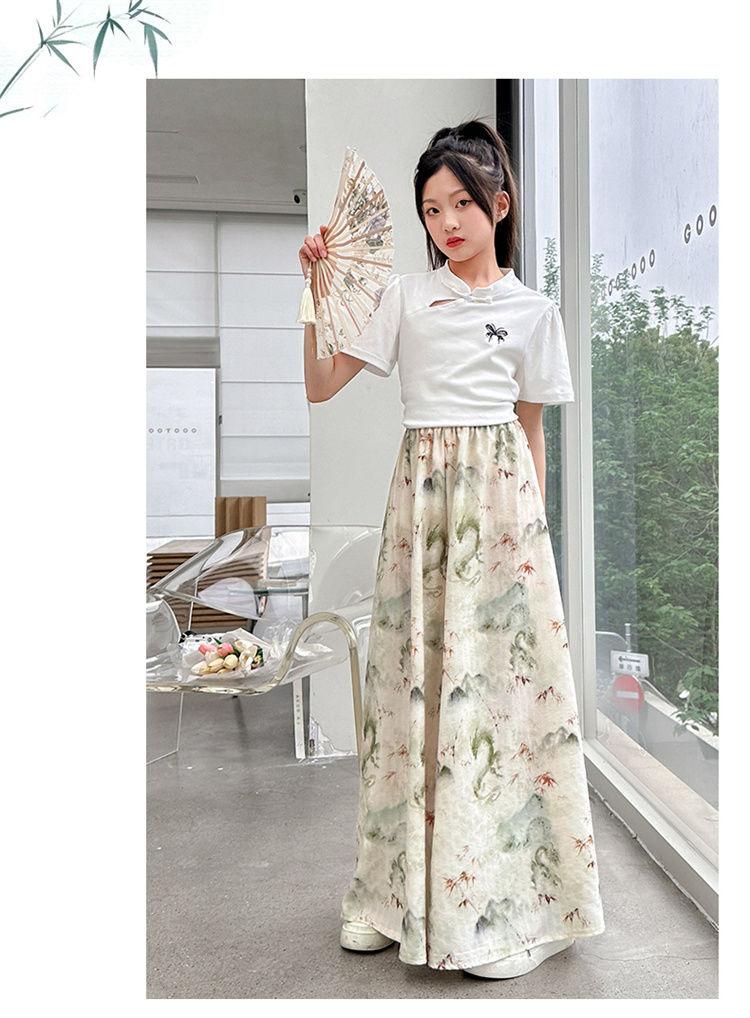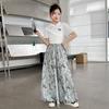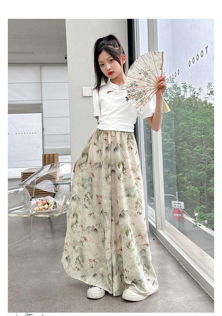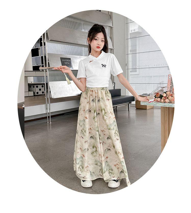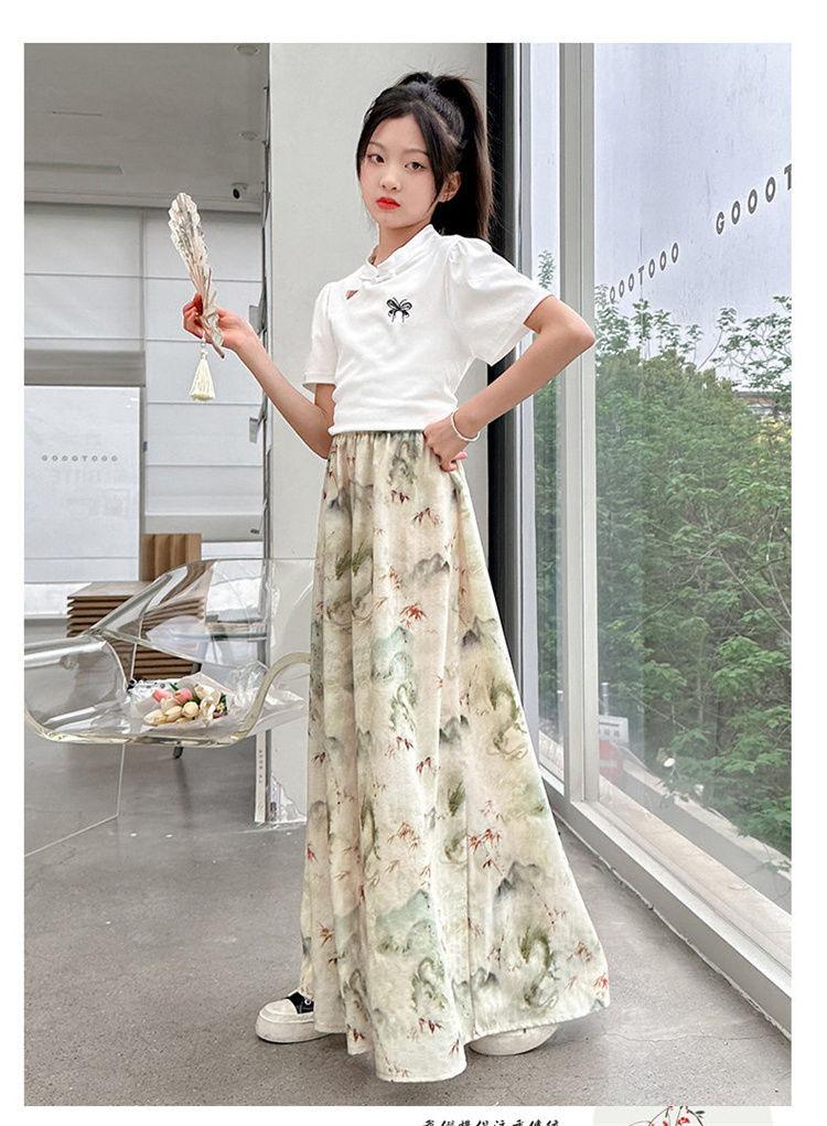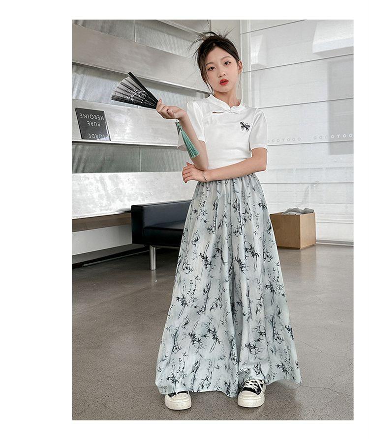 Traje de Culottes de estilo chino para niñas 2024 Conjunto de dos piezas de verano de nuevo estilo chino para niños grandes Moderno para combinar con todo