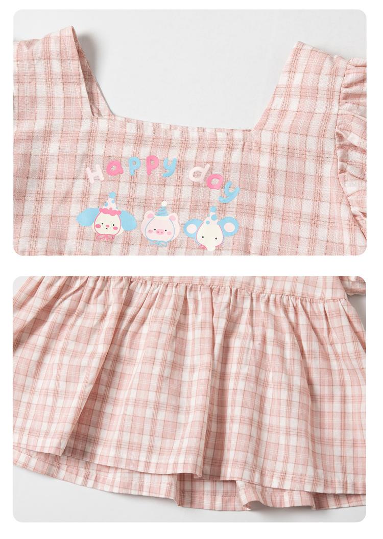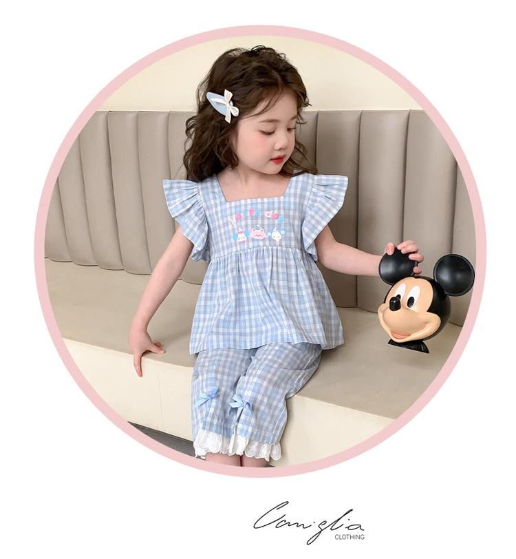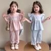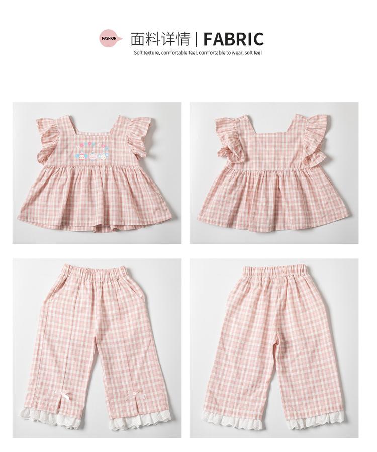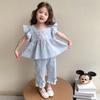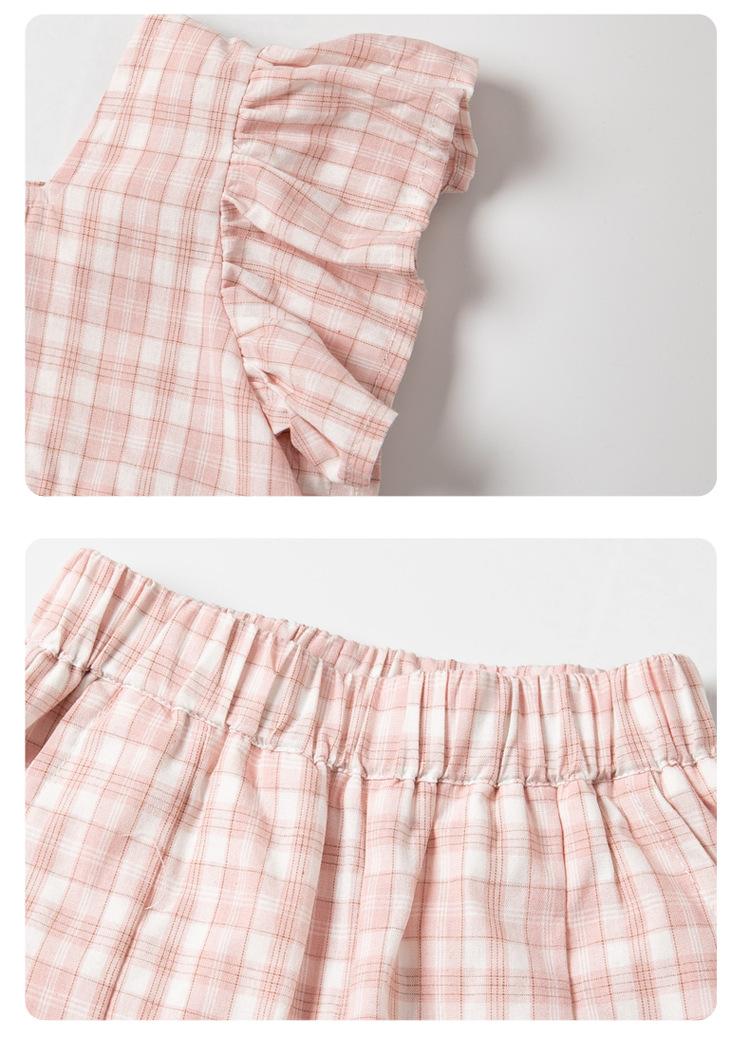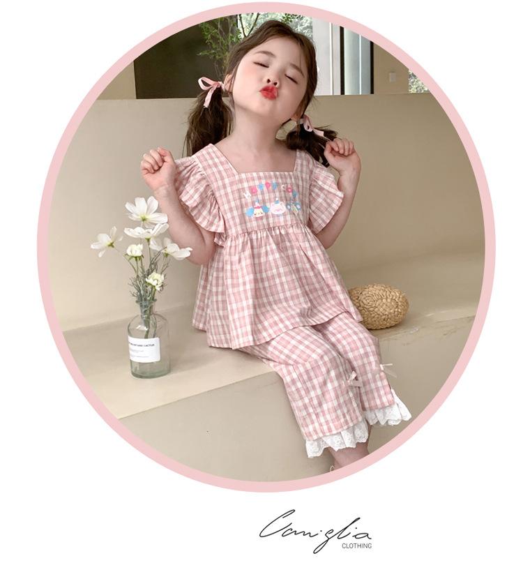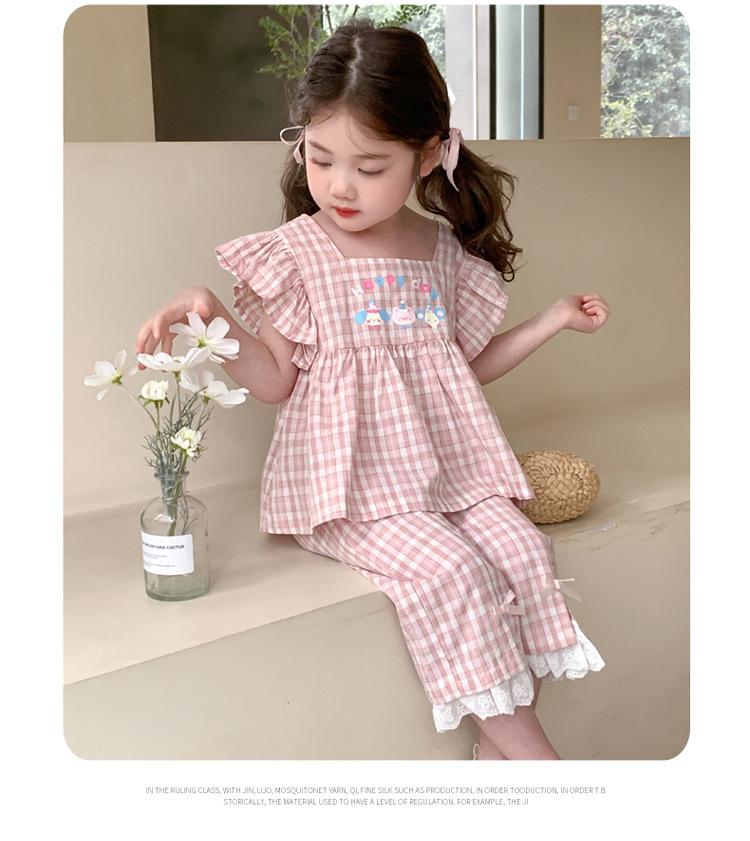 Traje a cuadros estampado de manga volada para niñas 2025 Verano Nueva Moda Niña Elegante Dos piezas Vestido de Verano para Niños