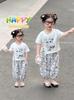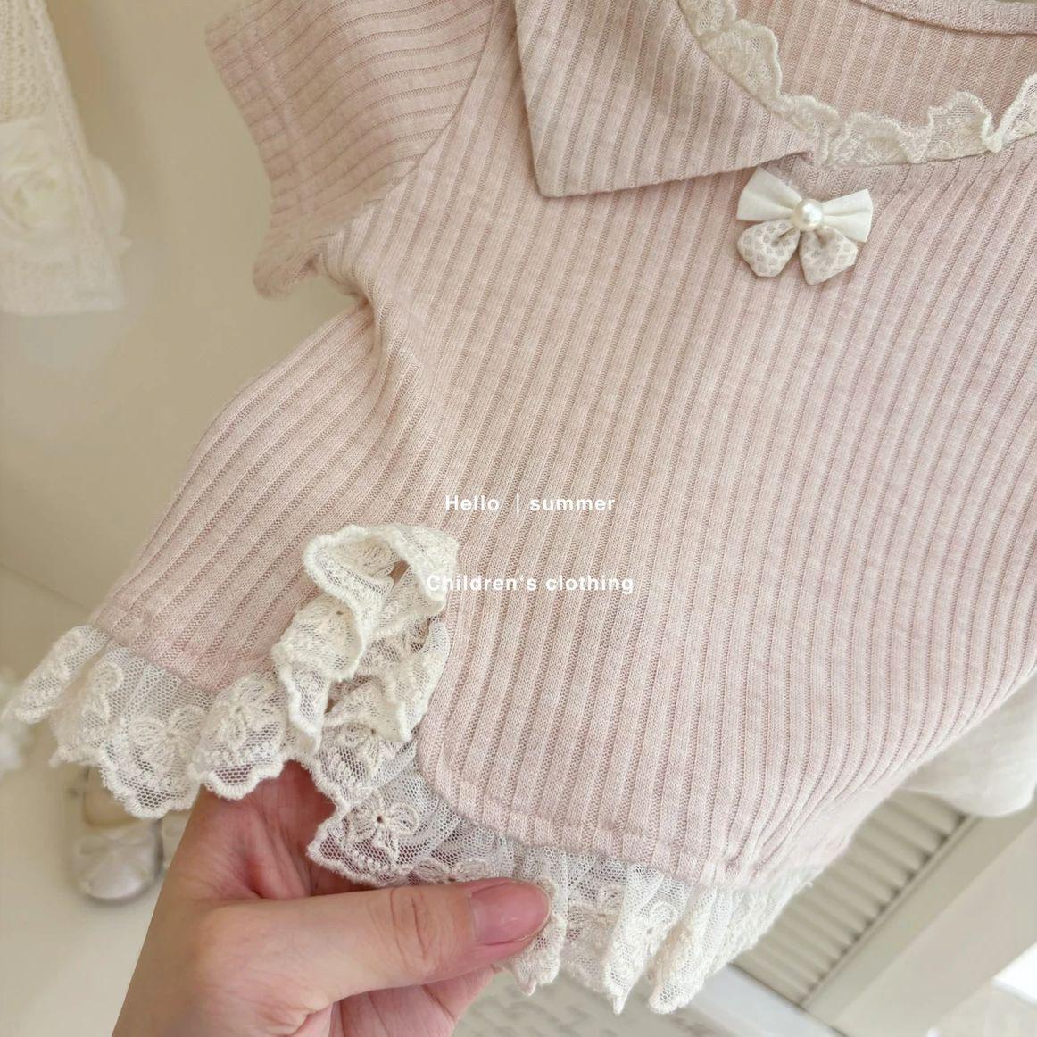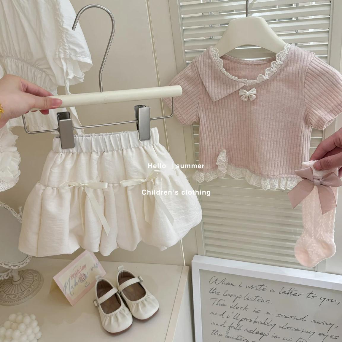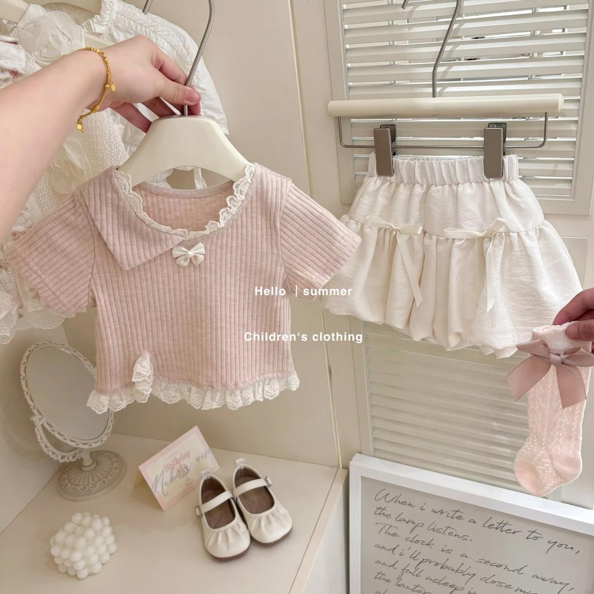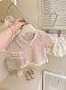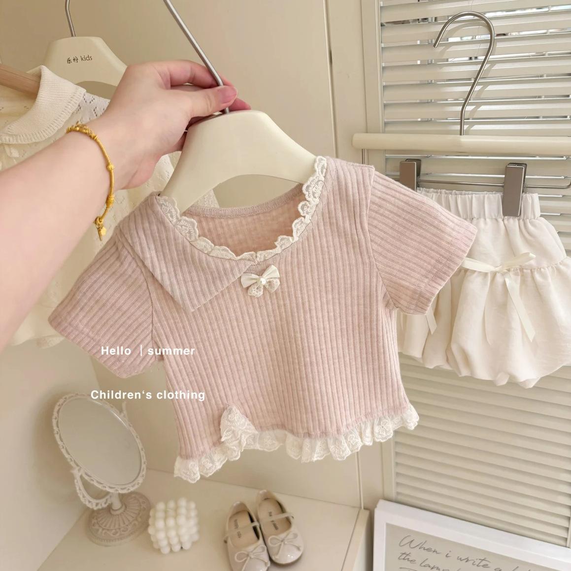 Conjunto de Verano para Niñas Estilo Coreano 2025 Popular Bebé Niña Dulce Rosa Camiseta de Manga Corta y Bloomers Conjunto de Dos Piezas Trendy