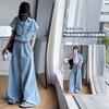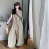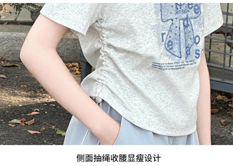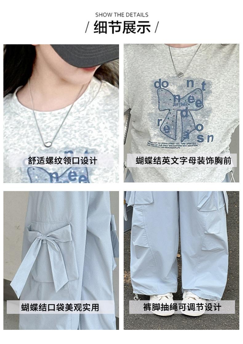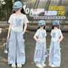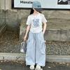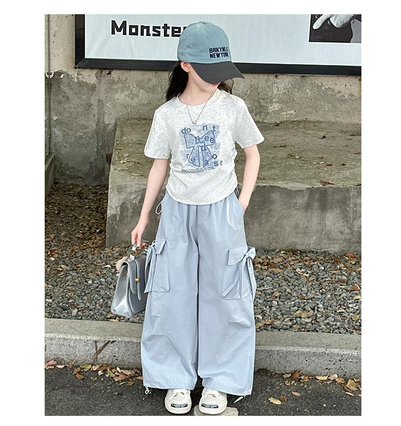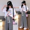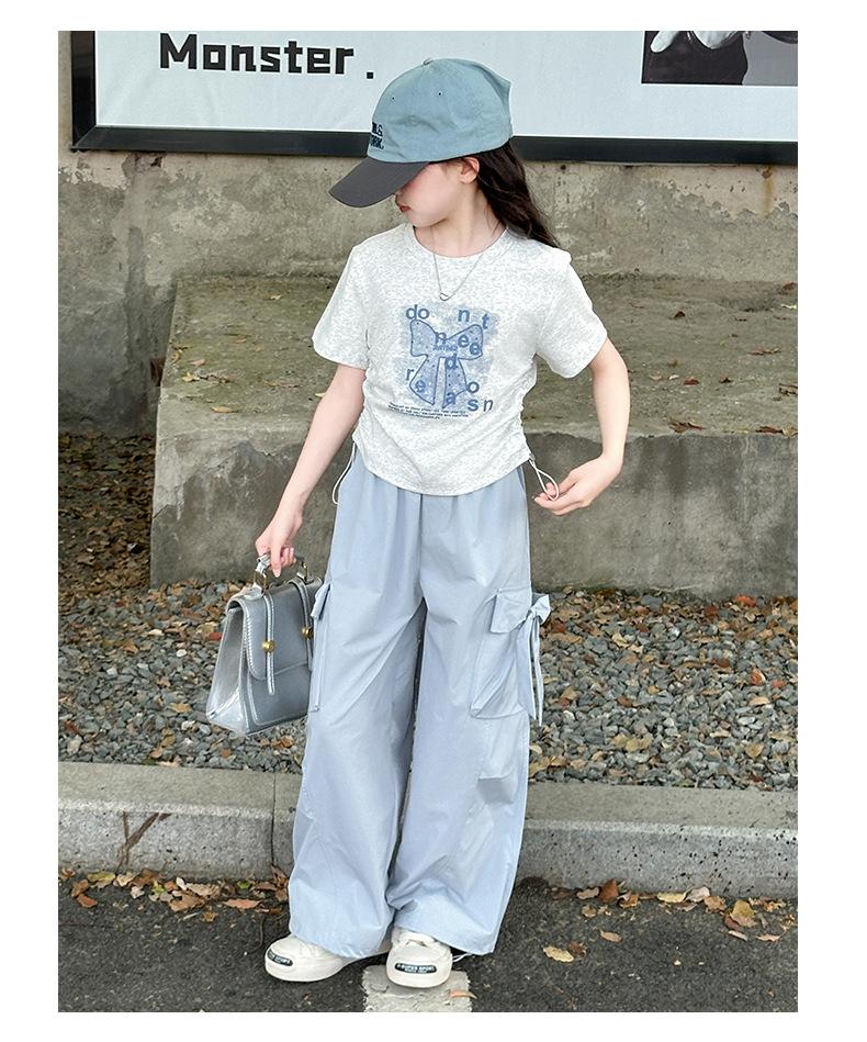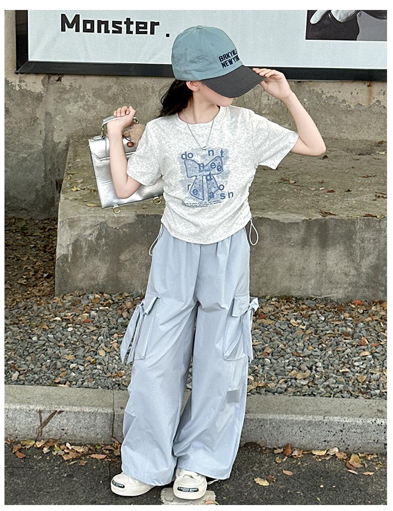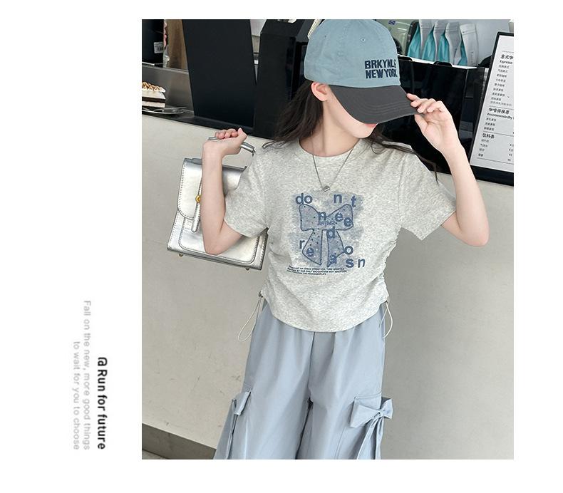 Conjunto de camiseta de verano para niña y pantalones de peto, para niños grandes, con cordón, lazo, manga corta y pantalones de pierna ancha, nuevo 2025, versión coreana