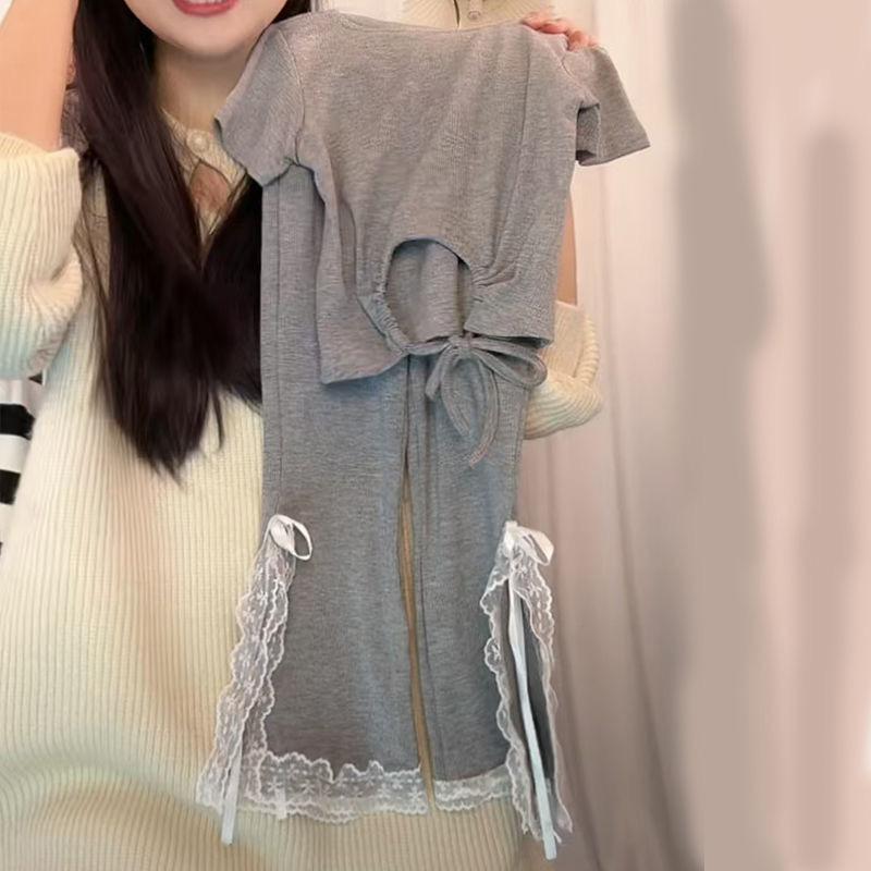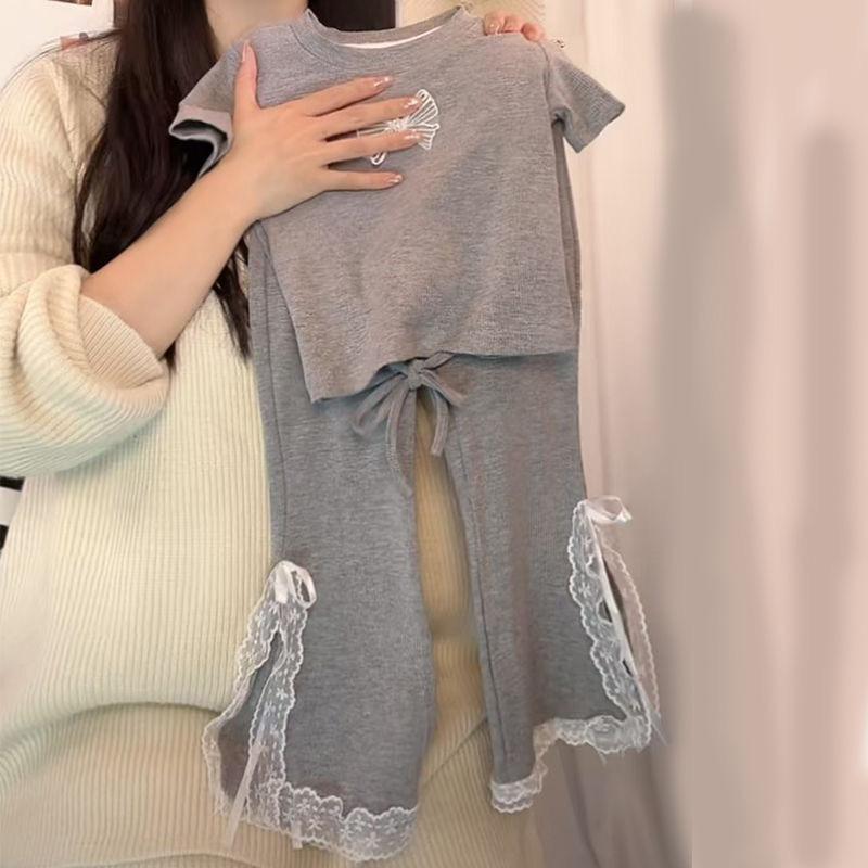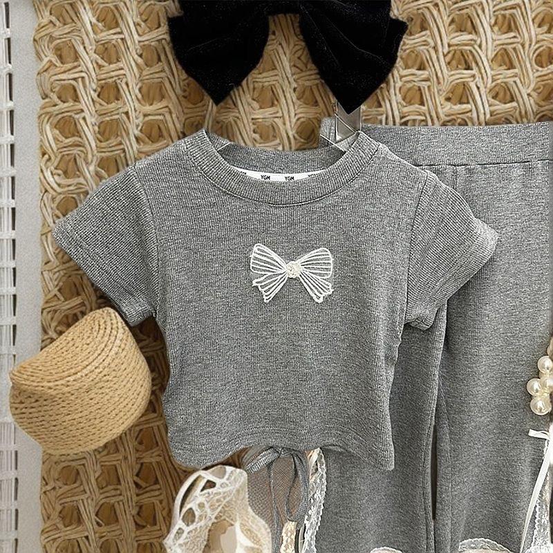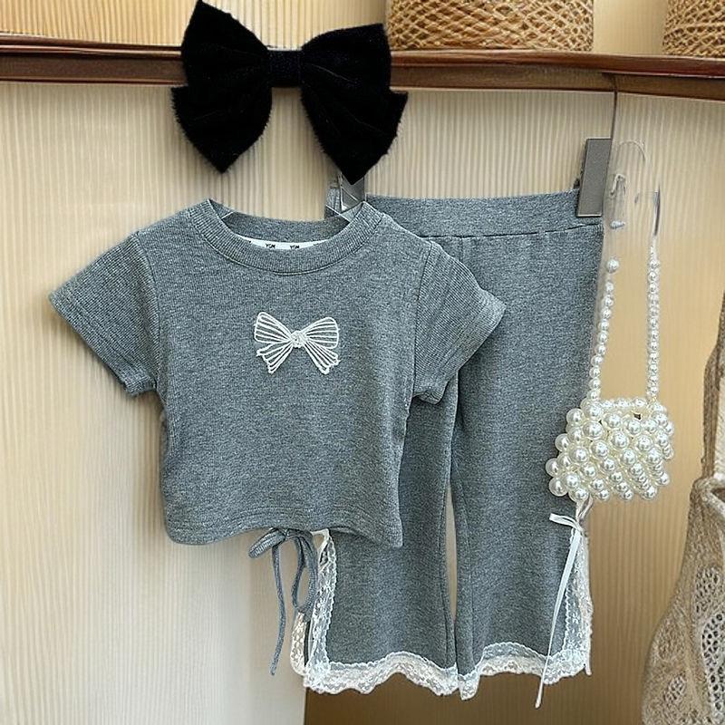 Compra Traje de Estilo Coreano para Niñas 2025 Verano Niñas Dulces Tops con Lazo Moda Infantil Traje de Pantalón de Encaje Moderno al por mayor en Joom.pro