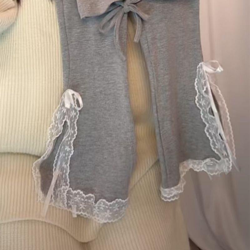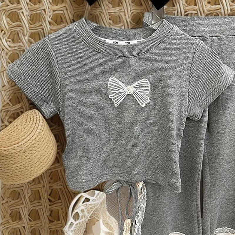 Traje de Estilo Coreano para Niñas 2025 Verano Niñas Dulces Tops con Lazo Moda Infantil Traje de Pantalón de Encaje Moderno