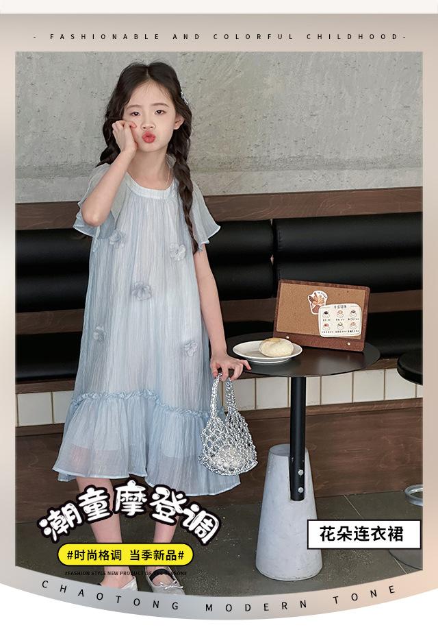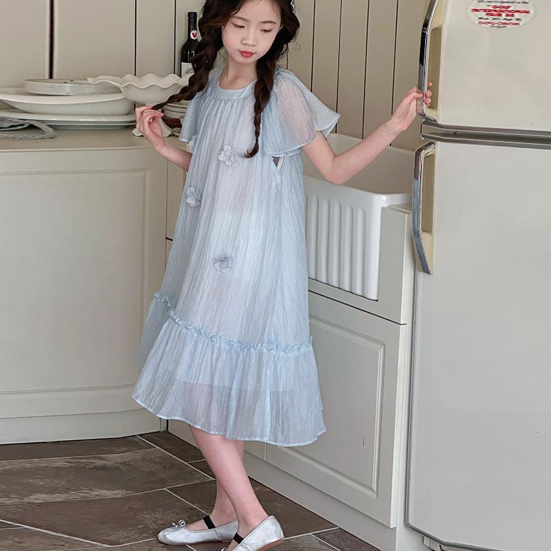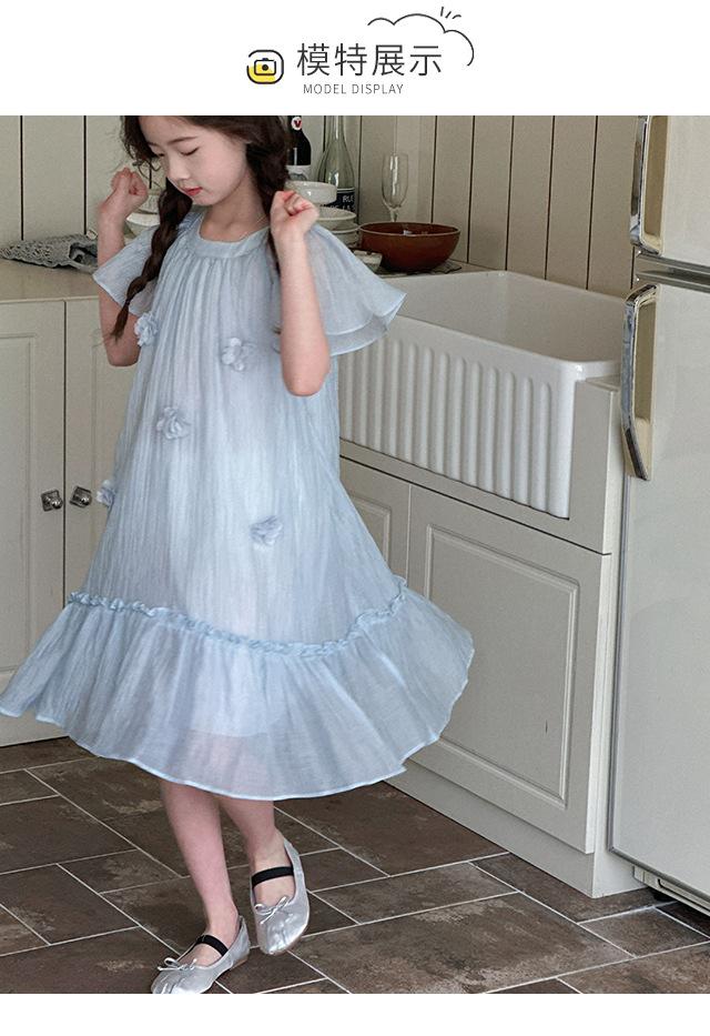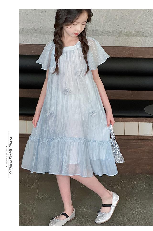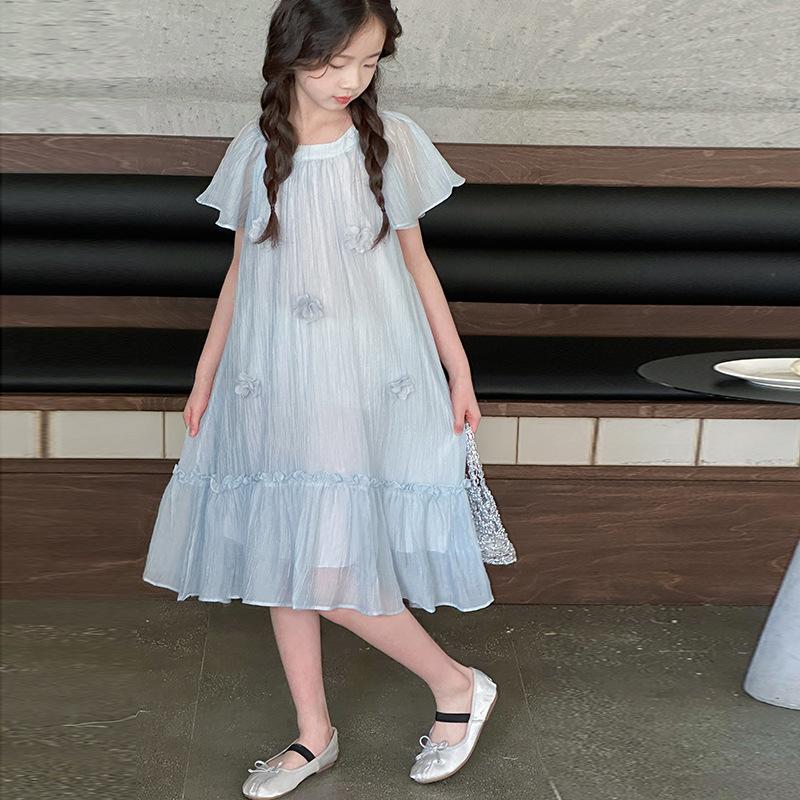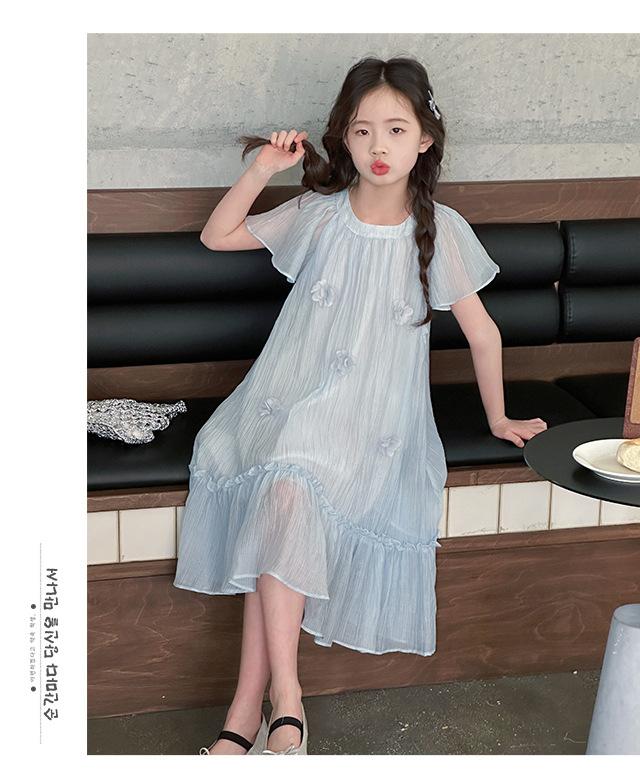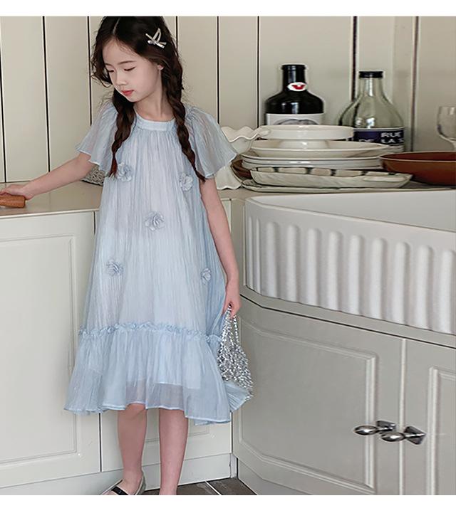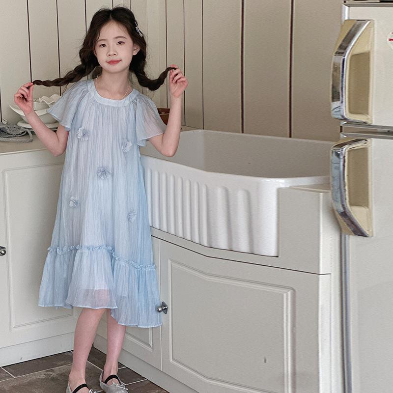 Vestido de Verano de Manga Corta para Niñas Ropa para Niños Falda de Gasa con Flores para Niñas Vestido de Princesa Vestido de Alta Gama y Dulce