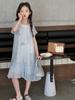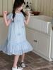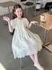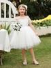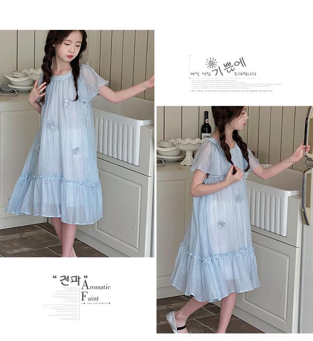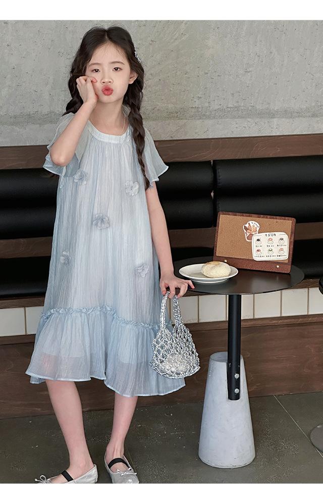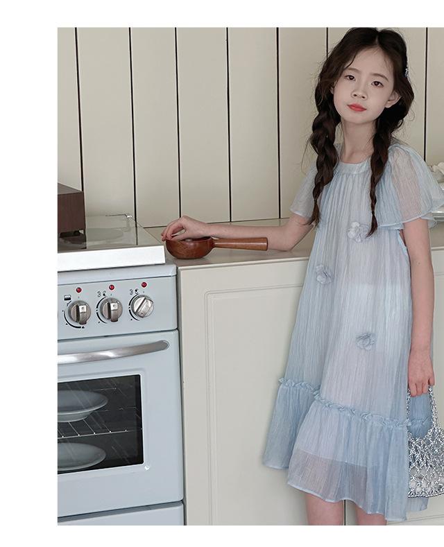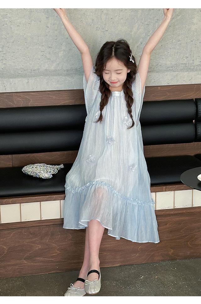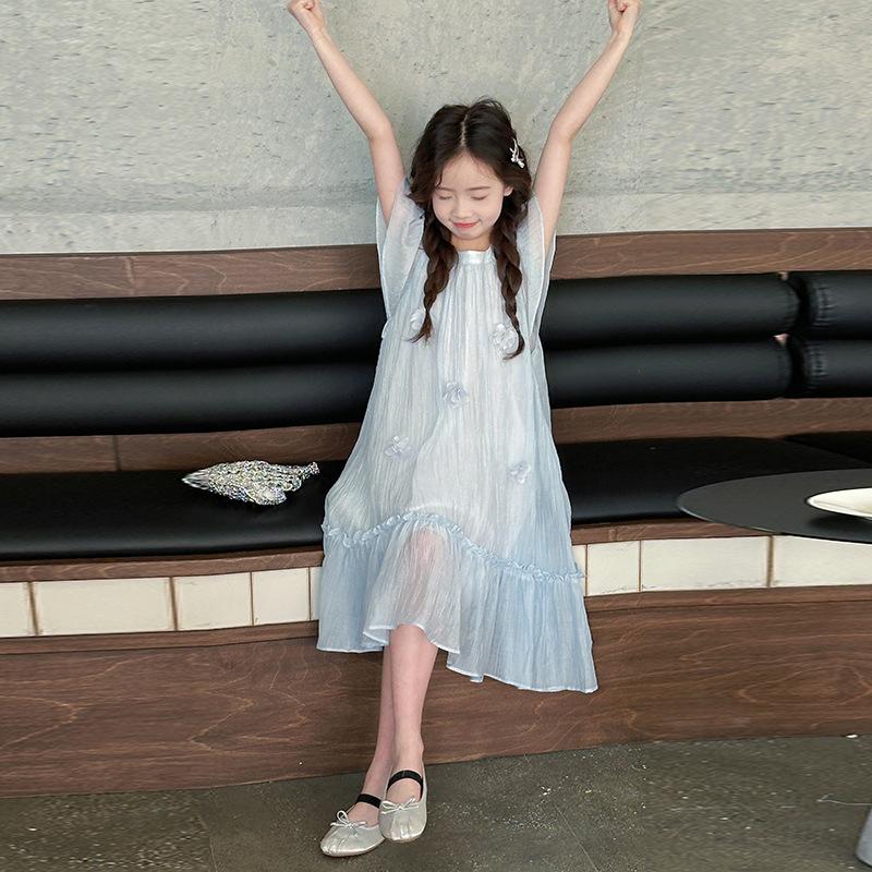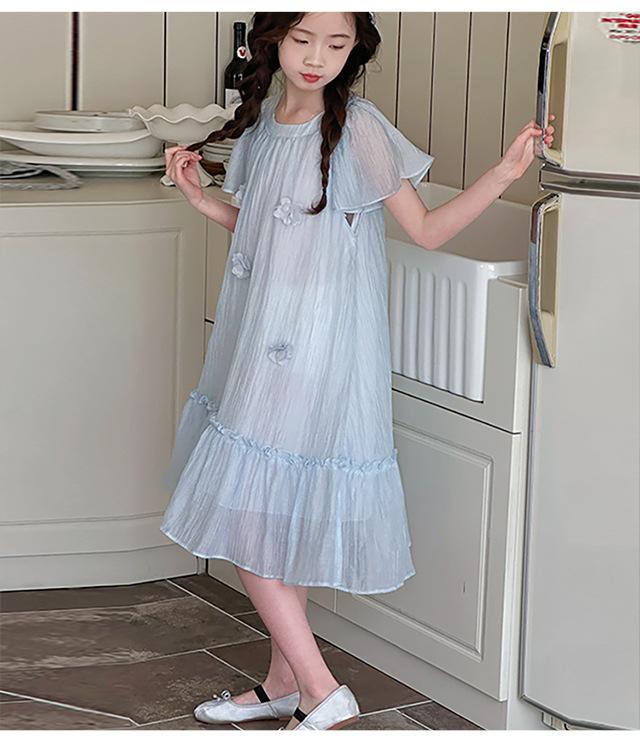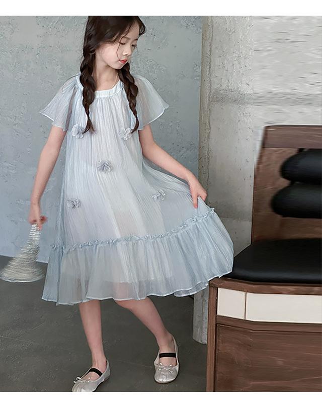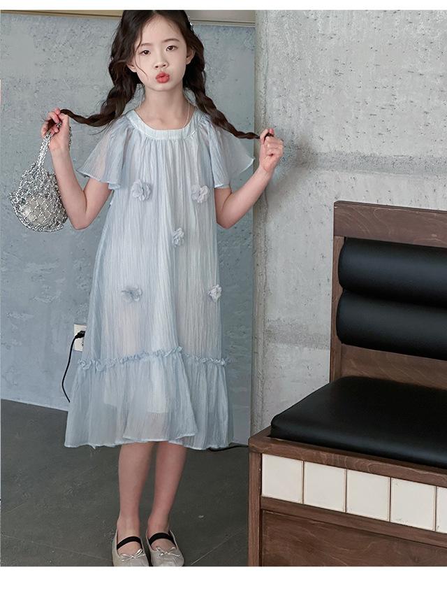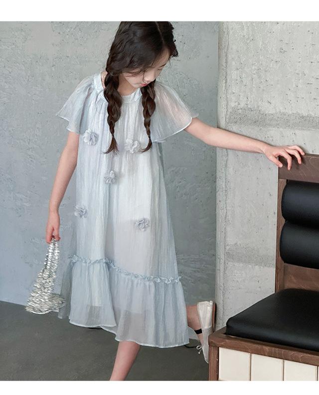 Vestido de Verano de Manga Corta para Niñas Ropa para Niños Falda de Gasa con Flores para Niñas Vestido de Princesa Vestido de Alta Gama y Dulce