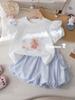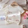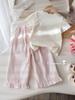 Traje de verano para niña Camiseta de manga corta con lazo tridimensional moderno Pantalones casuales a cuadros con encaje elegante Conjunto moderno de dos piezas