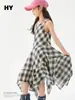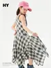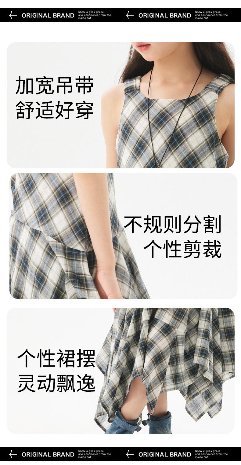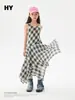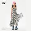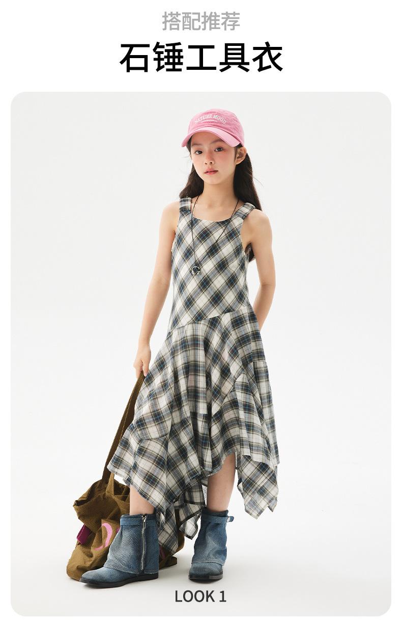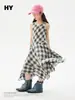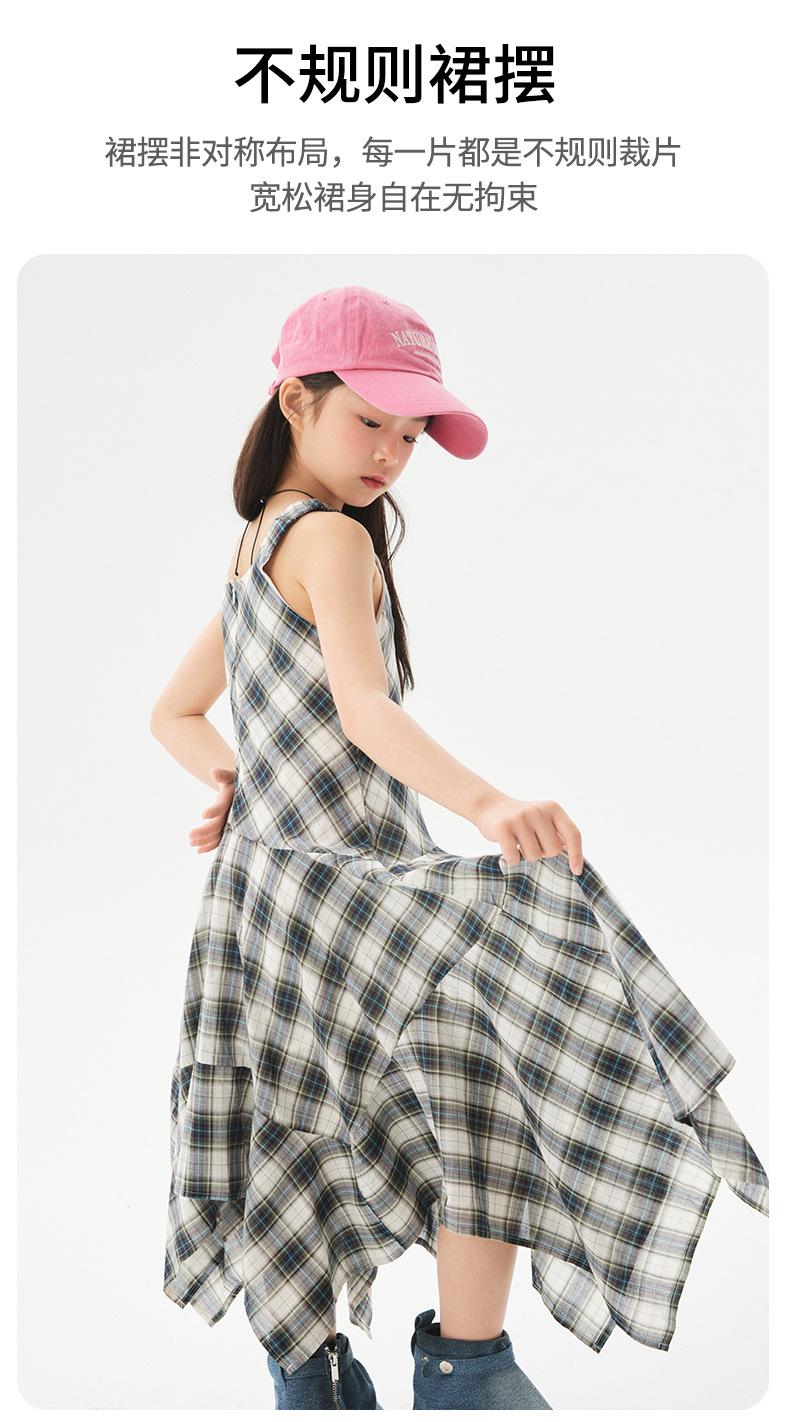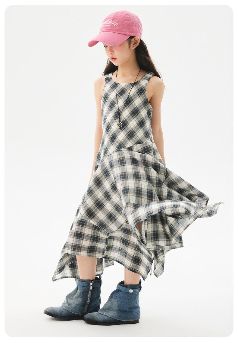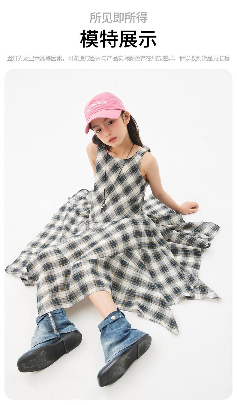 Falda casual de cuadros para niña 2025 Verano Nuevo Falda irregular sin mangas para niños Vestido de verano para niños grandes