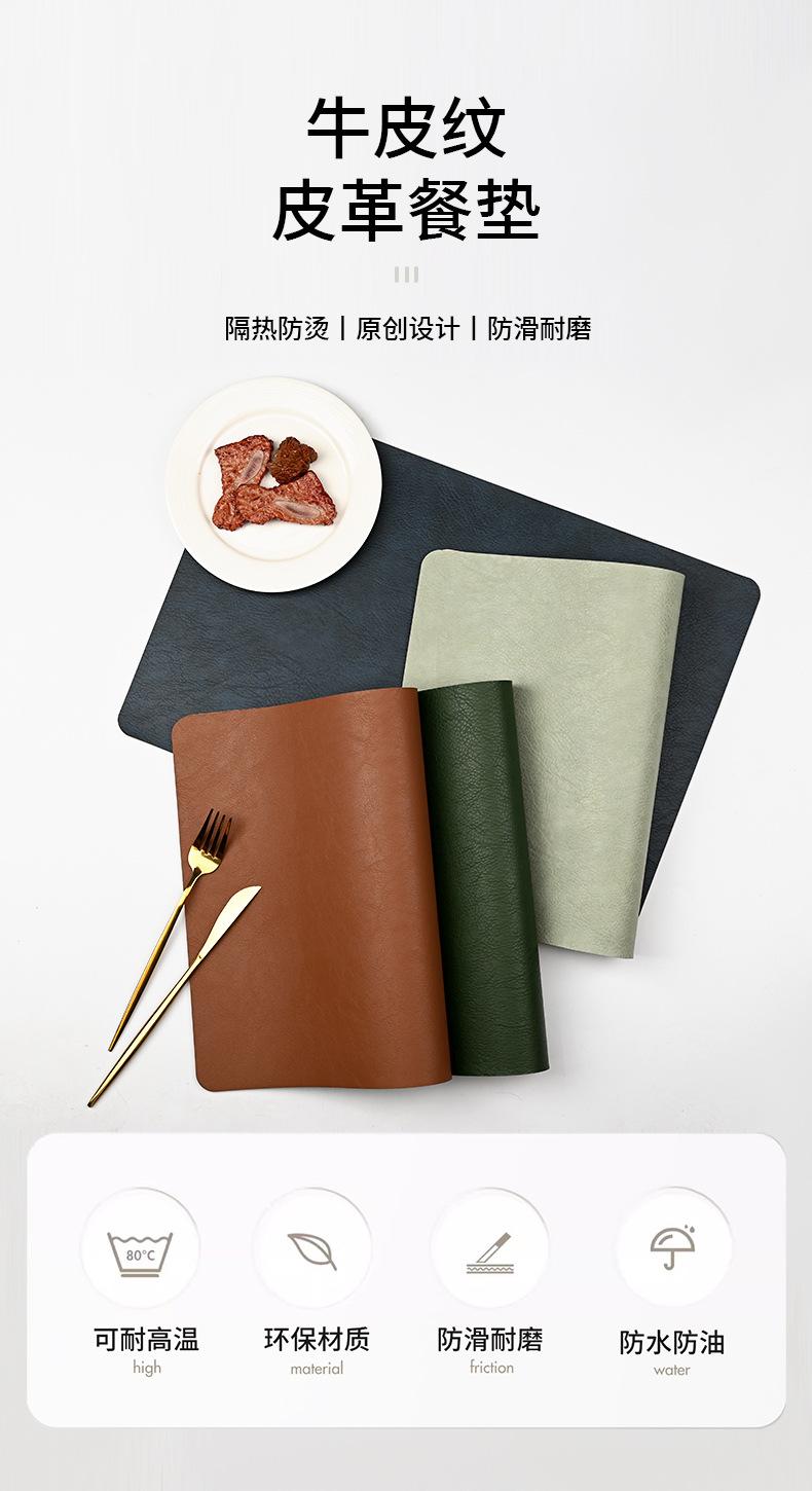 Mantel Individual Popular de Cuero Transfronterizo Cuadrado de Doble Cara Patrón de Cuero Vacuno Mantel Individual Occidental Engrosado a Prueba de Aceite Mantel para Mesa de Comedor Doméstico Al Por Mayor