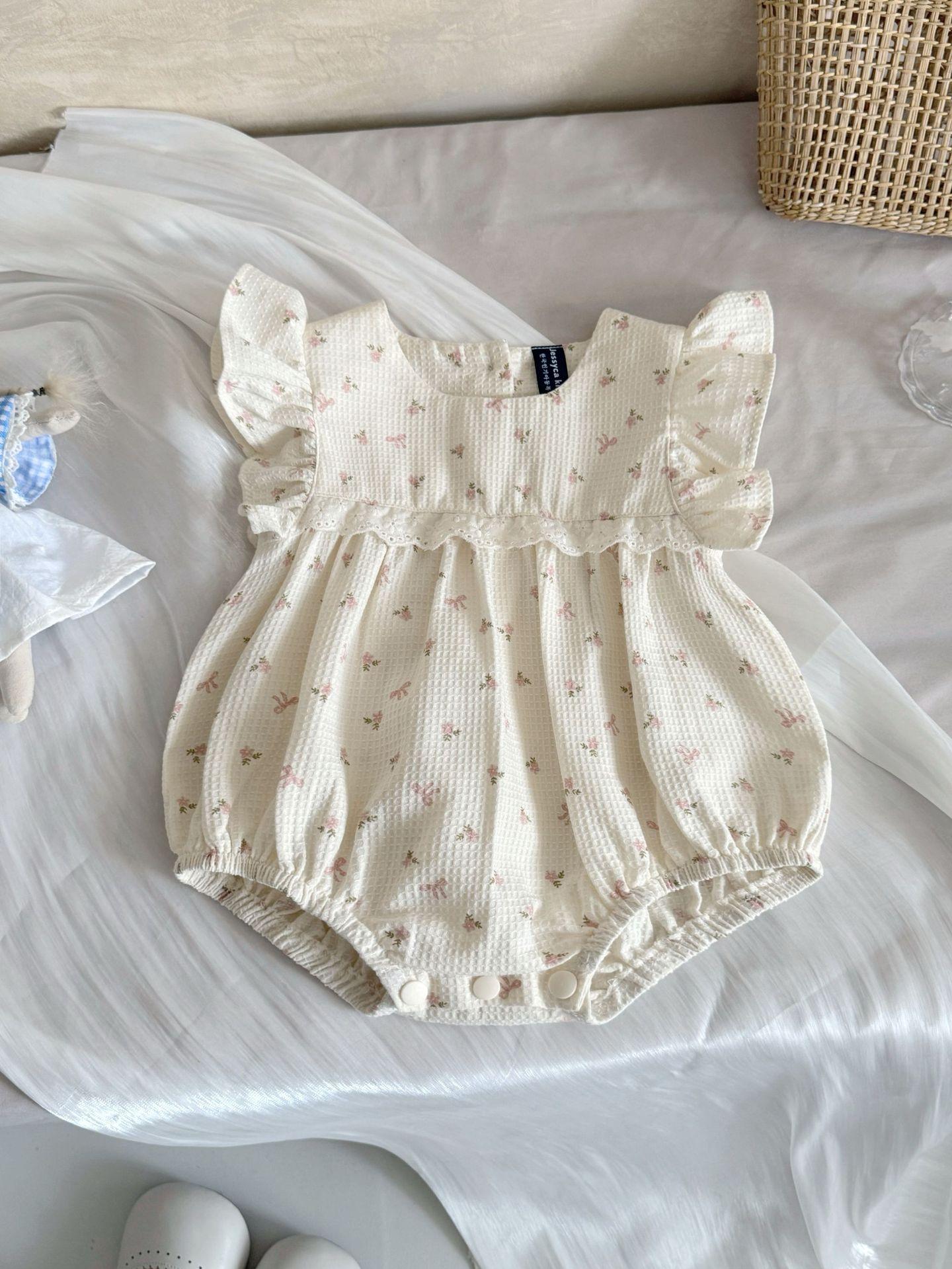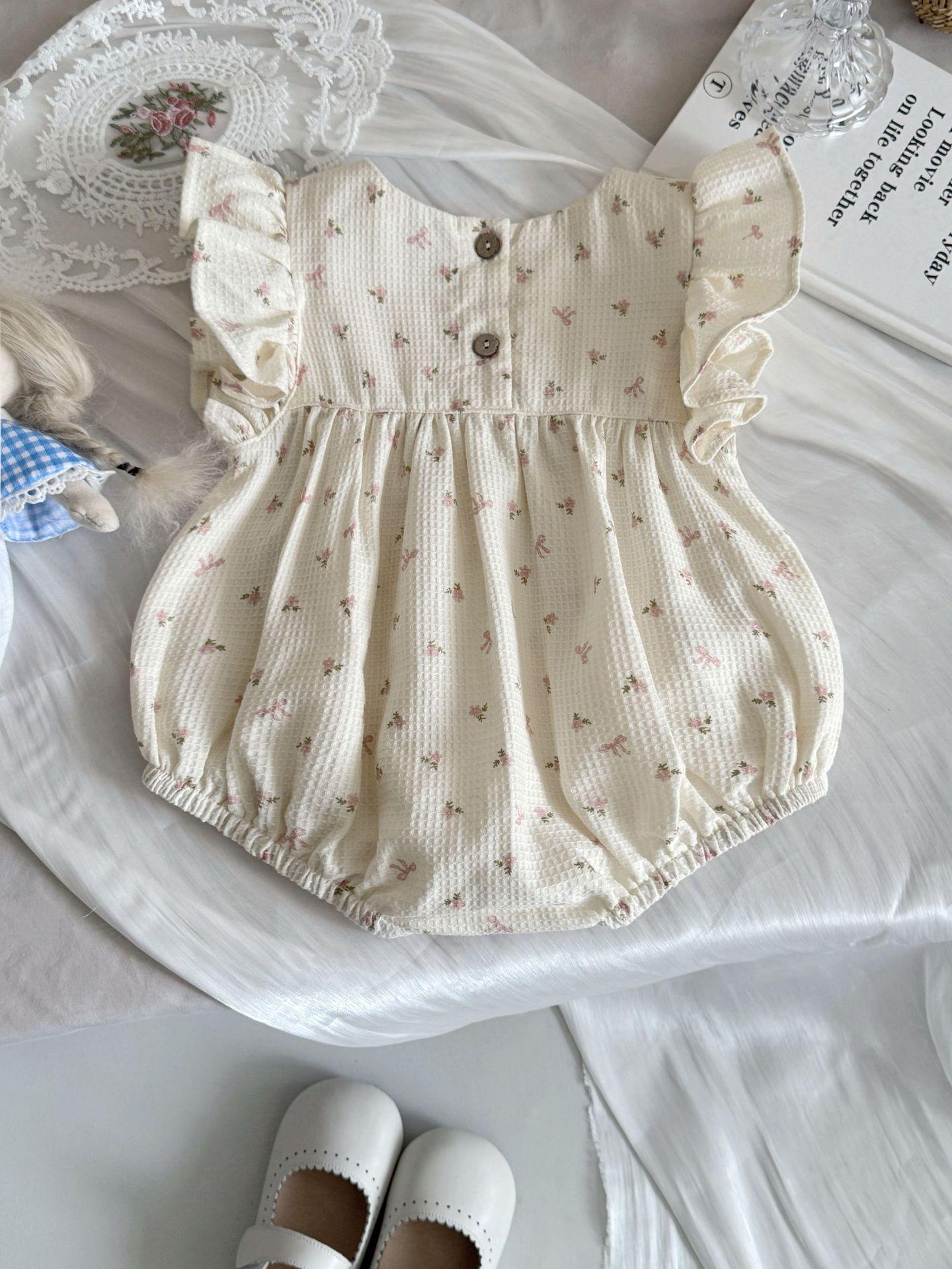 Ins Pelele Floral para Bebé Verano Harem Bebé Lindo Mangas Volantes Ropa Pedo de Bolsa Ropa Exterior Triangular Mameluco Cómodo