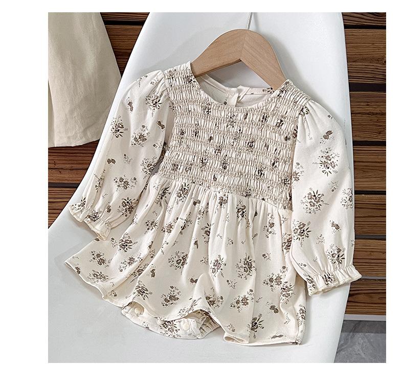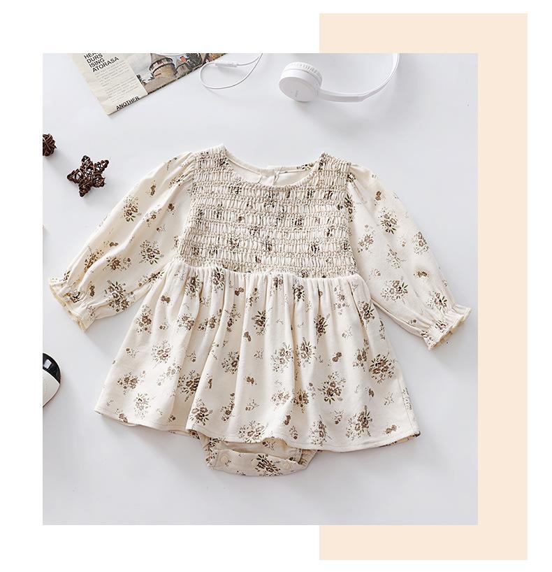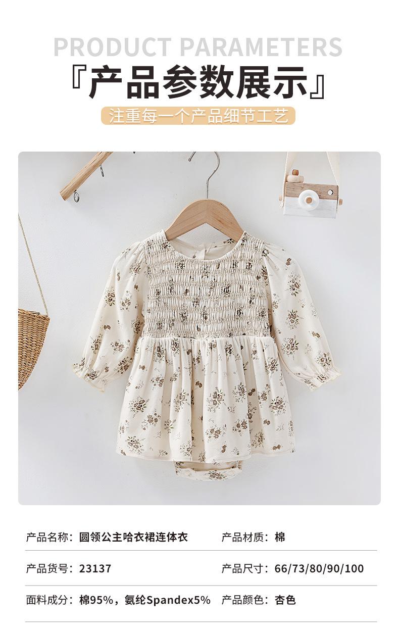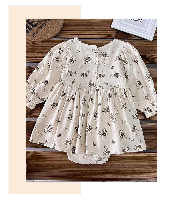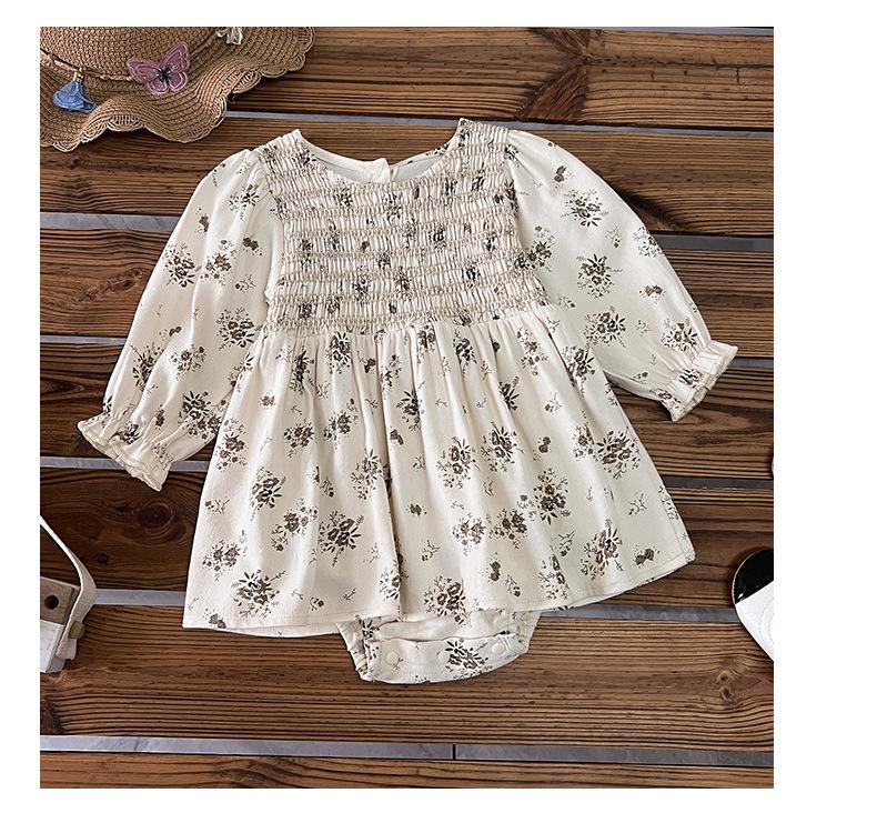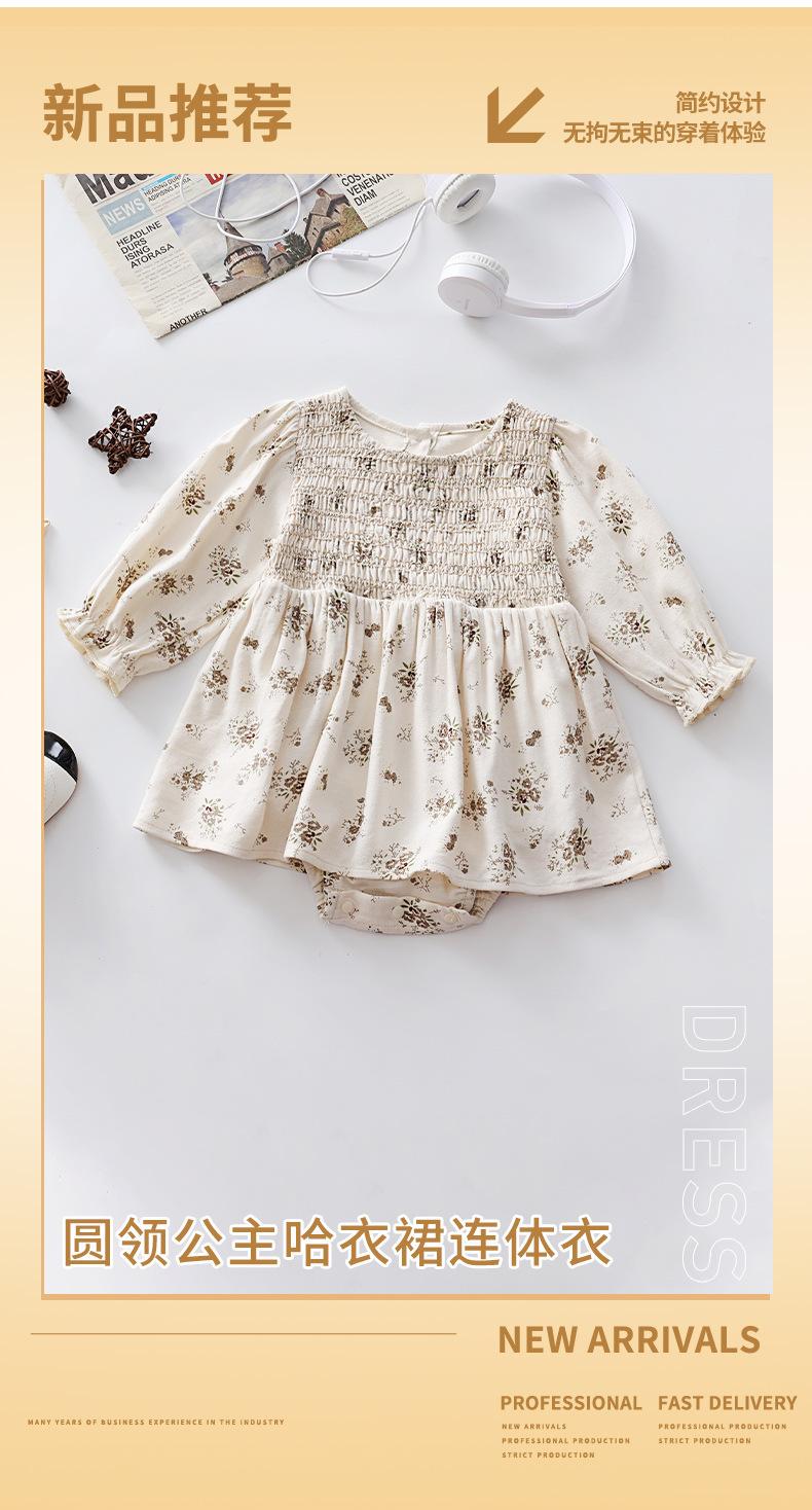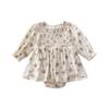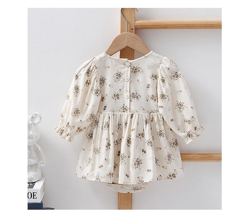 Venta al por mayor ropa nueva para bebé de manga larga con estampado floral pequeño, primavera y otoño, para niña, cuello redondo, vestido de princesa ha, mameluco