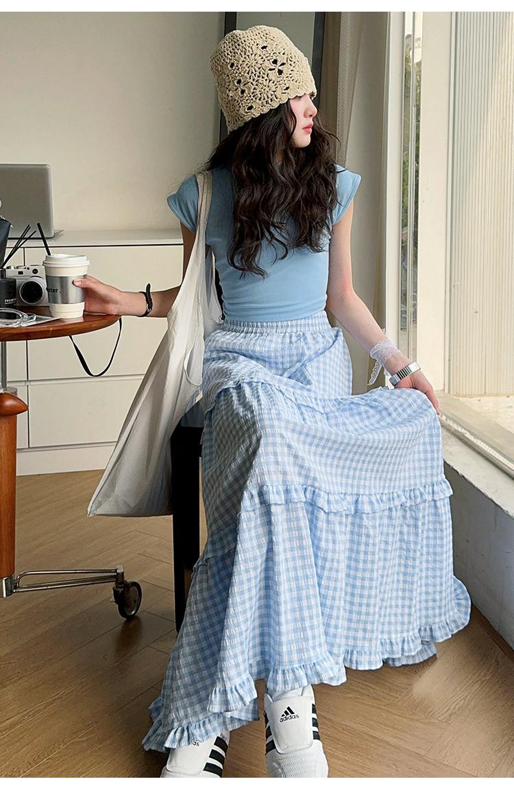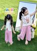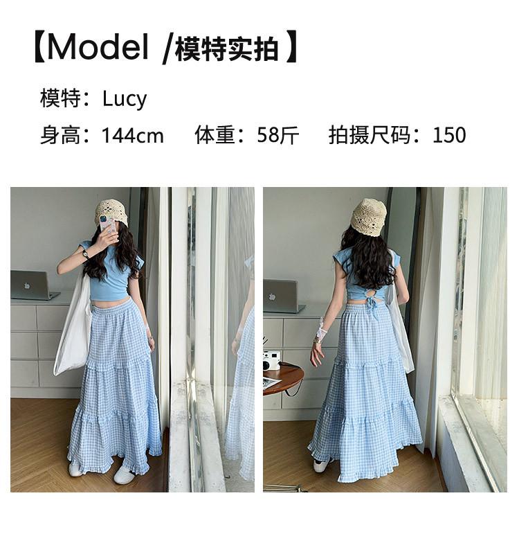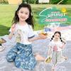Traje de estilo occidental para niñas Verano 2025 Ropa nueva de moda Ropa de calle de verano para niños grandes Falda midi para niños celebridad de internet