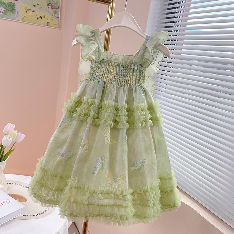 Vestido de niña Verano 2025 Nuevo Vestido Slip con Lazo Famoso en Internet para Niños Vestido de Cumpleaños Pomposo para Niñas